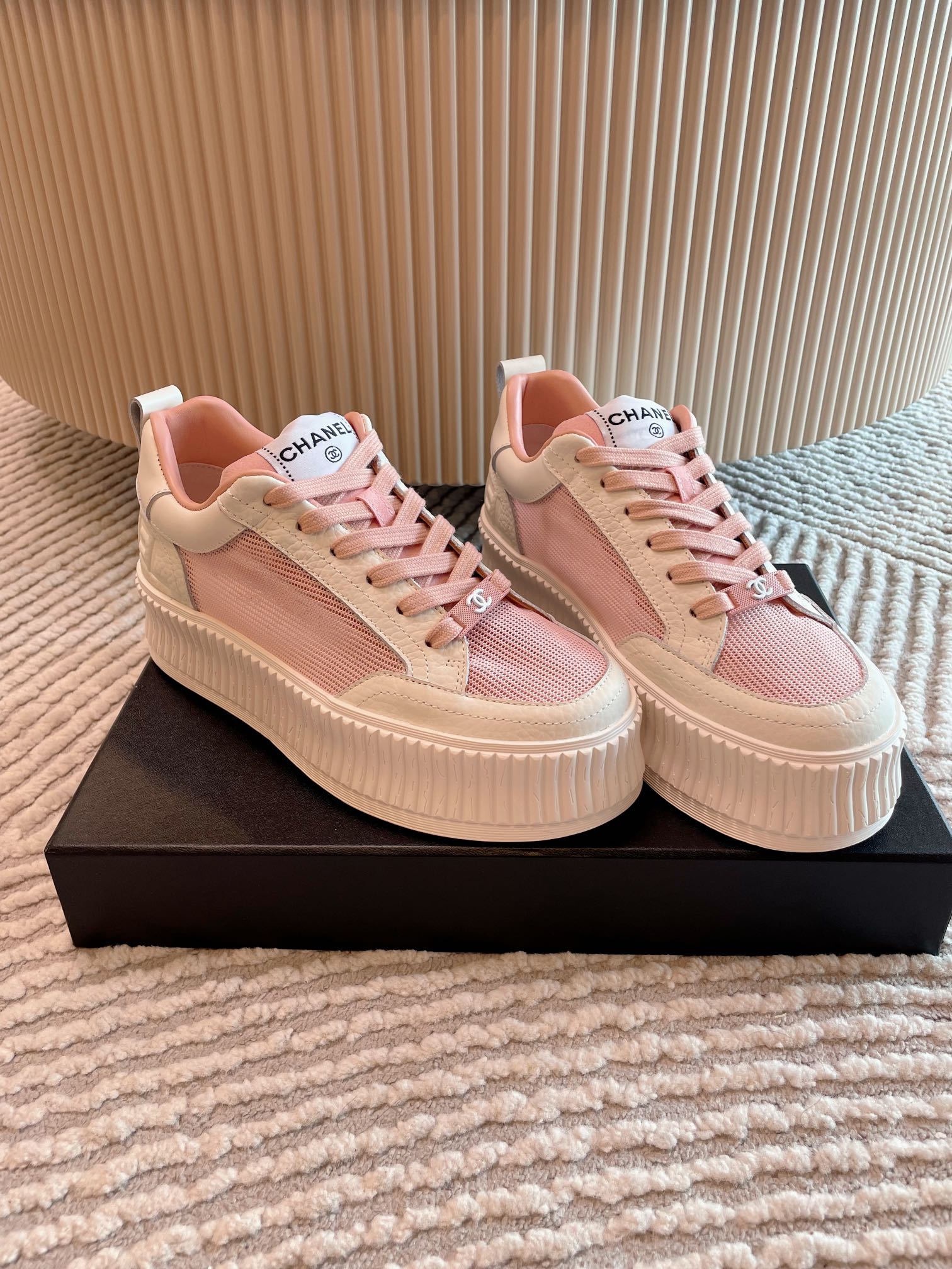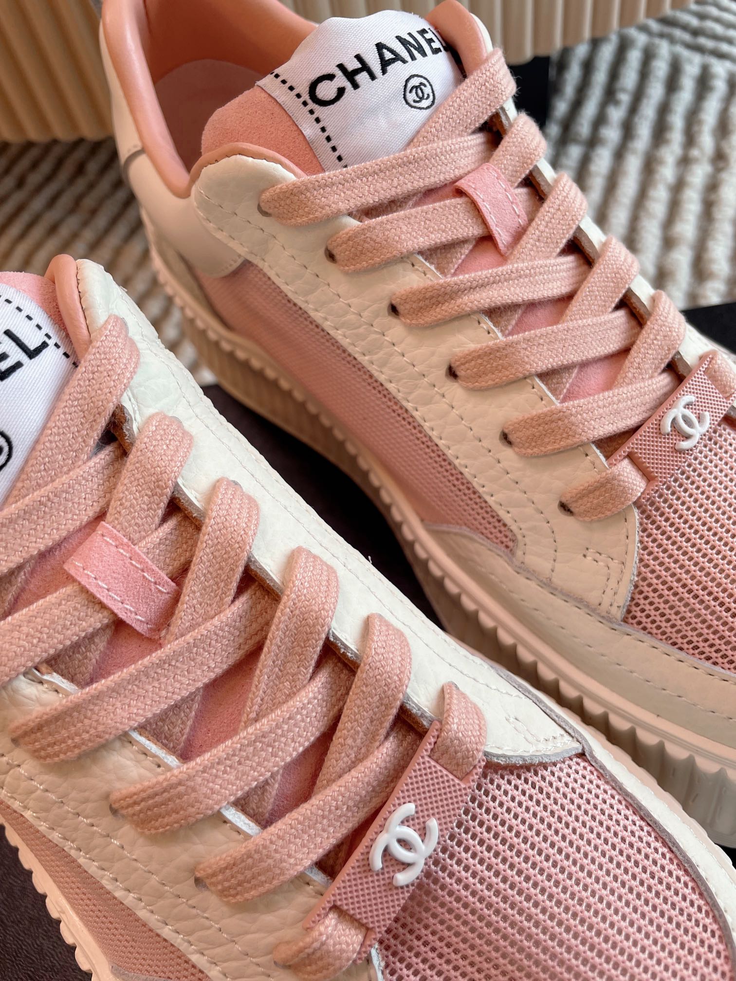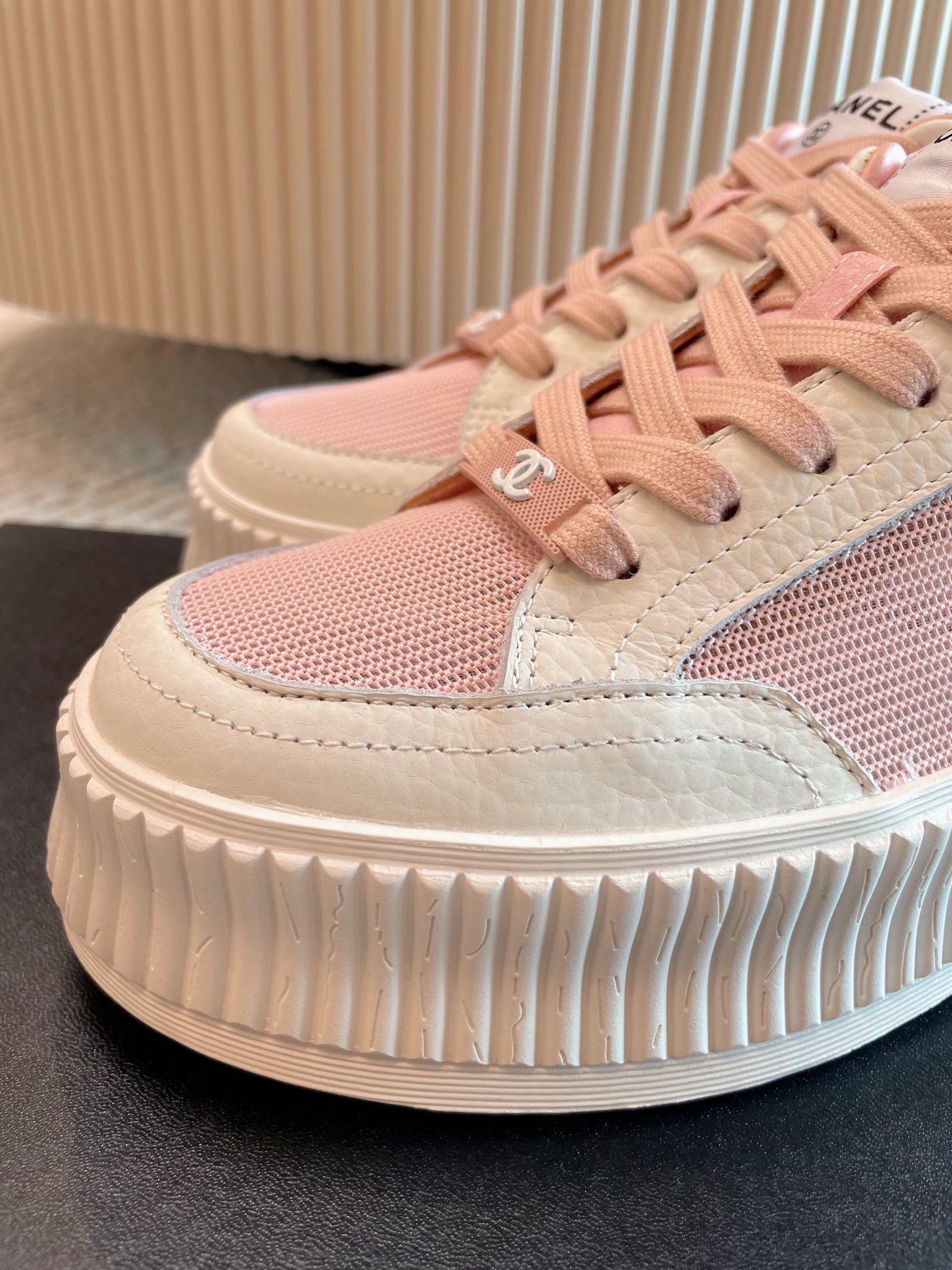 这款鞋子是AAAAA 1:1 质量 (非常棒). 使用了和原版一模一样的材料. 商标部分也保持了和香奈儿/Chanel一样. 图片拍摄是实物鞋子拍摄, 您所收到的实物保证和我们图片一模一样.