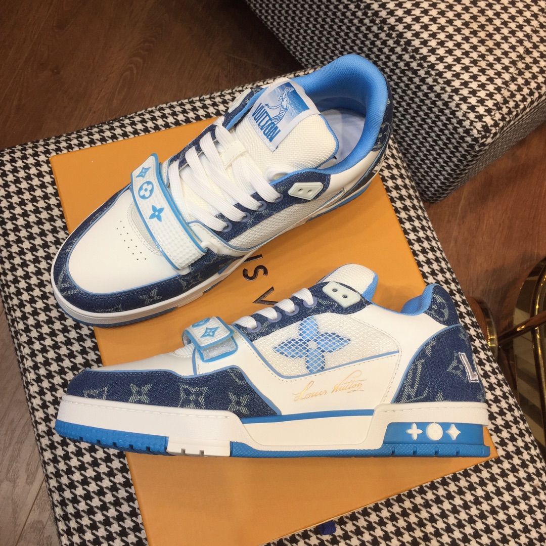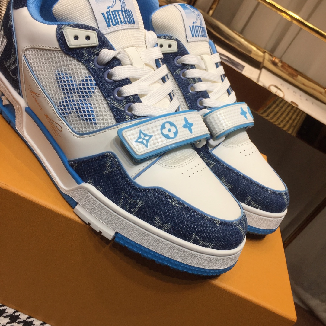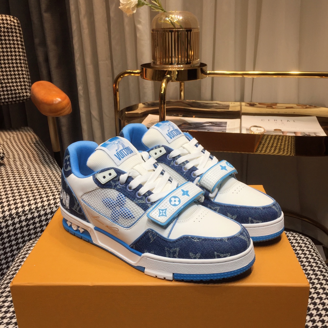 这款鞋子是AAAAA 1:1 质量 (非常棒). 使用了和原版一模一样的材料. 商标部分也保持了和路易威登/Louis Vuitton一样. 图片拍摄是实物鞋子拍摄, 您所收到的实物保证和我们图片一模一样.