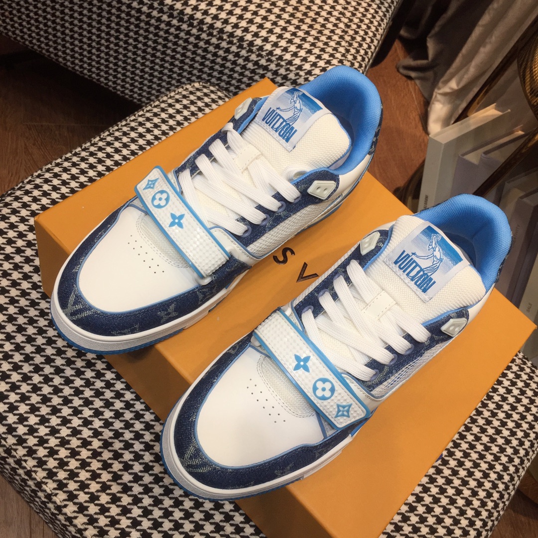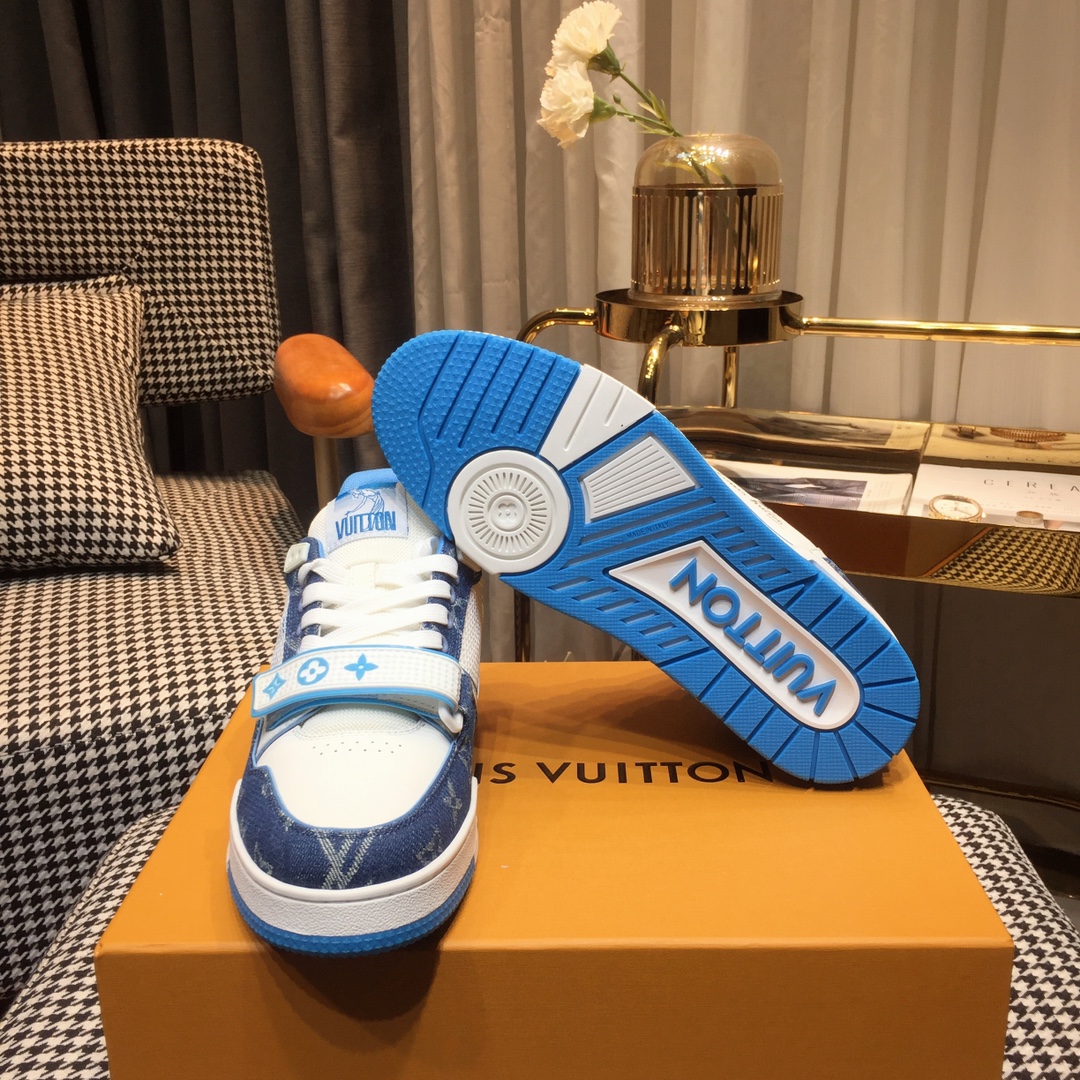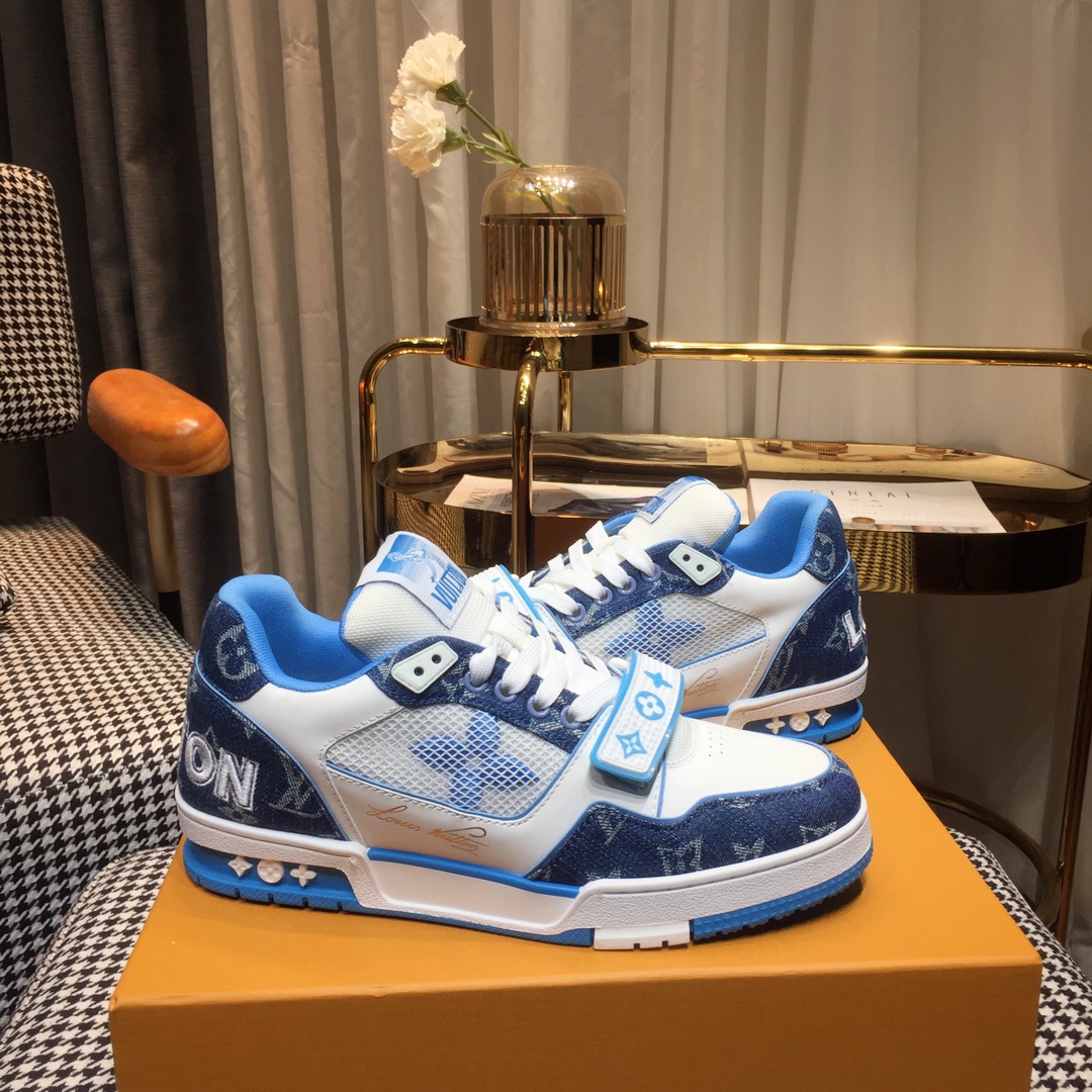 这款鞋子是AAAAA 1:1 质量 (非常棒). 使用了和原版一模一样的材料. 商标部分也保持了和路易威登/Louis Vuitton一样. 图片拍摄是实物鞋子拍摄, 您所收到的实物保证和我们图片一模一样.