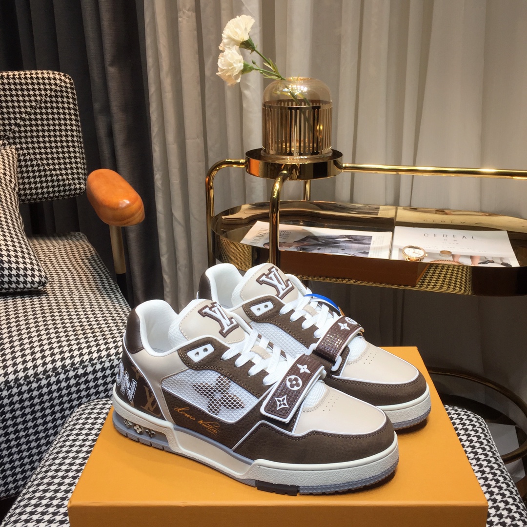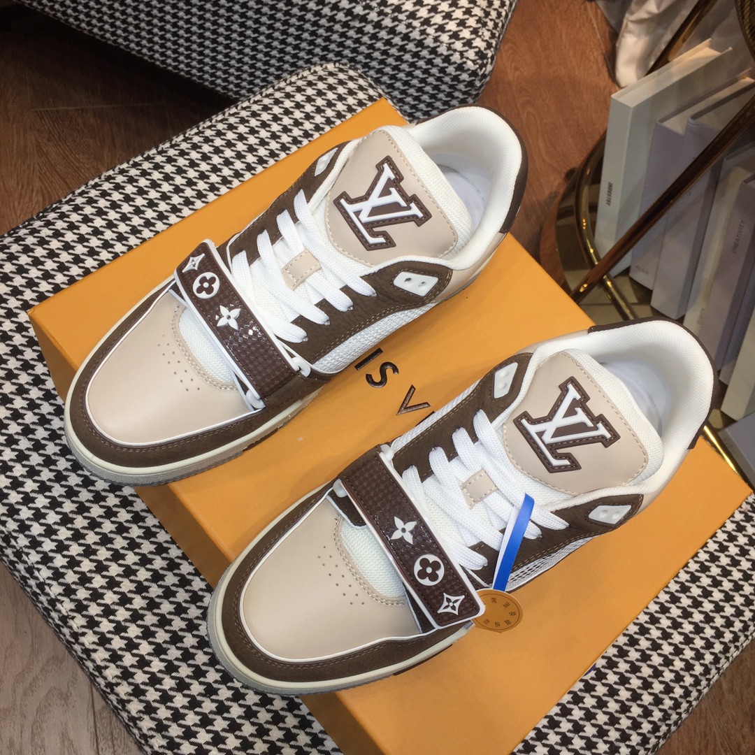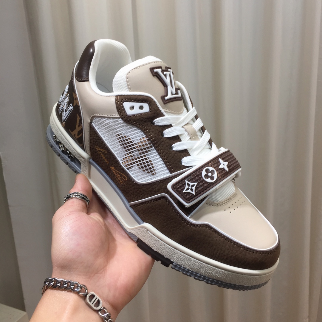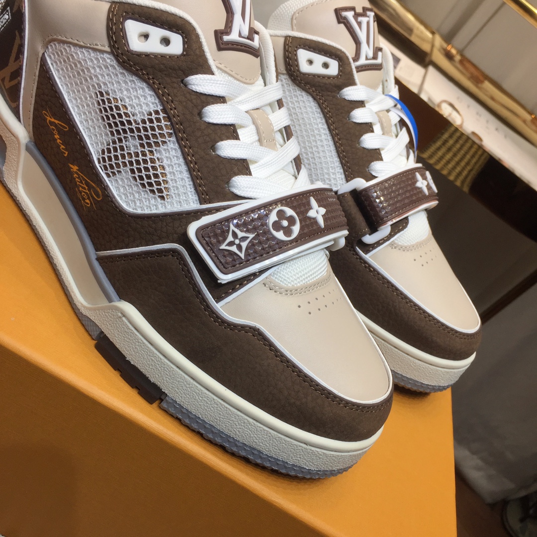 这款鞋子是AAAAA 1:1 质量 (非常棒). 使用了和原版一模一样的材料. 商标部分也保持了和路易威登/Louis Vuitton一样. 图片拍摄是实物鞋子拍摄, 您所收到的实物保证和我们图片一模一样.