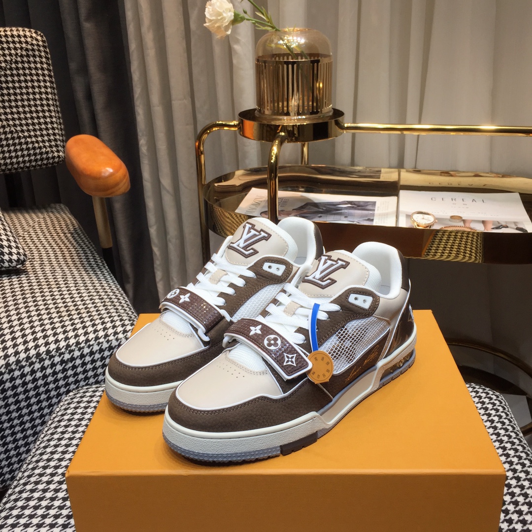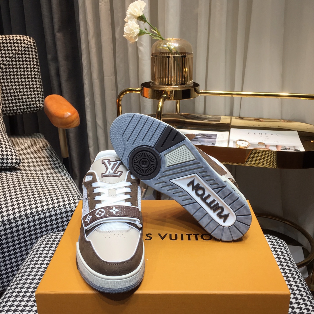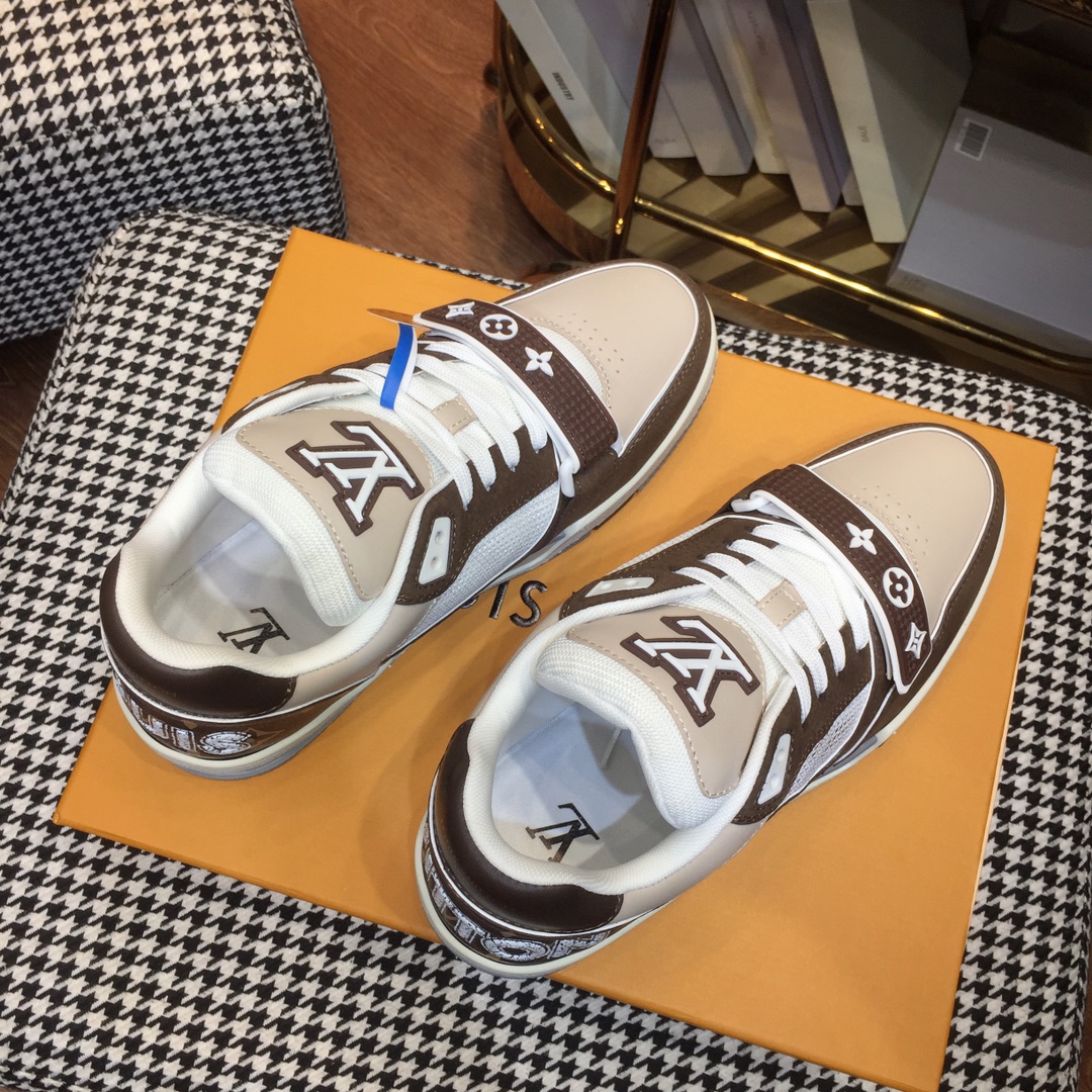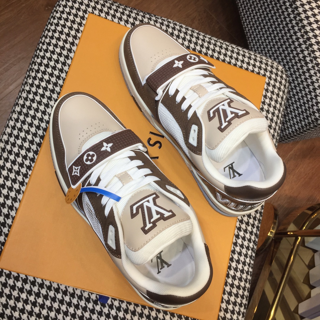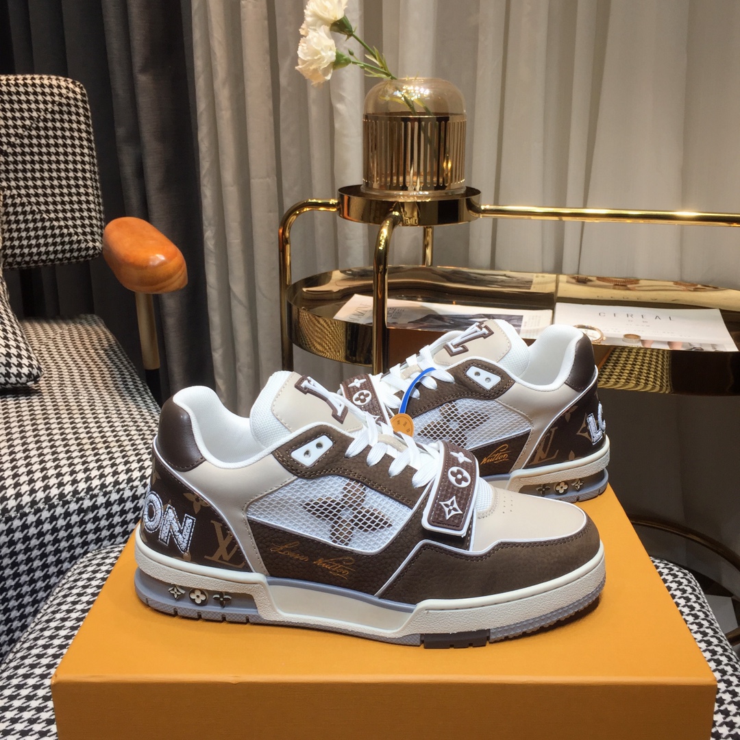 这款鞋子是AAAAA 1:1 质量 (非常棒). 使用了和原版一模一样的材料. 商标部分也保持了和路易威登/Louis Vuitton一样. 图片拍摄是实物鞋子拍摄, 您所收到的实物保证和我们图片一模一样.