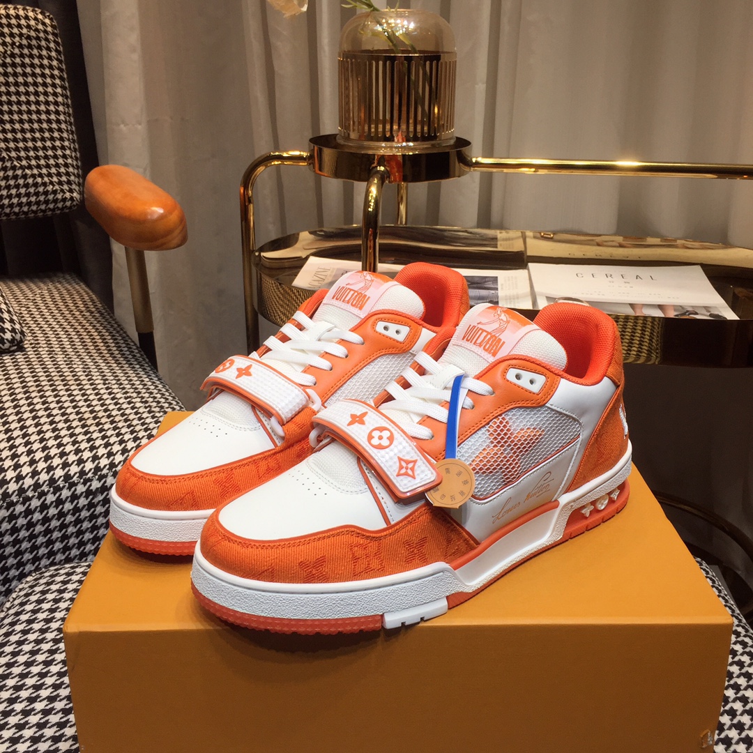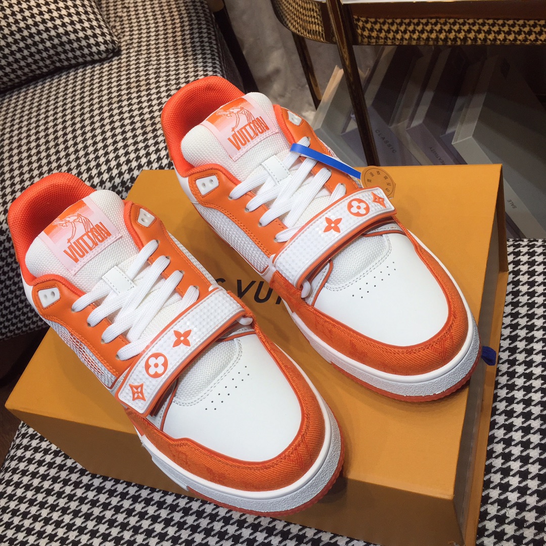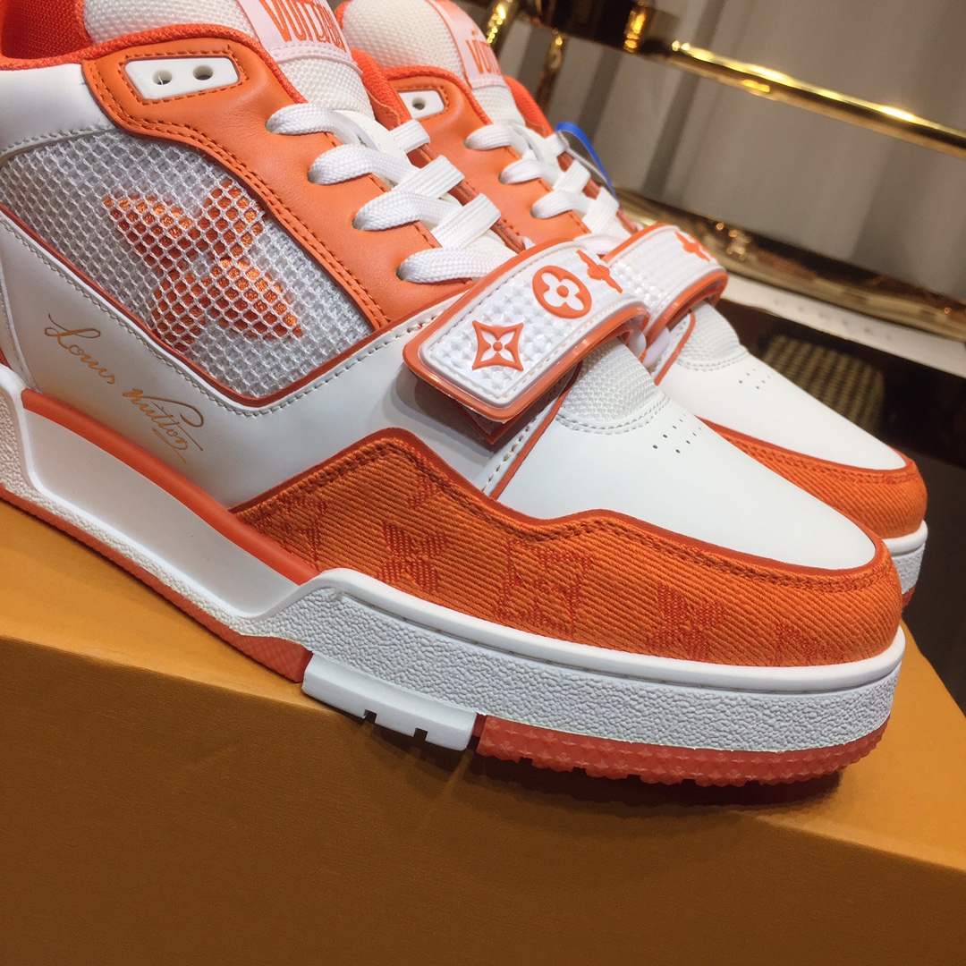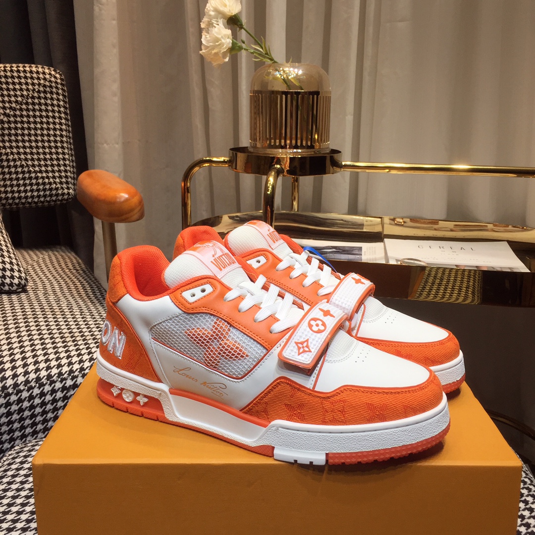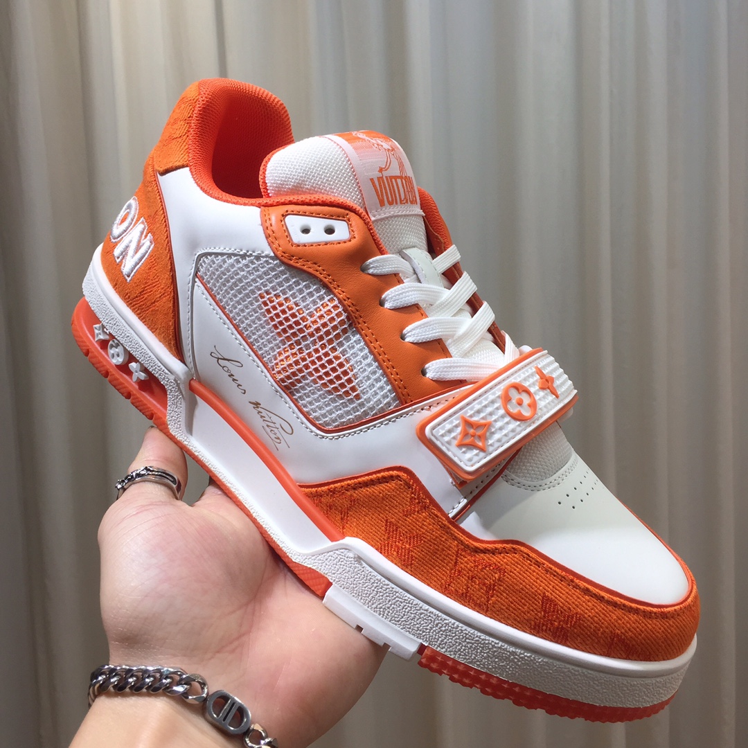 这款鞋子是AAAAA 1:1 质量 (非常棒). 使用了和原版一模一样的材料. 商标部分也保持了和路易威登/Louis Vuitton一样. 图片拍摄是实物鞋子拍摄, 您所收到的实物保证和我们图片一模一样.