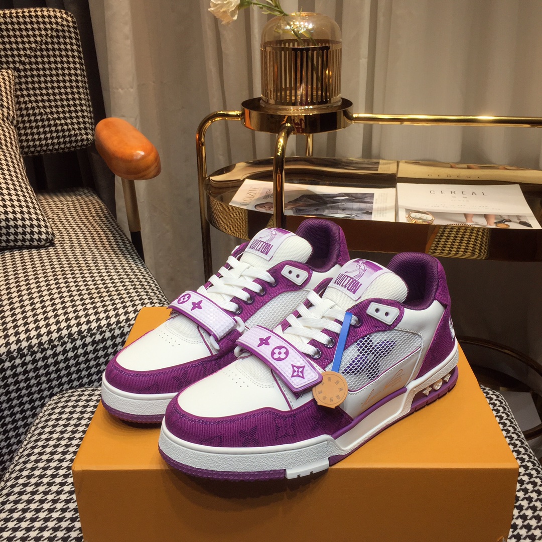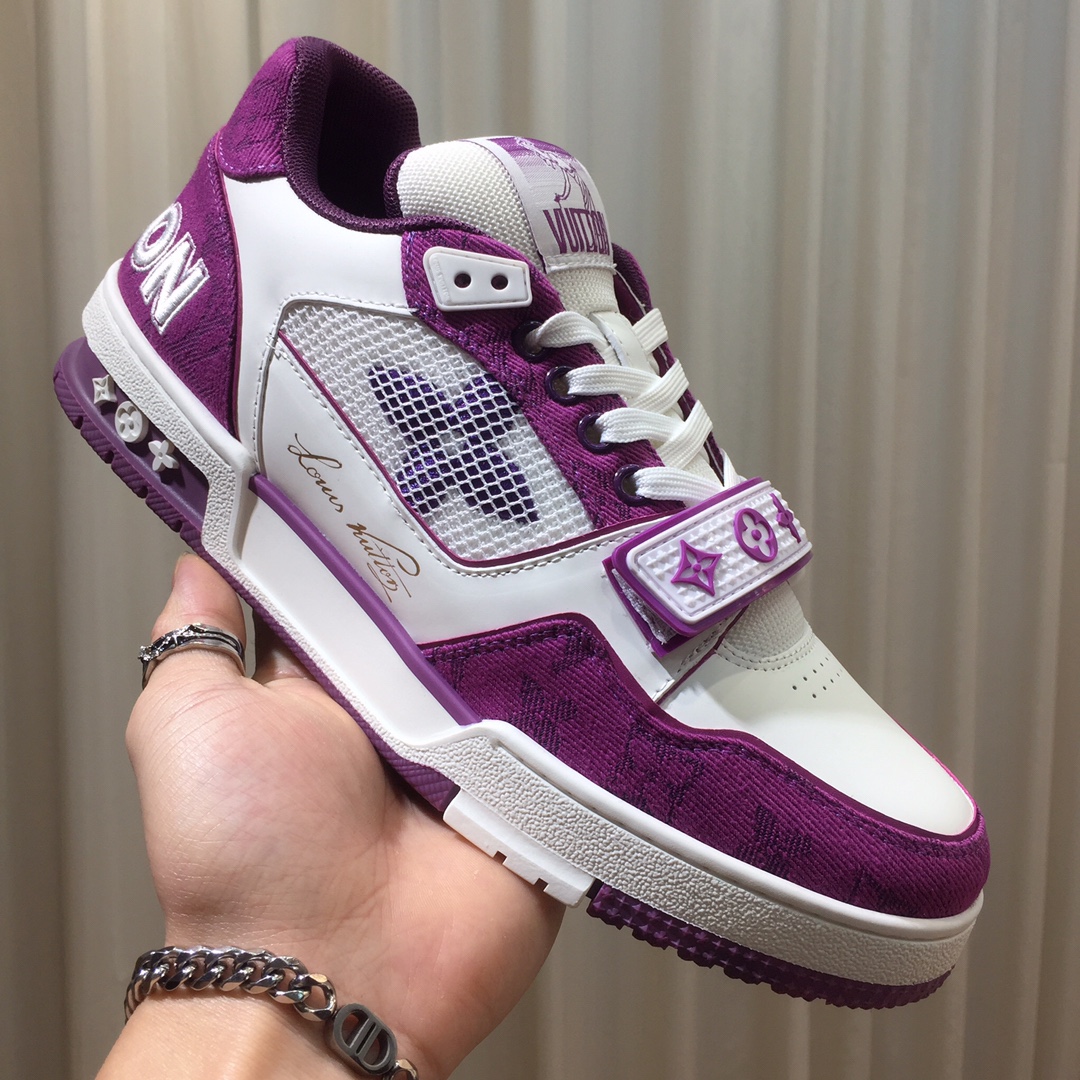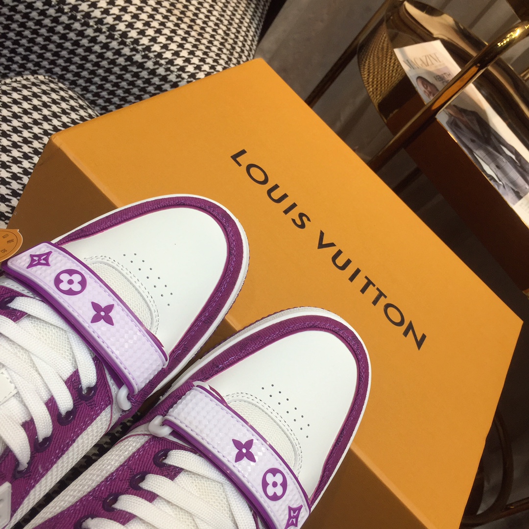 这款鞋子是AAAAA 1:1 质量 (非常棒). 使用了和原版一模一样的材料. 商标部分也保持了和路易威登/Louis Vuitton一样. 图片拍摄是实物鞋子拍摄, 您所收到的实物保证和我们图片一模一样.