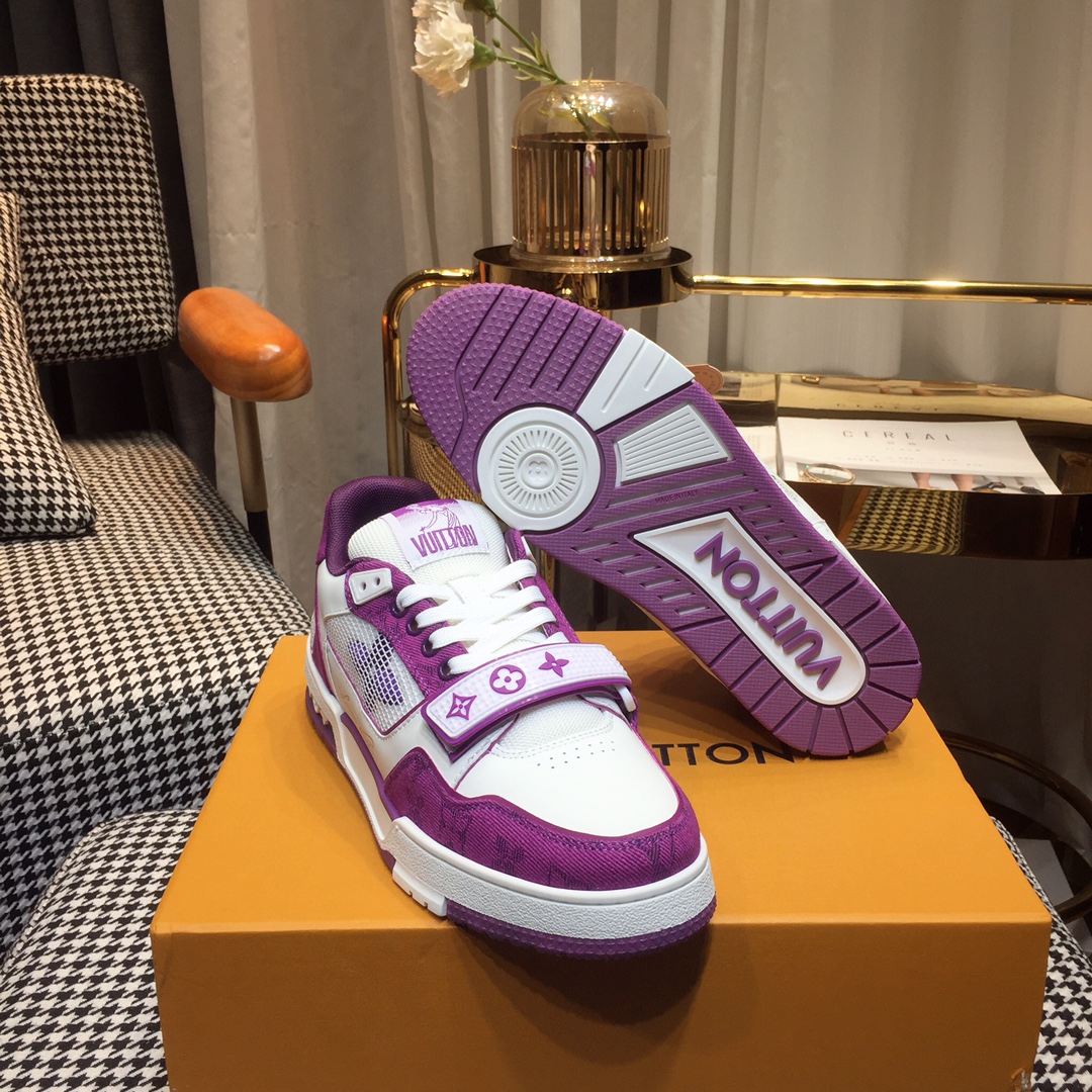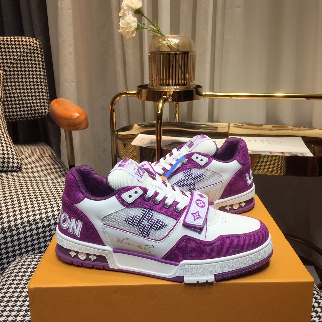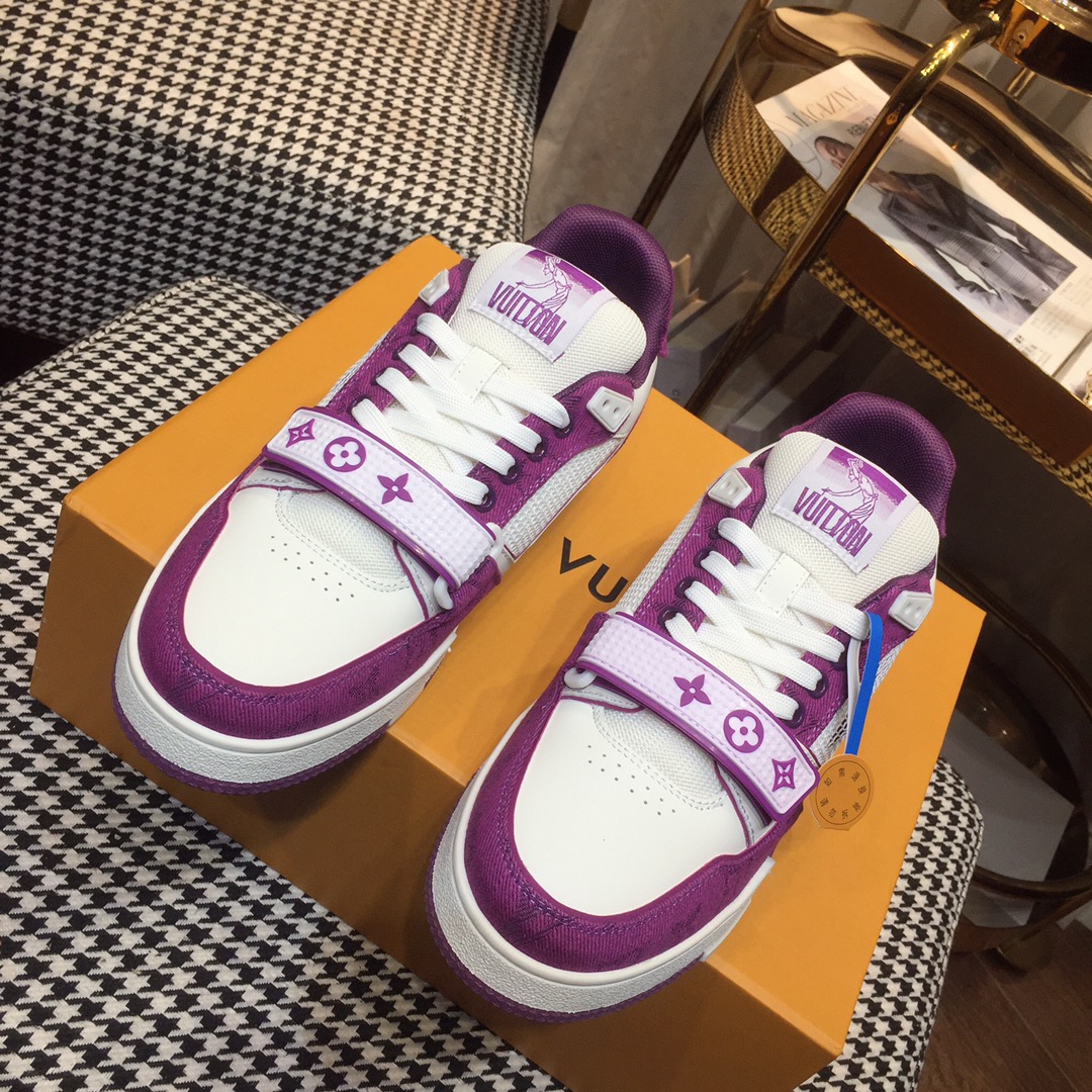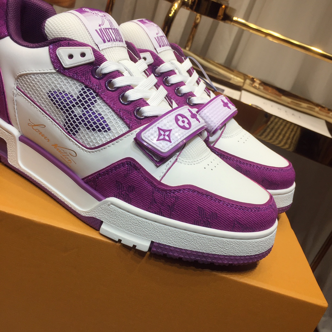 这款鞋子是AAAAA 1:1 质量 (非常棒). 使用了和原版一模一样的材料. 商标部分也保持了和路易威登/Louis Vuitton一样. 图片拍摄是实物鞋子拍摄, 您所收到的实物保证和我们图片一模一样.