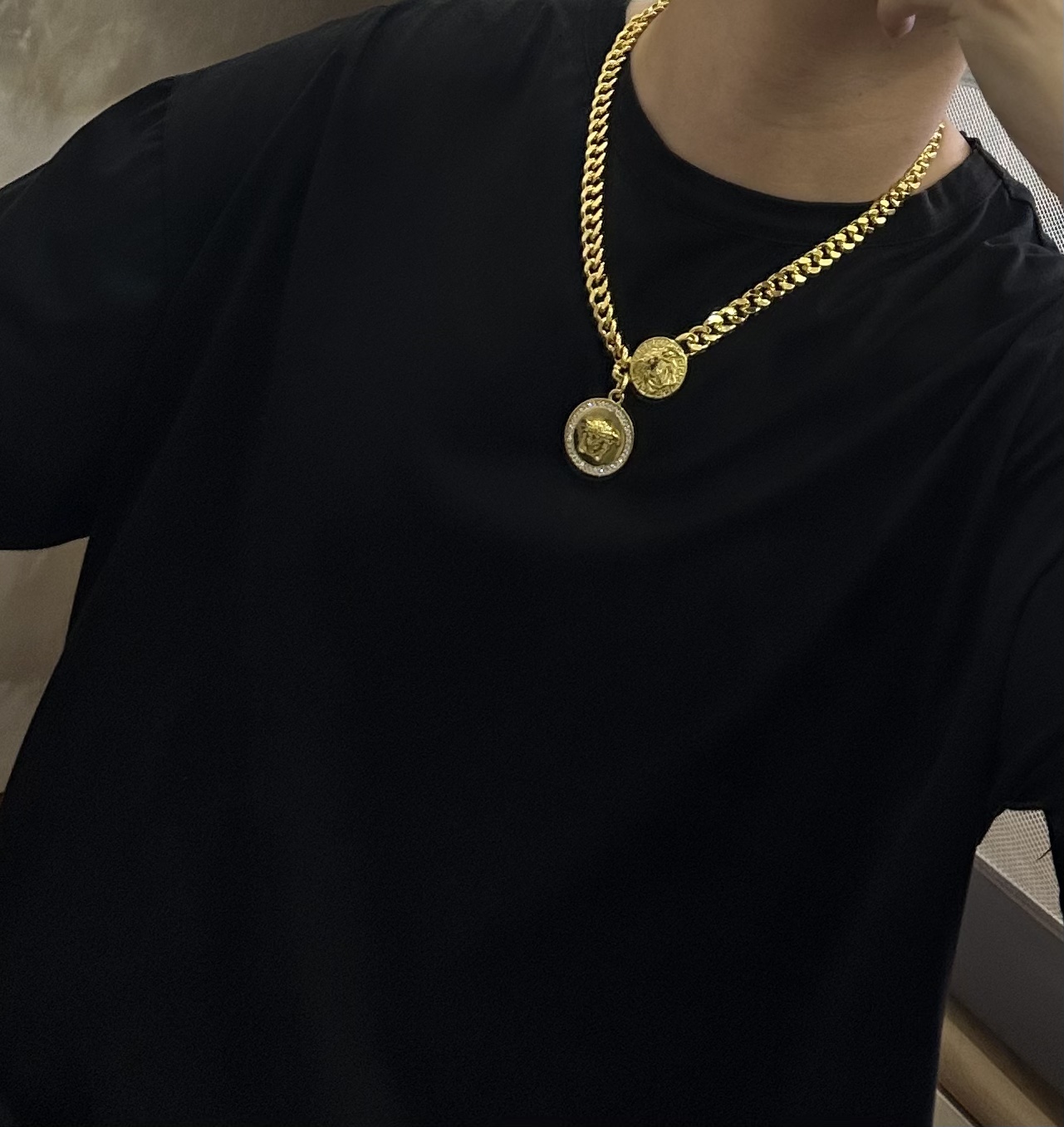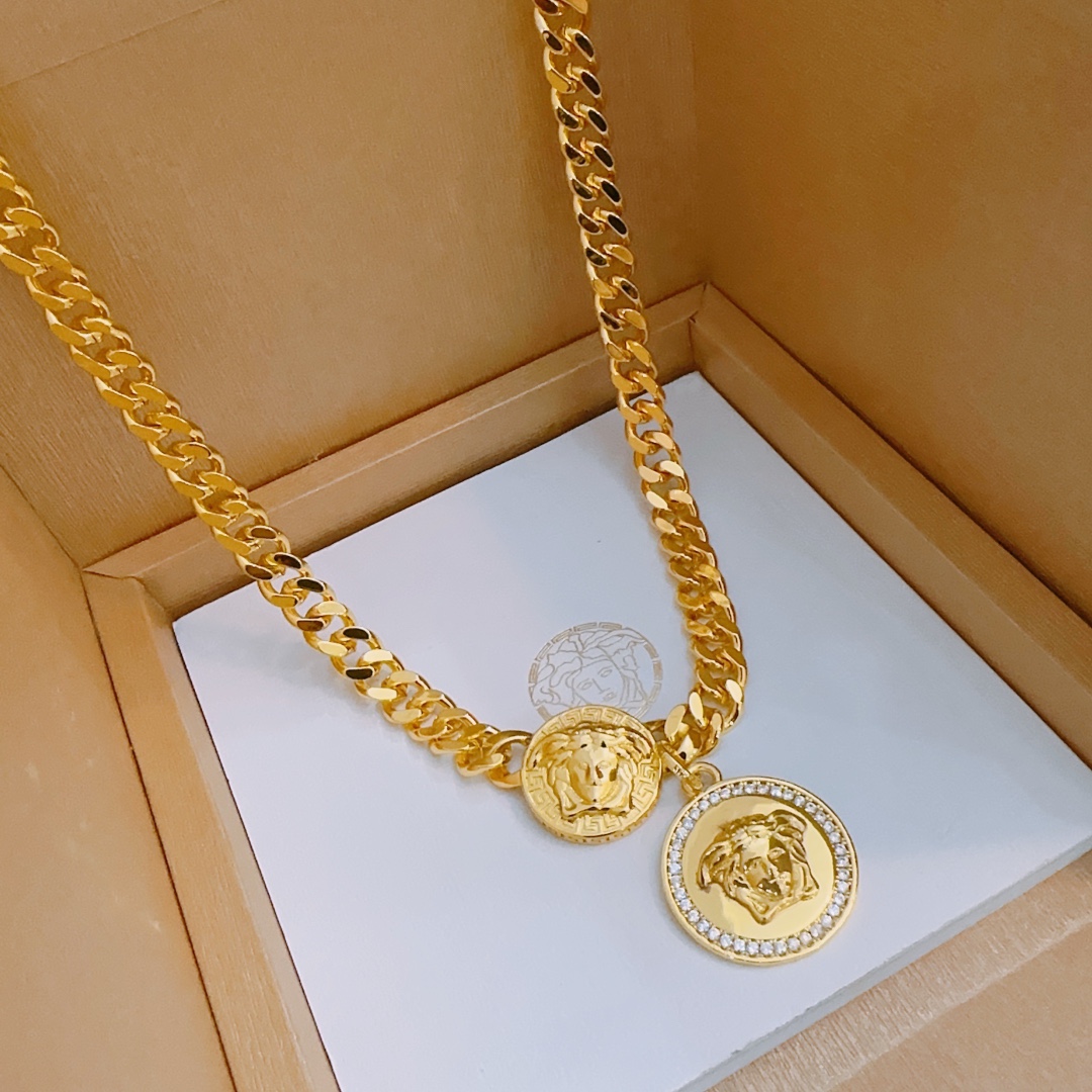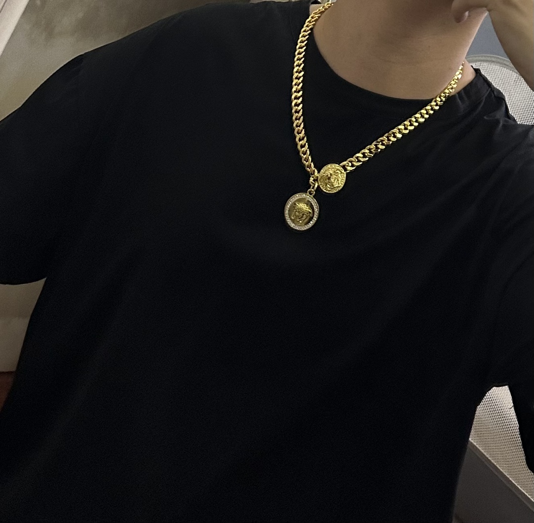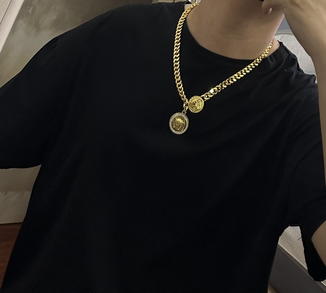 这款首饰是AAAAA 1:1 质量 (非常棒). 使用了和原版一模一样的材料. 商标部分也保持了和范思哲/Versace一样. 图片拍摄是实物首饰拍摄, 您所收到的实物保证和我们图片一模一样.