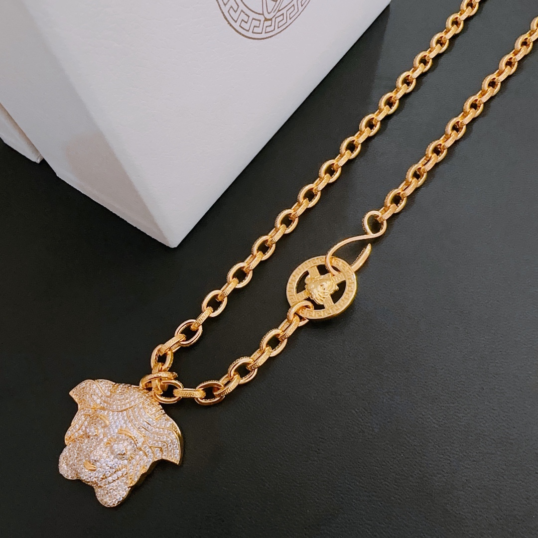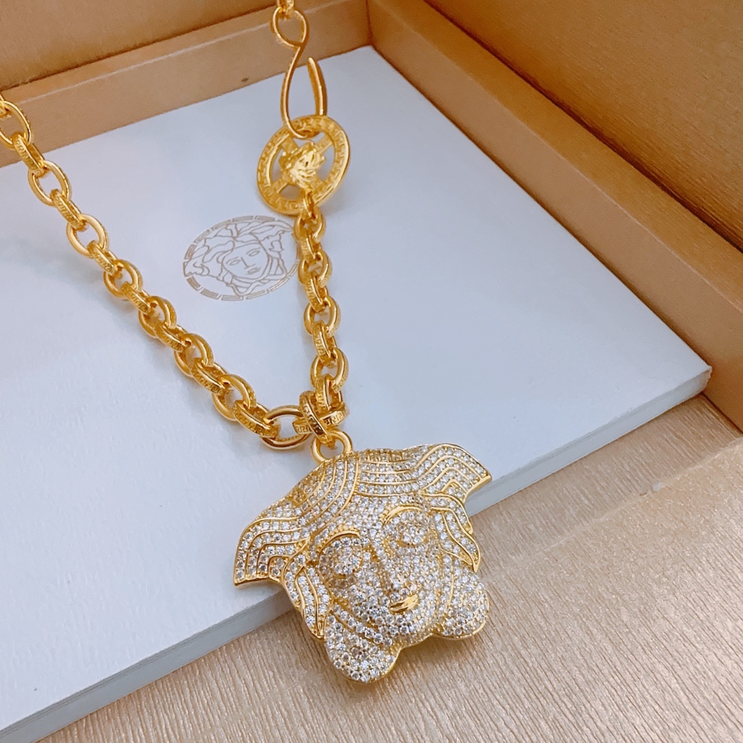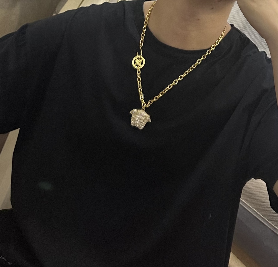 这款首饰是AAAAA 1:1 质量 (非常棒). 使用了和原版一模一样的材料. 商标部分也保持了和范思哲/Versace一样. 图片拍摄是实物首饰拍摄, 您所收到的实物保证和我们图片一模一样.