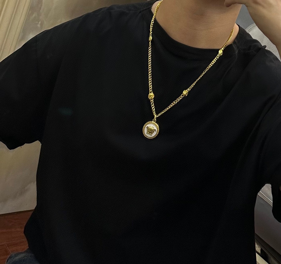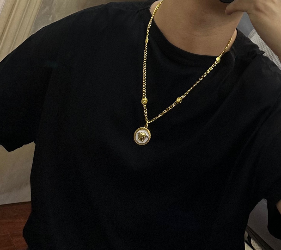 这款首饰是AAAAA 1:1 质量 (非常棒). 使用了和原版一模一样的材料. 商标部分也保持了和范思哲/Versace一样. 图片拍摄是实物首饰拍摄, 您所收到的实物保证和我们图片一模一样.