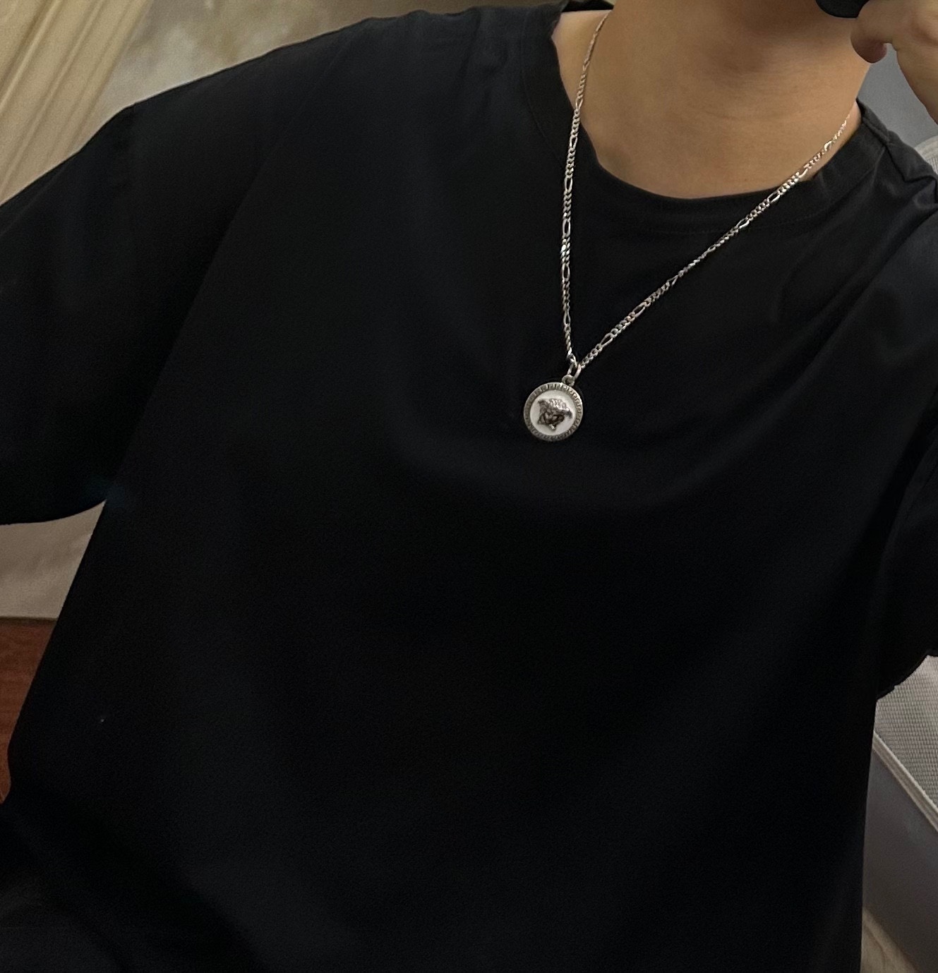 这款首饰是AAAAA 1:1 质量 (非常棒). 使用了和原版一模一样的材料. 商标部分也保持了和范思哲/Versace一样. 图片拍摄是实物首饰拍摄, 您所收到的实物保证和我们图片一模一样.