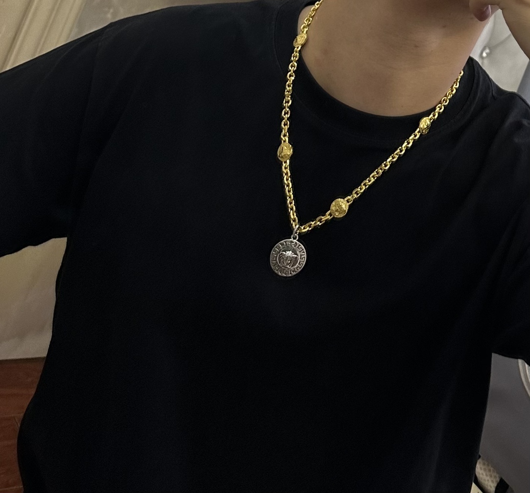 这款首饰是AAAAA 1:1 质量 (非常棒). 使用了和原版一模一样的材料. 商标部分也保持了和范思哲/Versace一样. 图片拍摄是实物首饰拍摄, 您所收到的实物保证和我们图片一模一样.