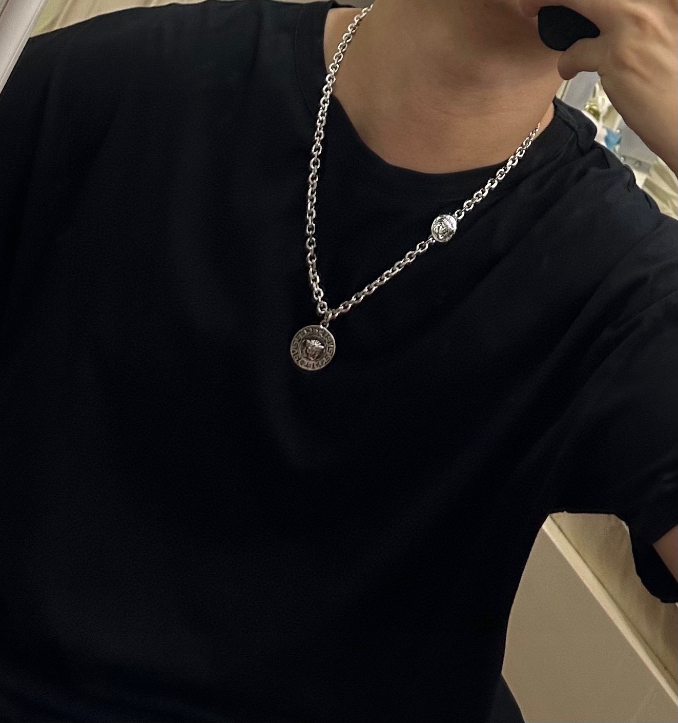 这款首饰是AAAAA 1:1 质量 (非常棒). 使用了和原版一模一样的材料. 商标部分也保持了和范思哲/Versace一样. 图片拍摄是实物首饰拍摄, 您所收到的实物保证和我们图片一模一样.