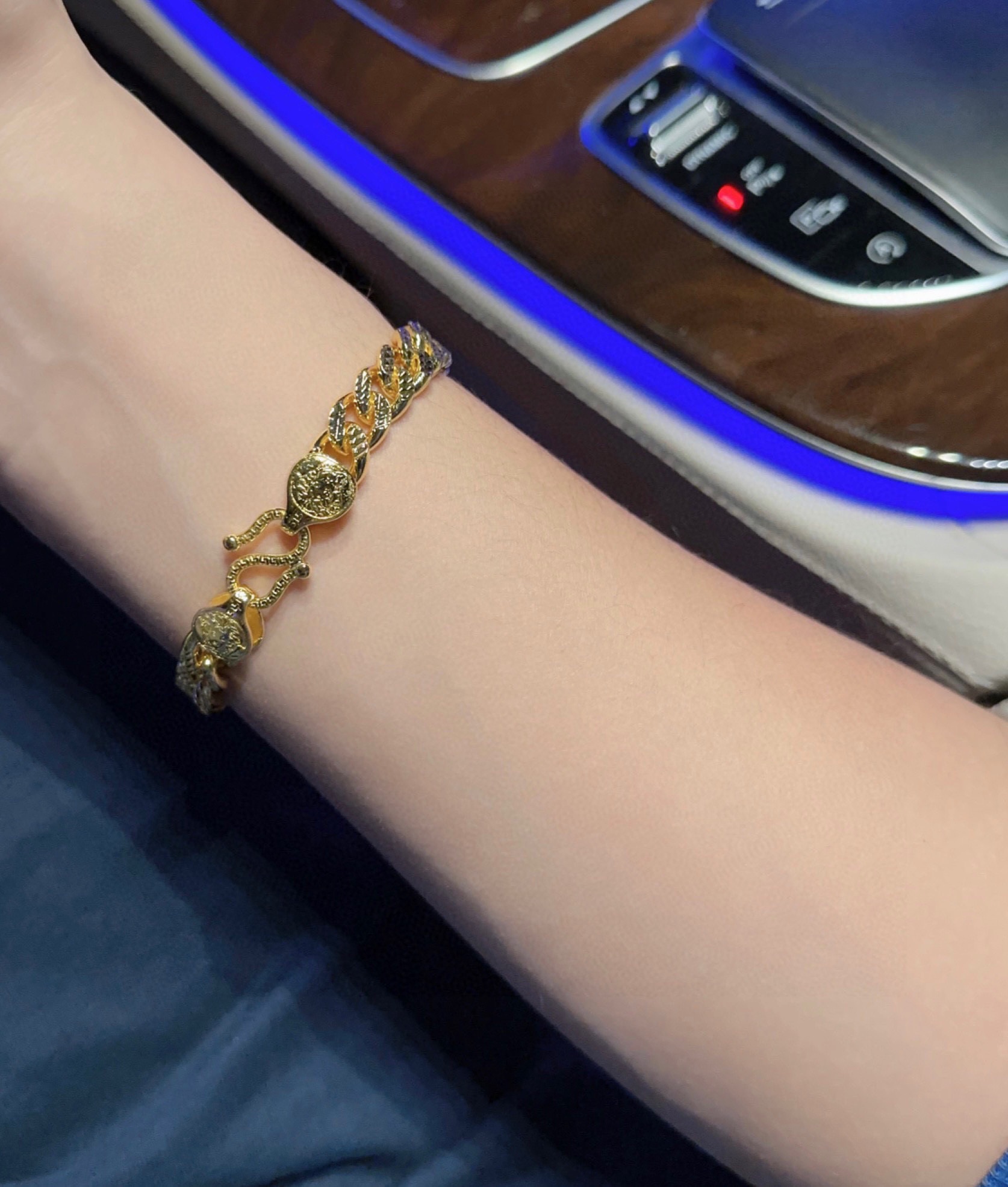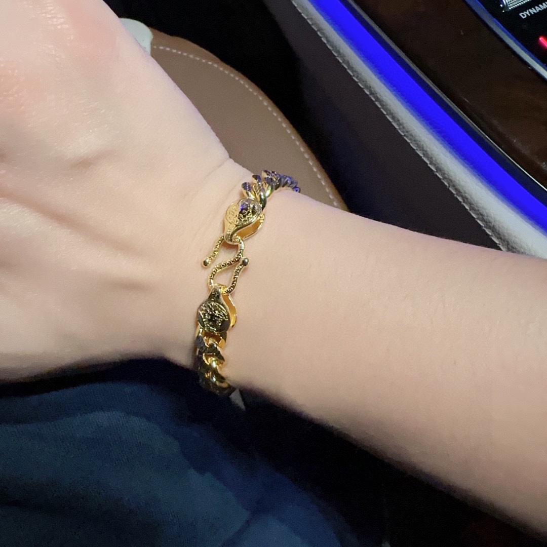 这款首饰是AAAAA 1:1 质量 (非常棒). 使用了和原版一模一样的材料. 商标部分也保持了和范思哲/Versace一样. 图片拍摄是实物首饰拍摄, 您所收到的实物保证和我们图片一模一样.