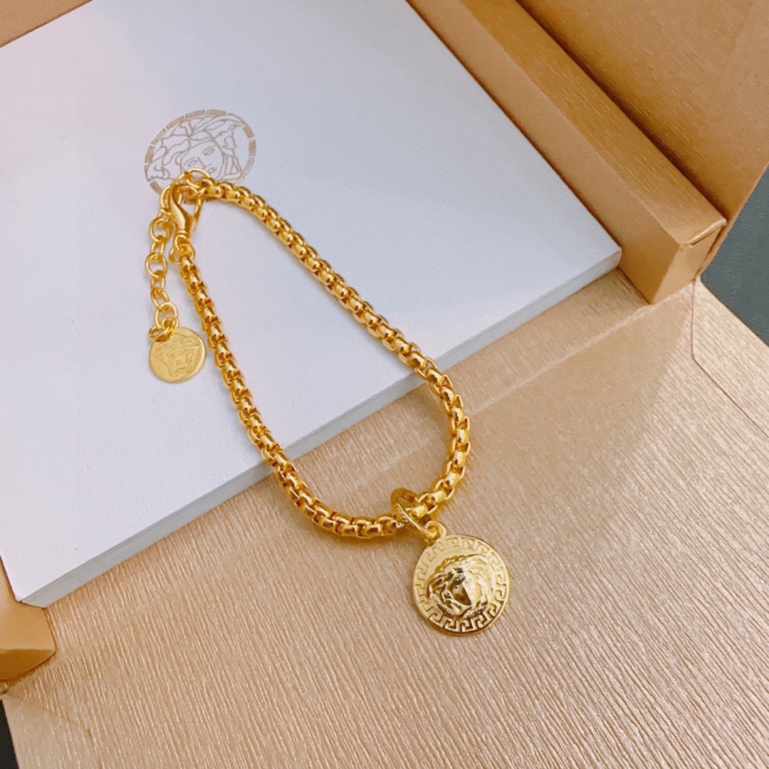 这款首饰是AAAAA 1:1 质量 (非常棒). 使用了和原版一模一样的材料. 商标部分也保持了和范思哲/Versace一样. 图片拍摄是实物首饰拍摄, 您所收到的实物保证和我们图片一模一样.