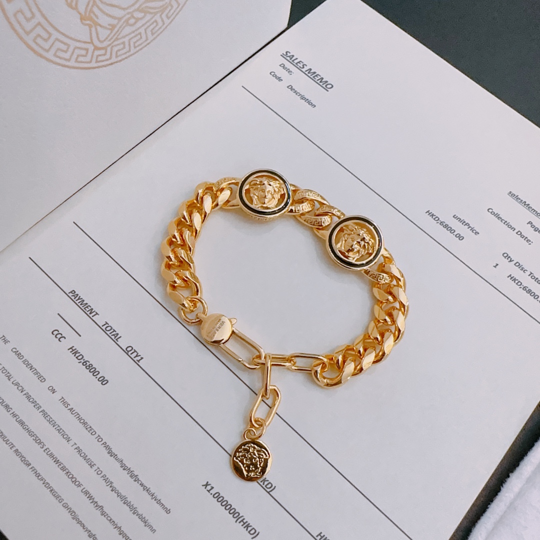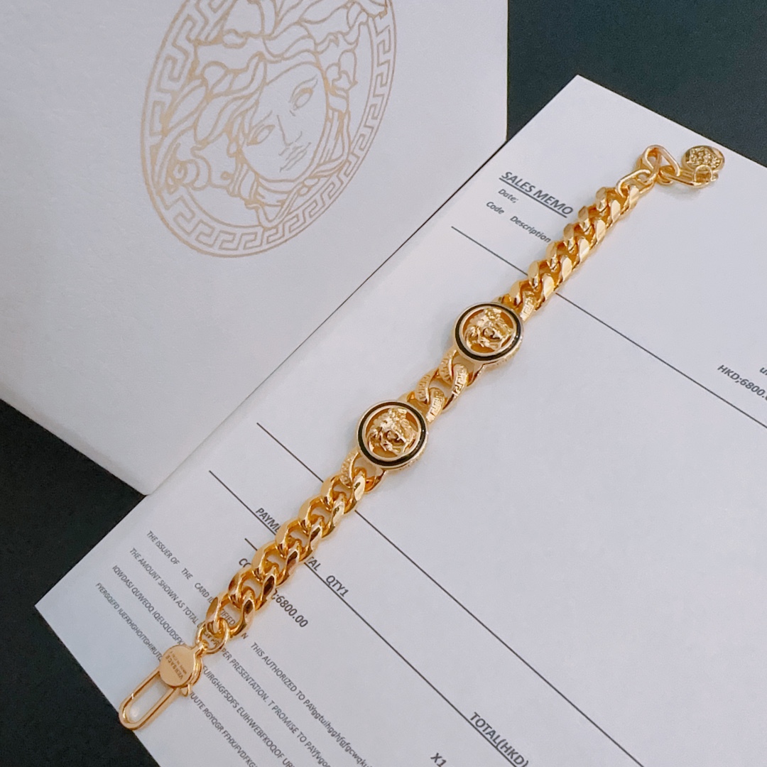 这款首饰是AAAAA 1:1 质量 (非常棒). 使用了和原版一模一样的材料. 商标部分也保持了和范思哲/Versace一样. 图片拍摄是实物首饰拍摄, 您所收到的实物保证和我们图片一模一样.