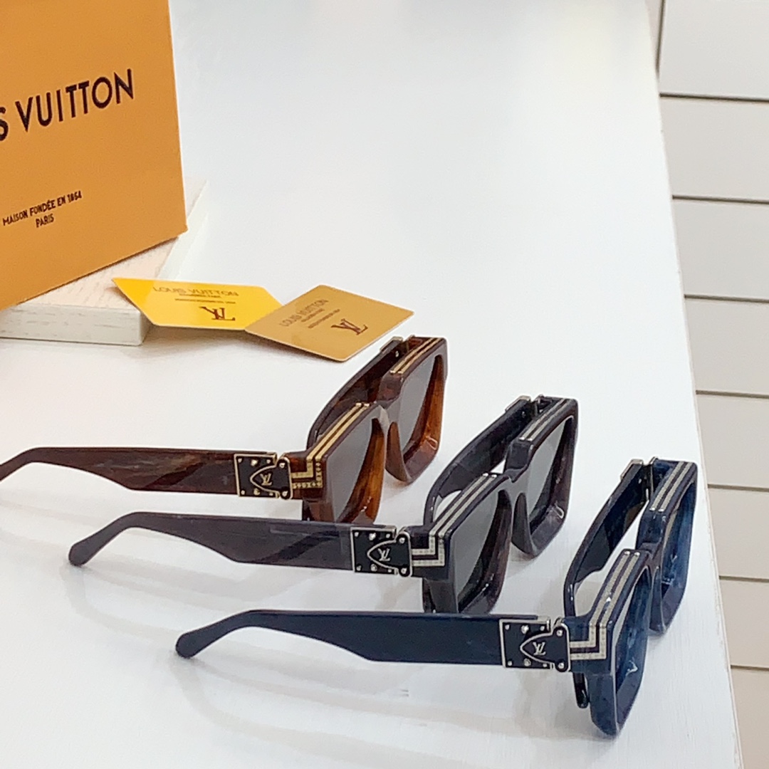 这款太阳眼镜是AAAAA 1:1 质量 (非常棒). 使用了和原版一模一样的材料. 商标部分也保持了和路易威登/Louis Vuitton一样. 图片拍摄是实物太阳眼镜拍摄, 您所收到的实物保证和我们图片一模一样.