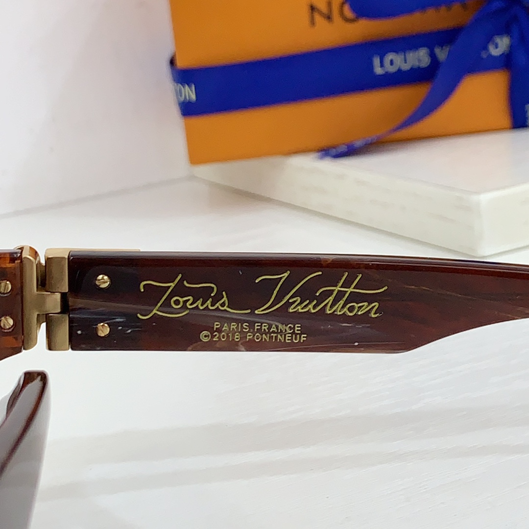 这款太阳眼镜是AAAAA 1:1 质量 (非常棒). 使用了和原版一模一样的材料. 商标部分也保持了和路易威登/Louis Vuitton一样. 图片拍摄是实物太阳眼镜拍摄, 您所收到的实物保证和我们图片一模一样.