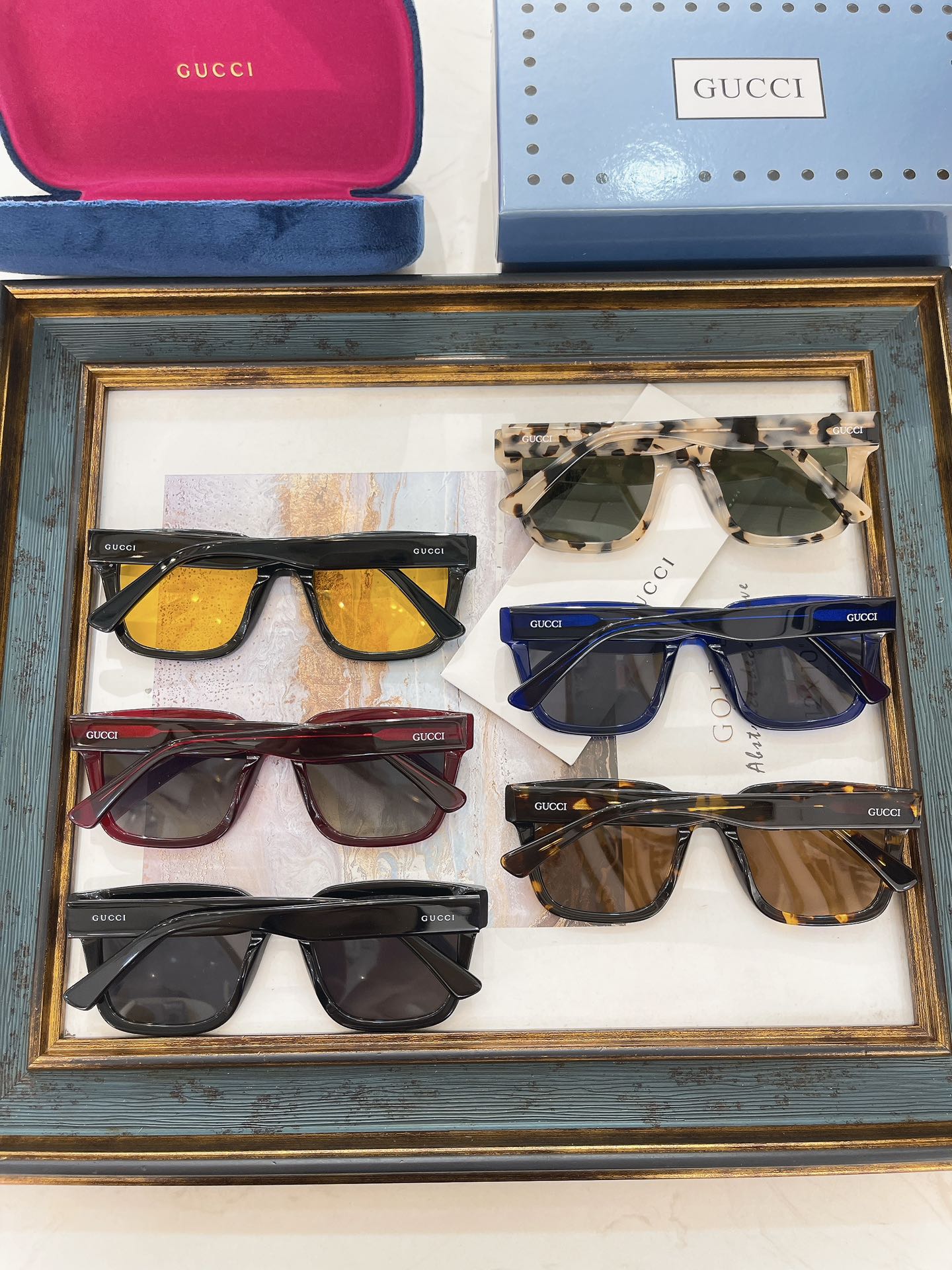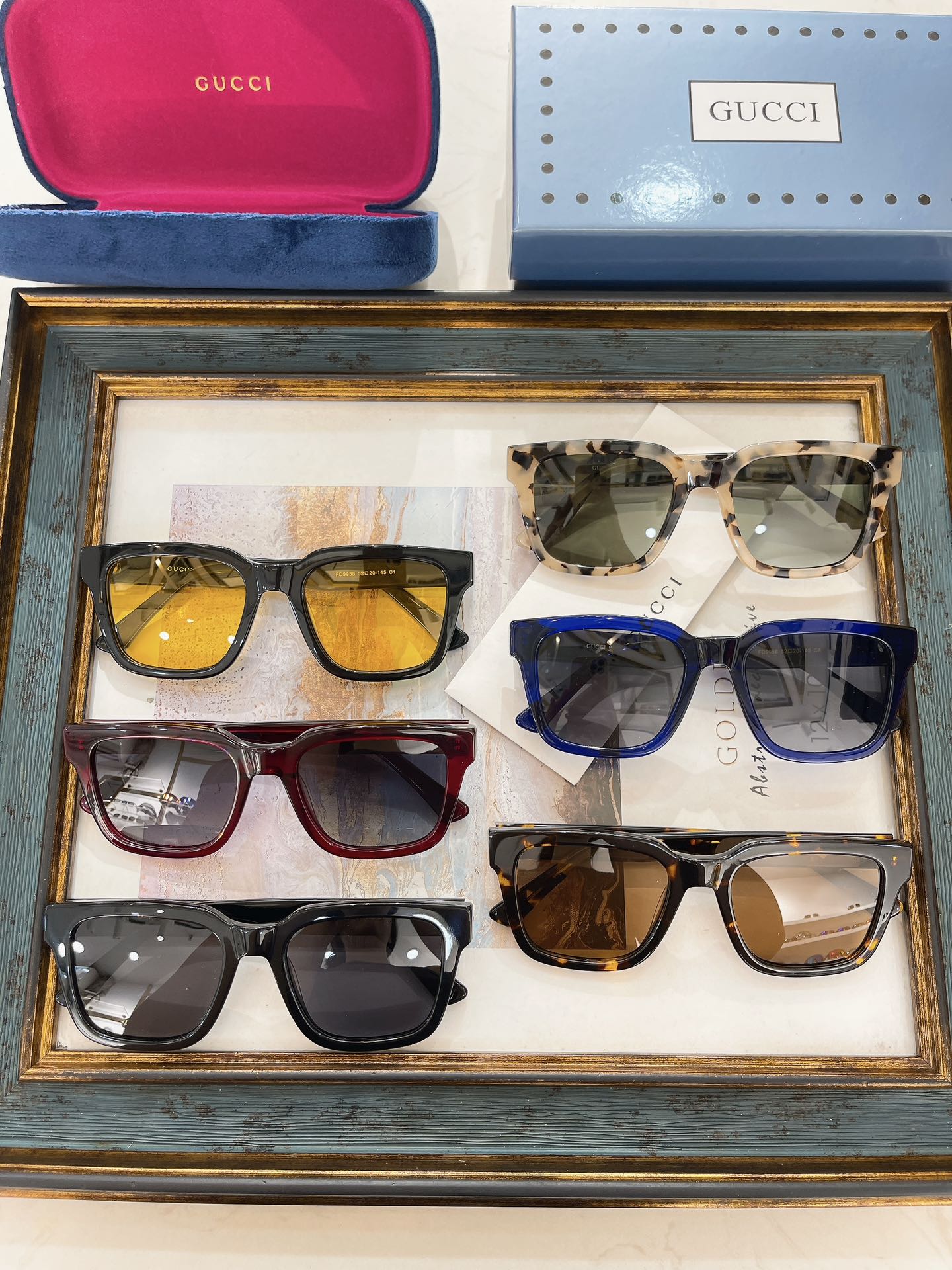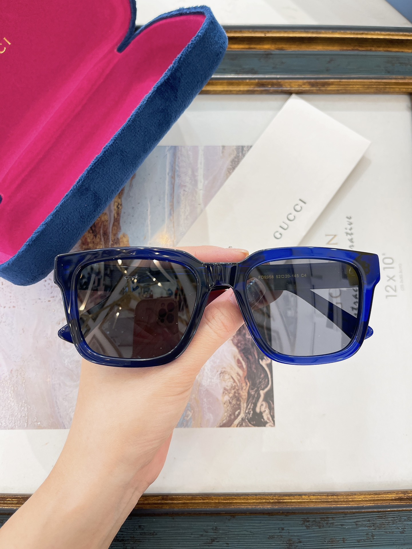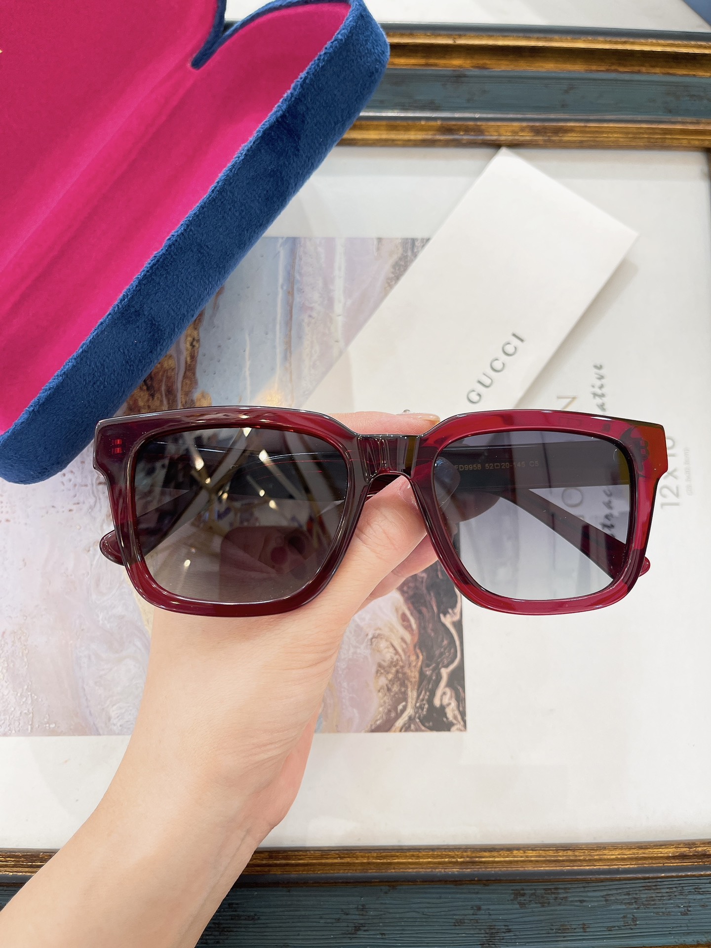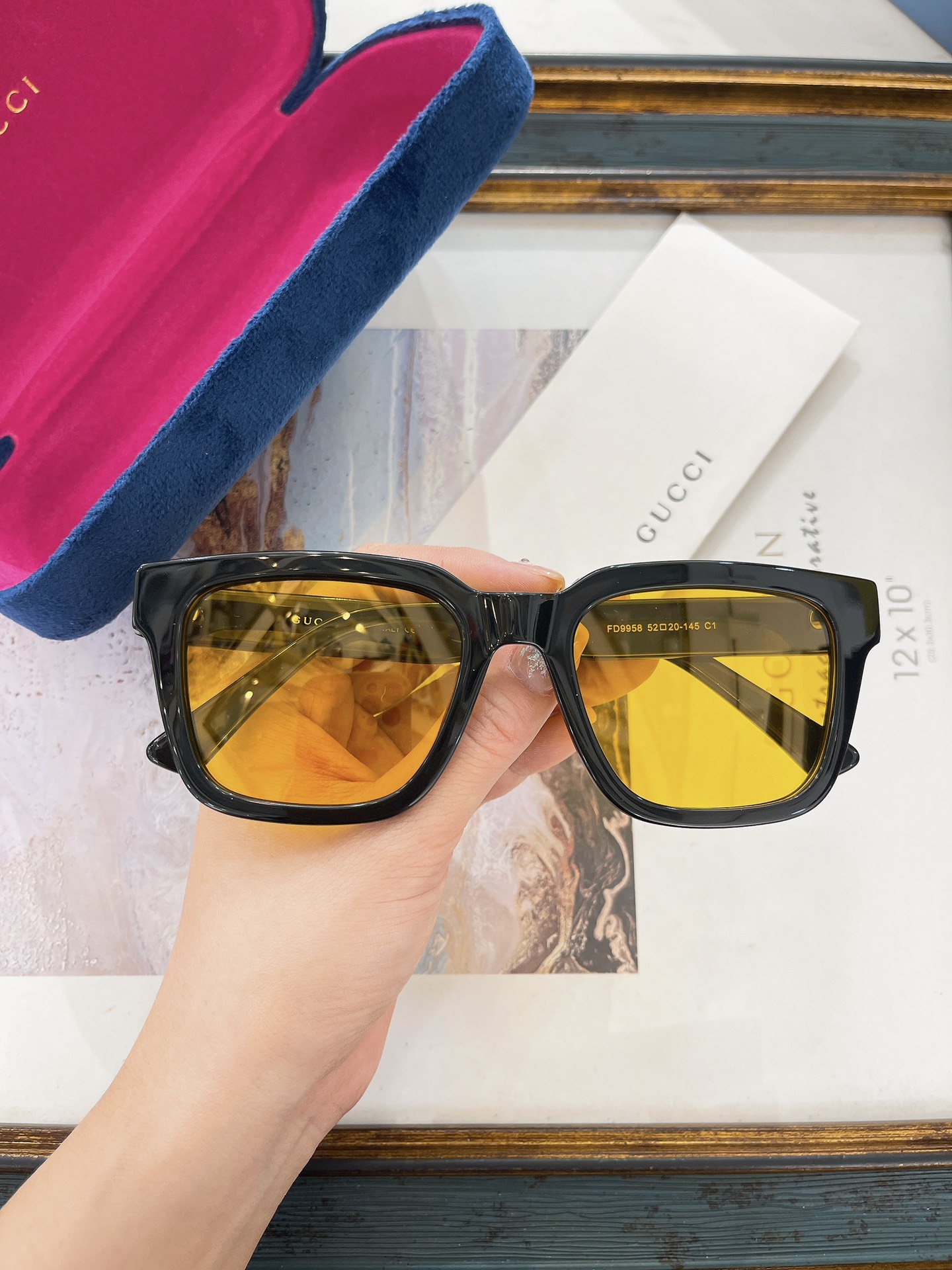 这款太阳眼镜是AAAAA 1:1 质量 (非常棒). 使用了和原版一模一样的材料. 商标部分也保持了和古奇/Gucci一样. 图片拍摄是实物太阳眼镜拍摄, 您所收到的实物保证和我们图片一模一样.