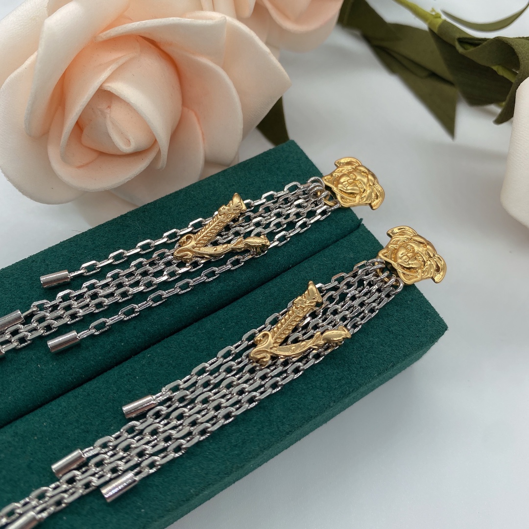 这款首饰是AAAAA 1:1 质量 (非常棒). 使用了和原版一模一样的材料. 商标部分也保持了和范思哲/Versace一样. 图片拍摄是实物首饰拍摄, 您所收到的实物保证和我们图片一模一样.
