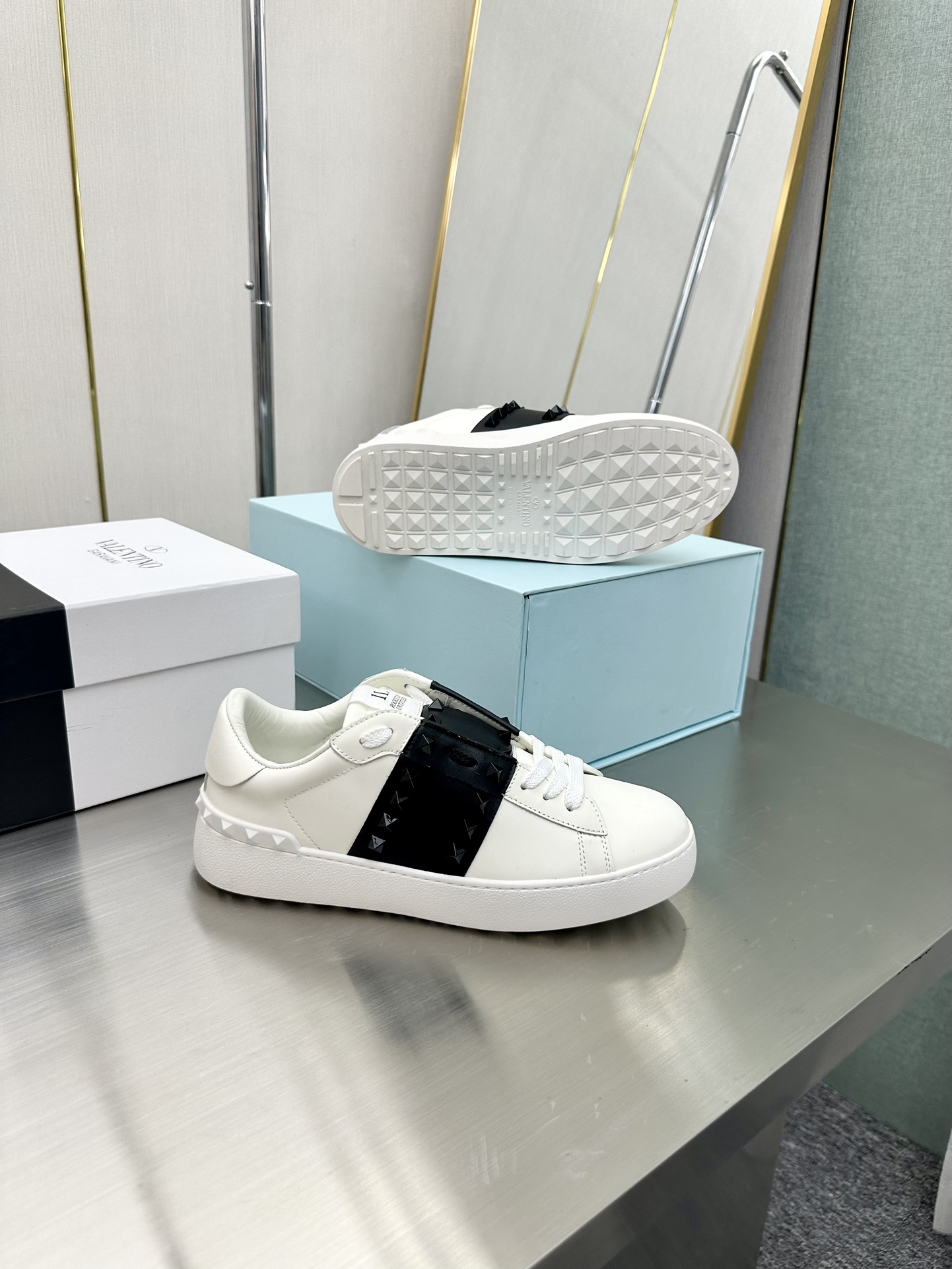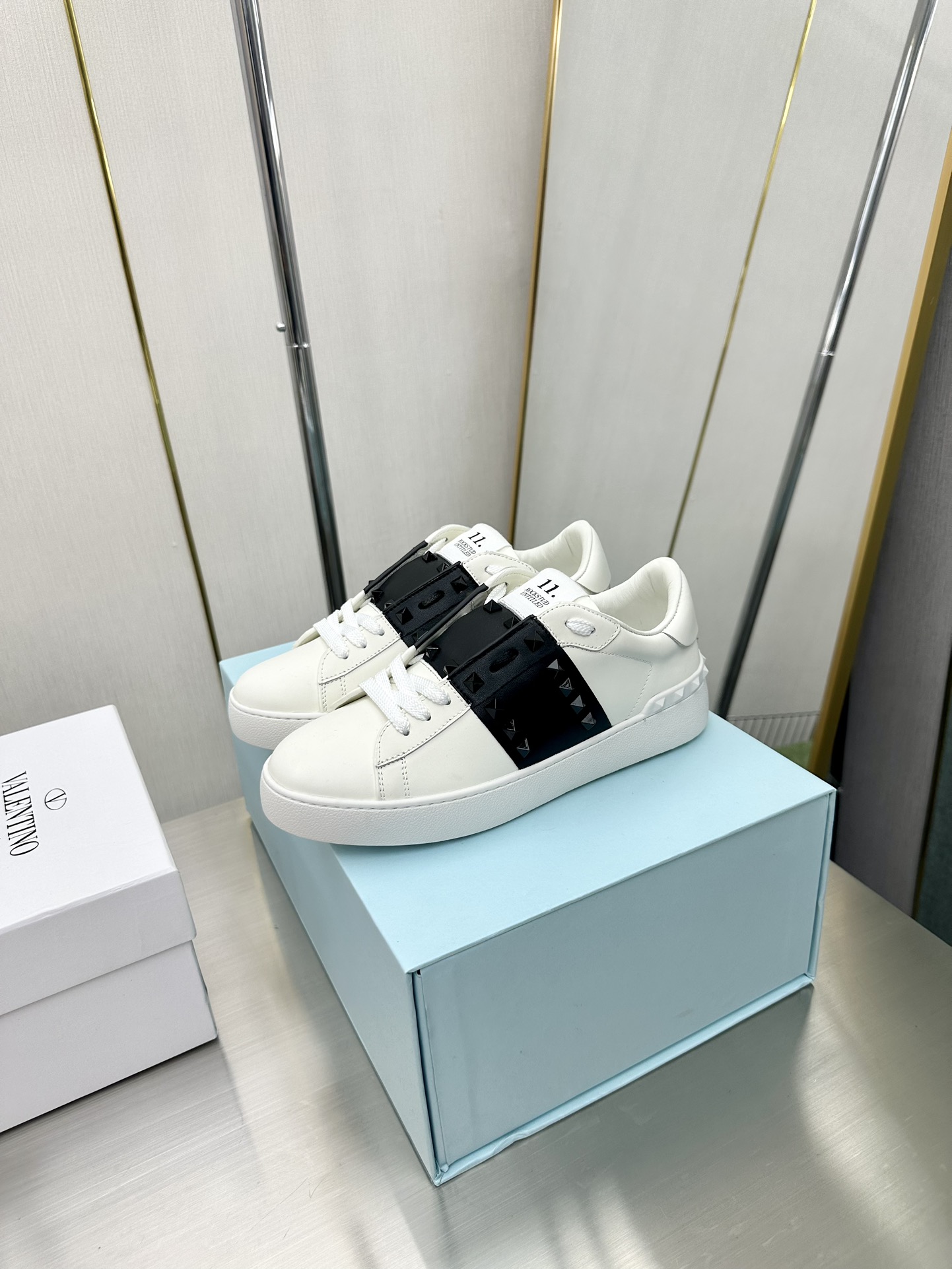 这款鞋子是AAAAA 1:1 质量 (非常棒). 使用了和原版一模一样的材料. 商标部分也保持了和华伦天奴/Valentino一样. 图片拍摄是实物鞋子拍摄, 您所收到的实物保证和我们图片一模一样.