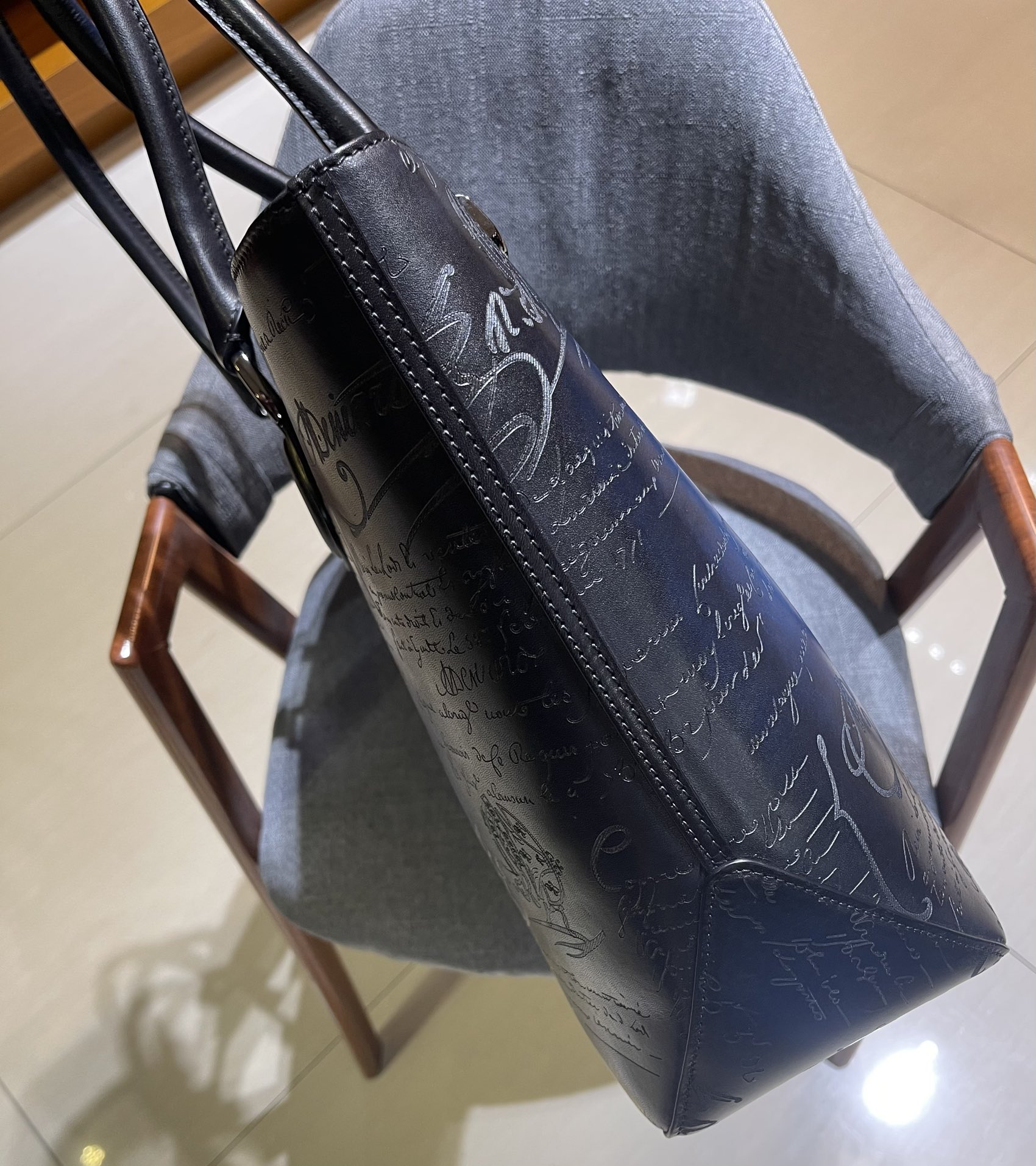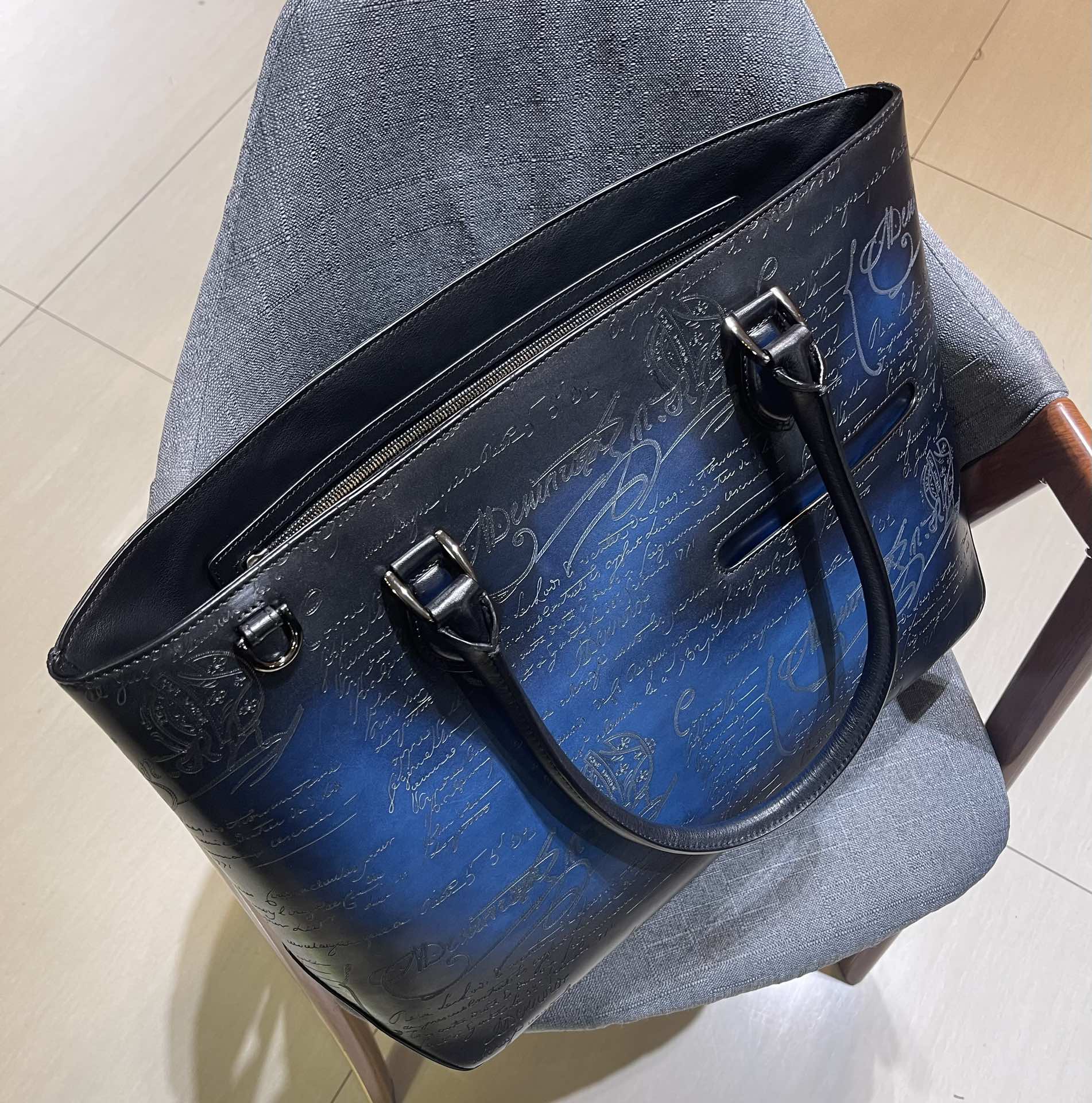这款包包是AAAAA 1:1 质量 (非常棒). 使用了和原版一模一样的材料. 商标部分也保持了和Berluti一样. 图片拍摄是实物包包拍摄, 您所收到的实物保证和我们图片一模一样.