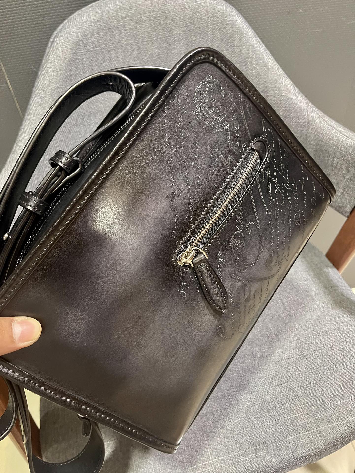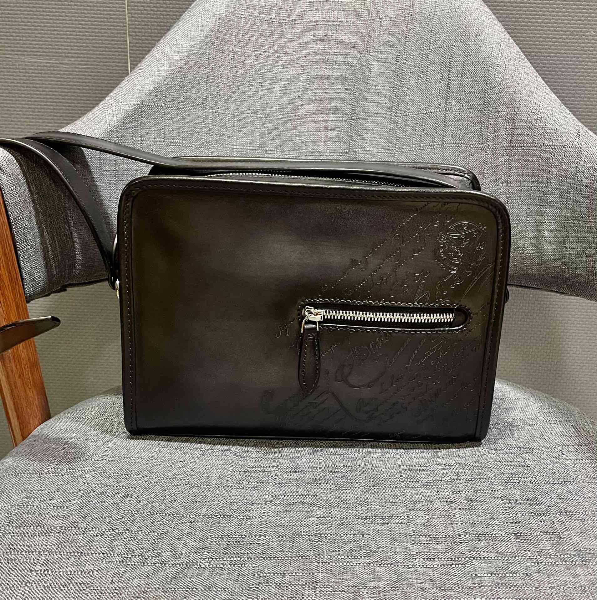 这款包包是AAAAA 1:1 质量 (非常棒). 使用了和原版一模一样的材料. 商标部分也保持了和Berluti一样. 图片拍摄是实物包包拍摄, 您所收到的实物保证和我们图片一模一样.