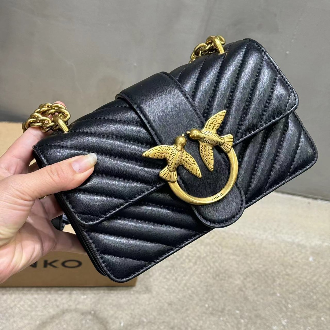 这款包包是AAAAA 1:1 质量 (非常棒). 使用了和原版一模一样的材料. 商标部分也保持了和PINKO一样. 图片拍摄是实物包包拍摄, 您所收到的实物保证和我们图片一模一样.