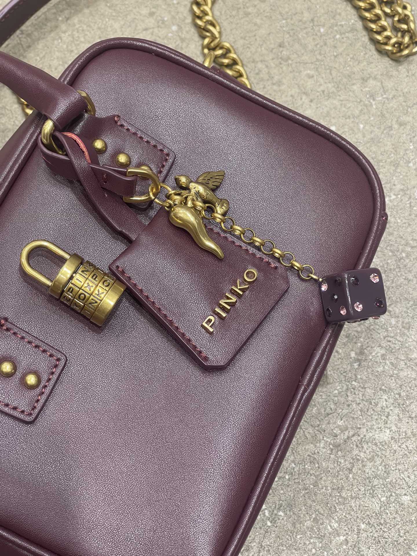 这款包包是AAAAA 1:1 质量 (非常棒). 使用了和原版一模一样的材料. 商标部分也保持了和PINKO一样. 图片拍摄是实物包包拍摄, 您所收到的实物保证和我们图片一模一样.