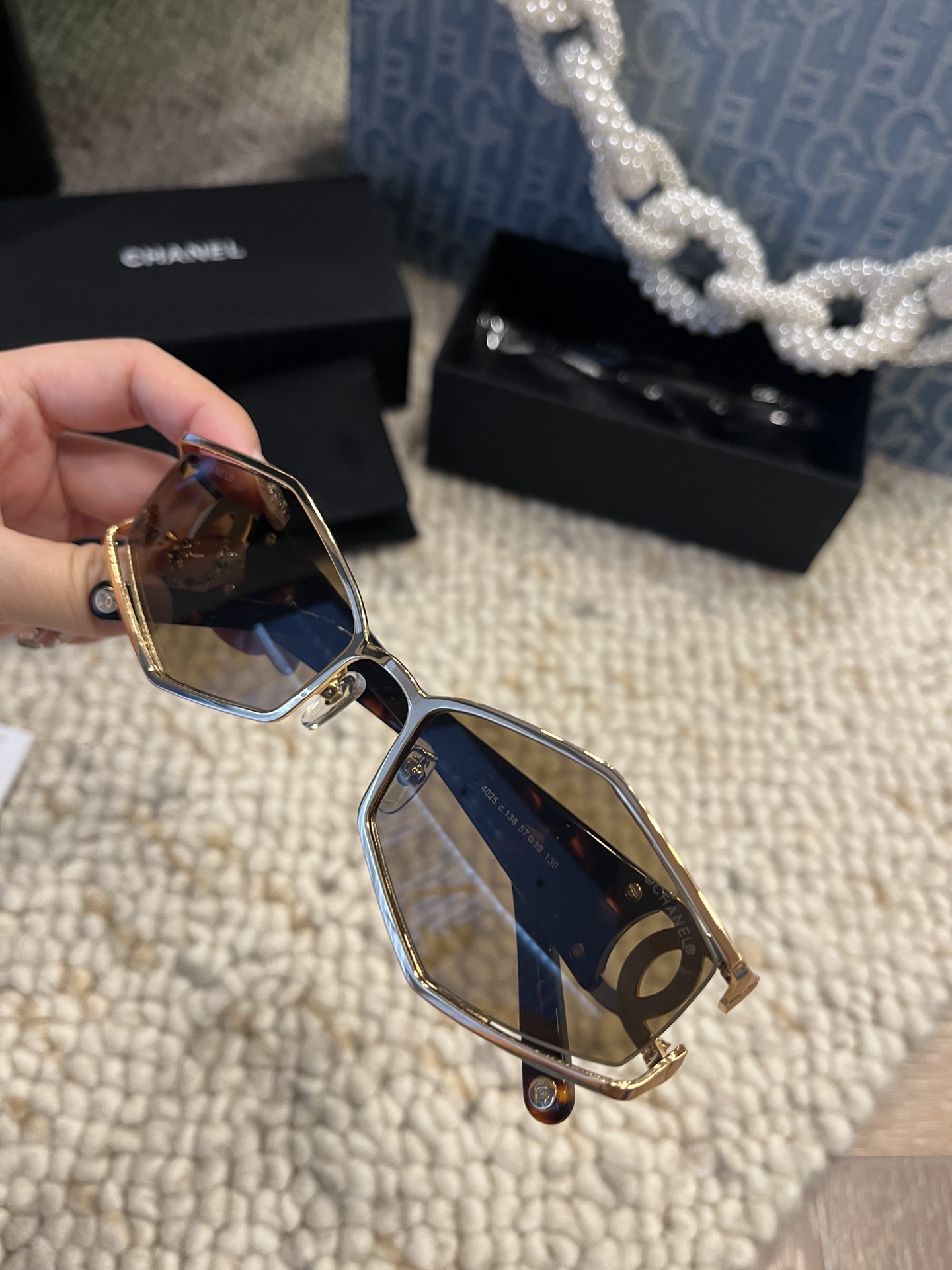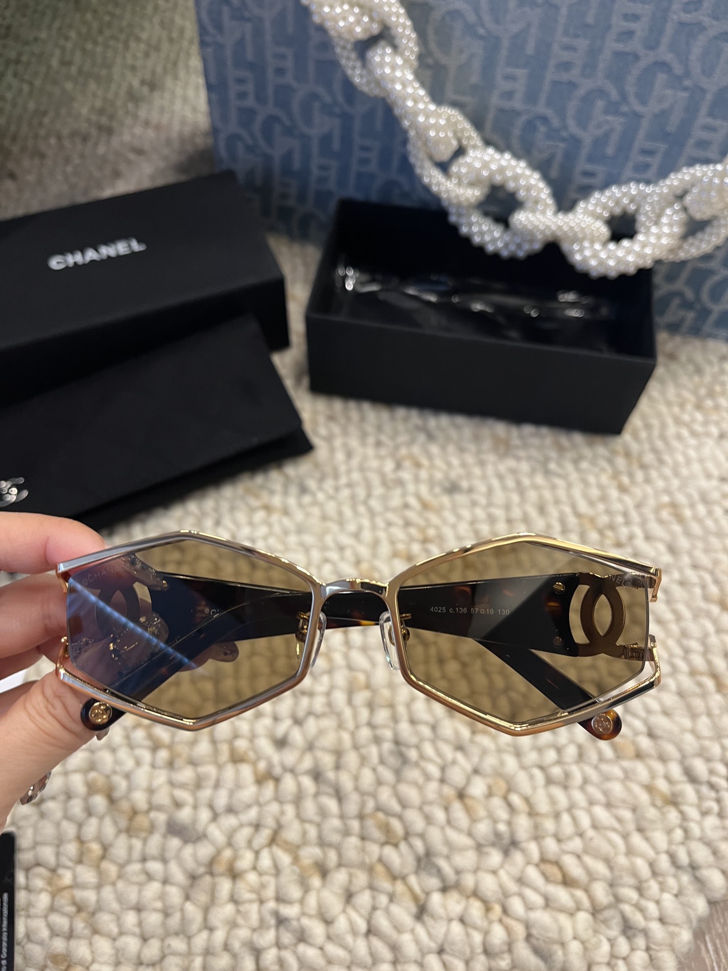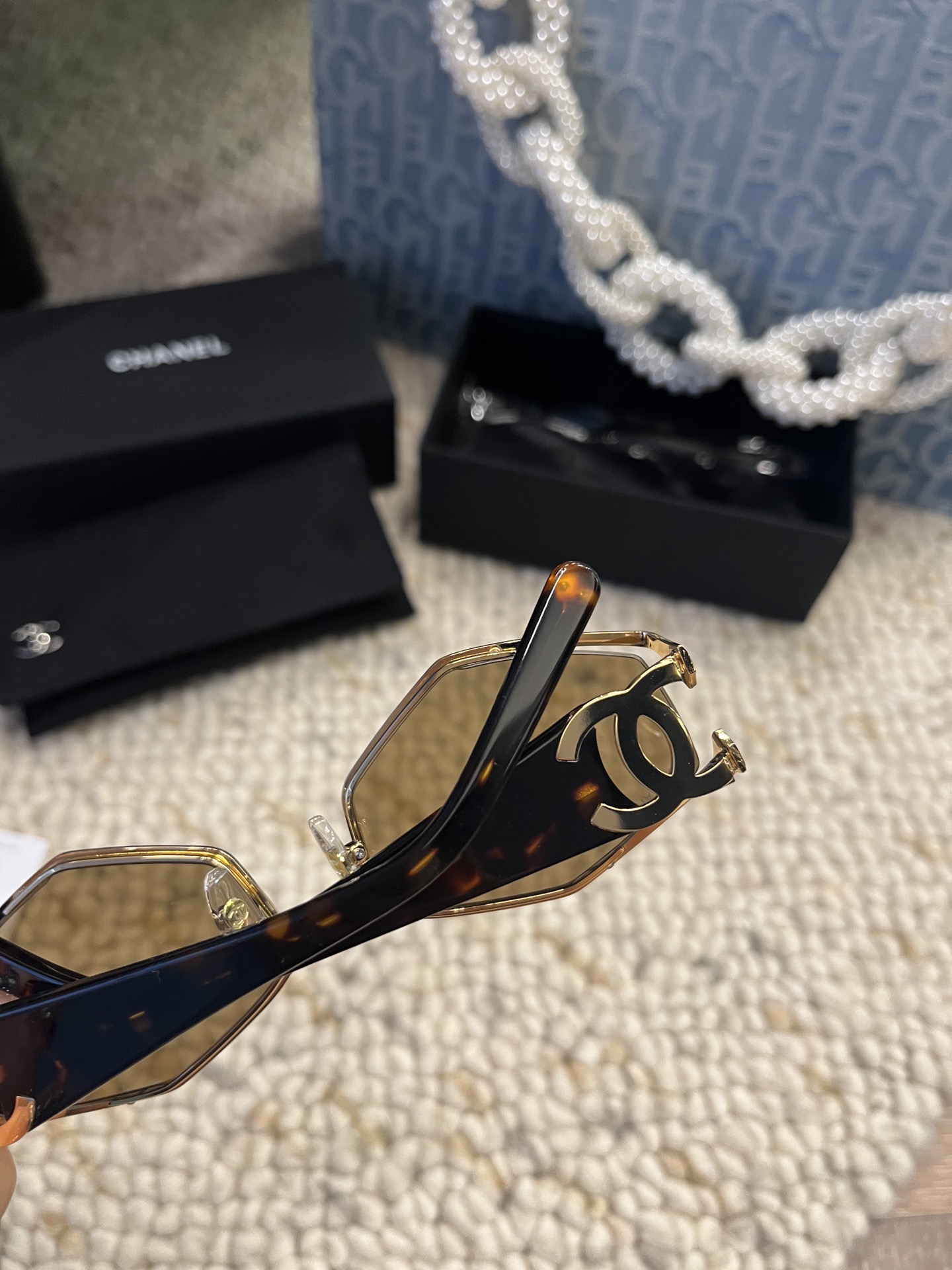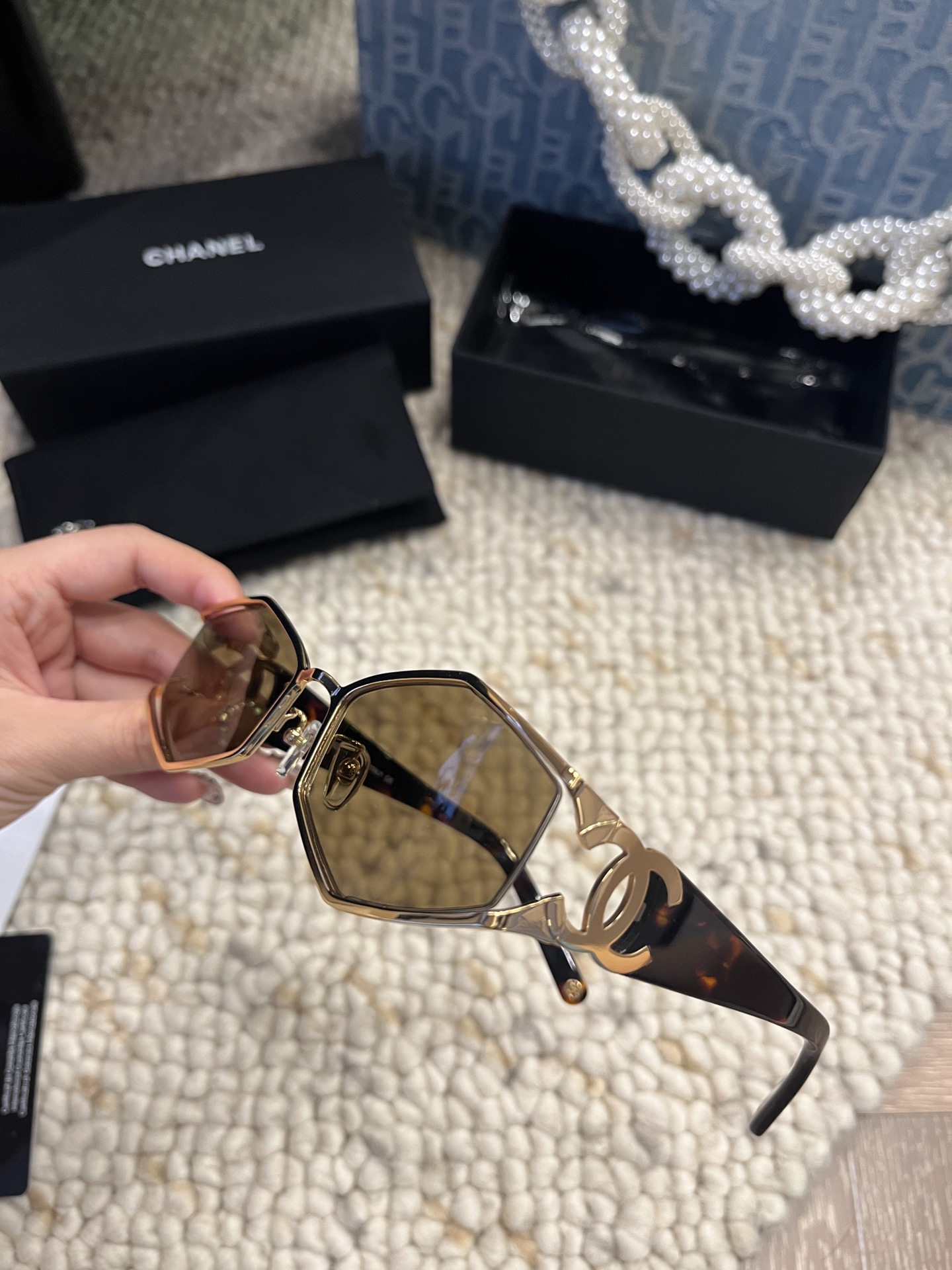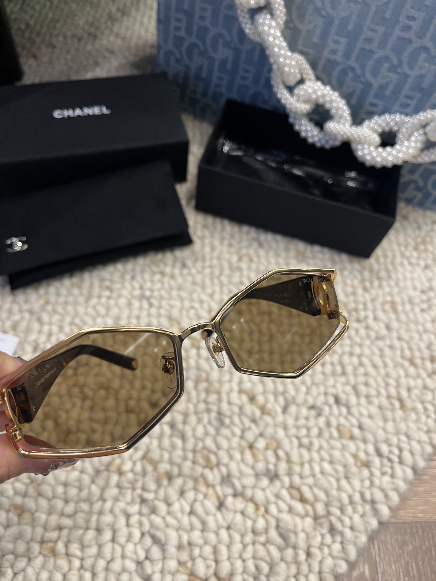 这款太阳眼镜是AAAAA 1:1 质量 (非常棒). 使用了和原版一模一样的材料. 商标部分也保持了和香奈儿/Chanel一样. 图片拍摄是实物太阳眼镜拍摄, 您所收到的实物保证和我们图片一模一样.