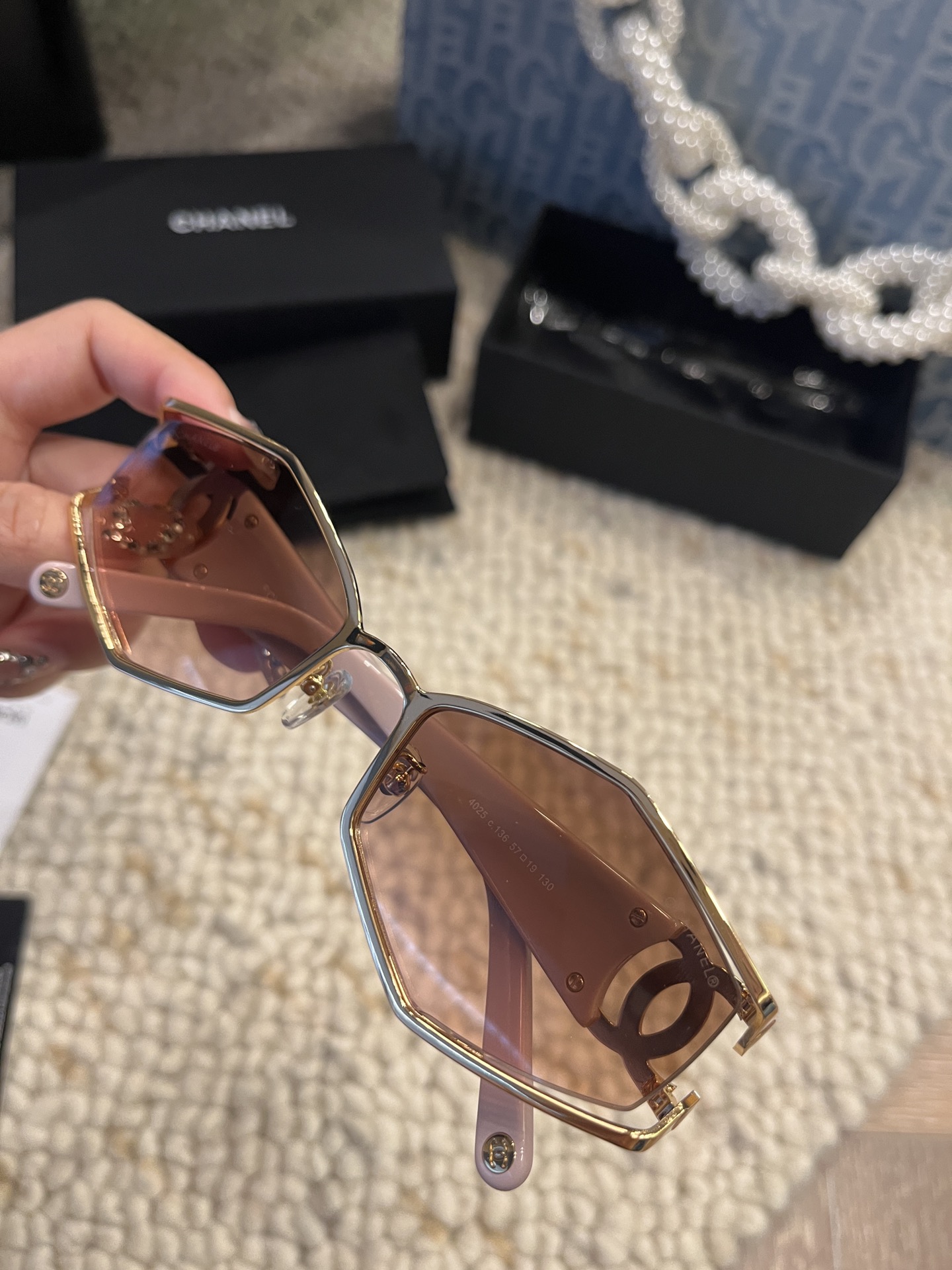 这款太阳眼镜是AAAAA 1:1 质量 (非常棒). 使用了和原版一模一样的材料. 商标部分也保持了和香奈儿/Chanel一样. 图片拍摄是实物太阳眼镜拍摄, 您所收到的实物保证和我们图片一模一样.