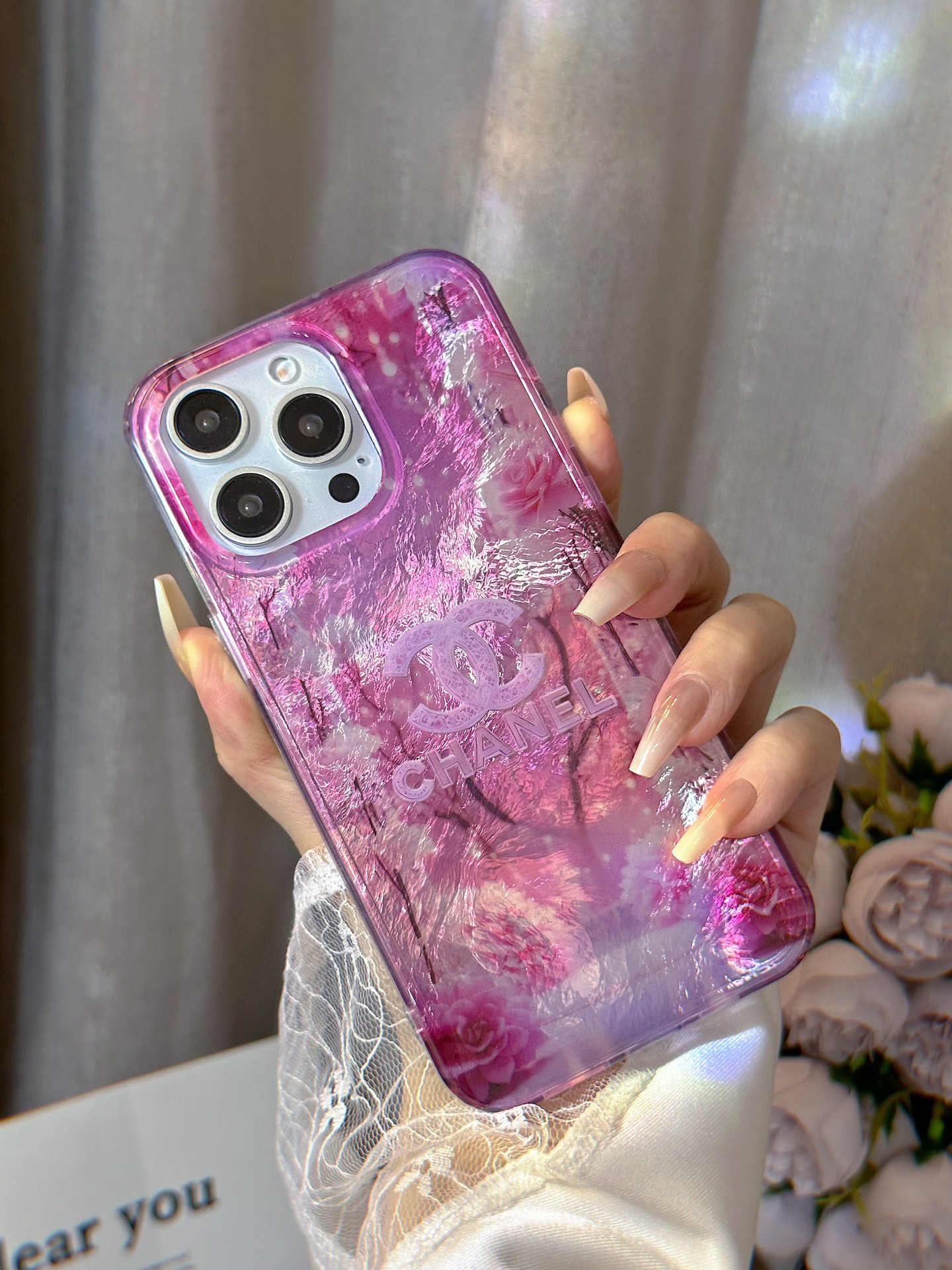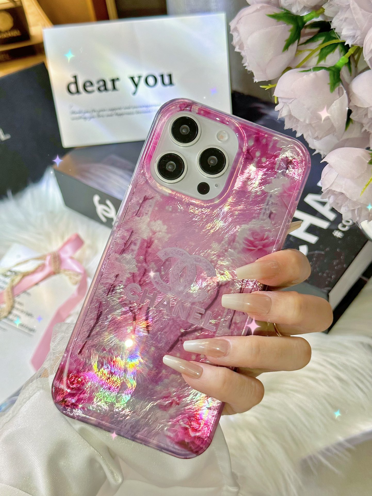 这款手机外壳是AAAAA 1:1 质量 (非常棒). 使用了和原版一模一样的材料. 商标部分也保持了和香奈儿/Chanel一样. 图片拍摄是实物手机外壳拍摄, 您所收到的实物保证和我们图片一模一样.