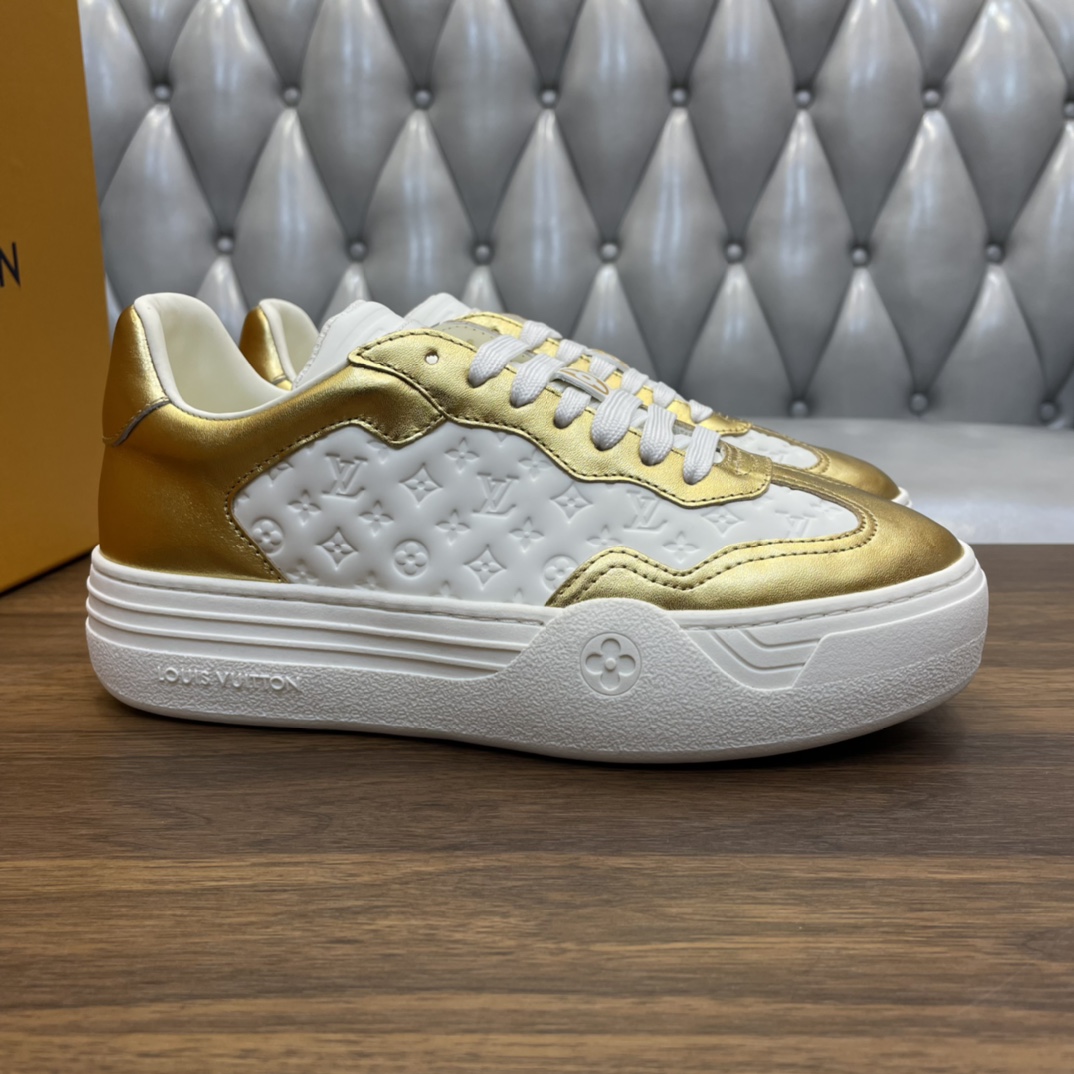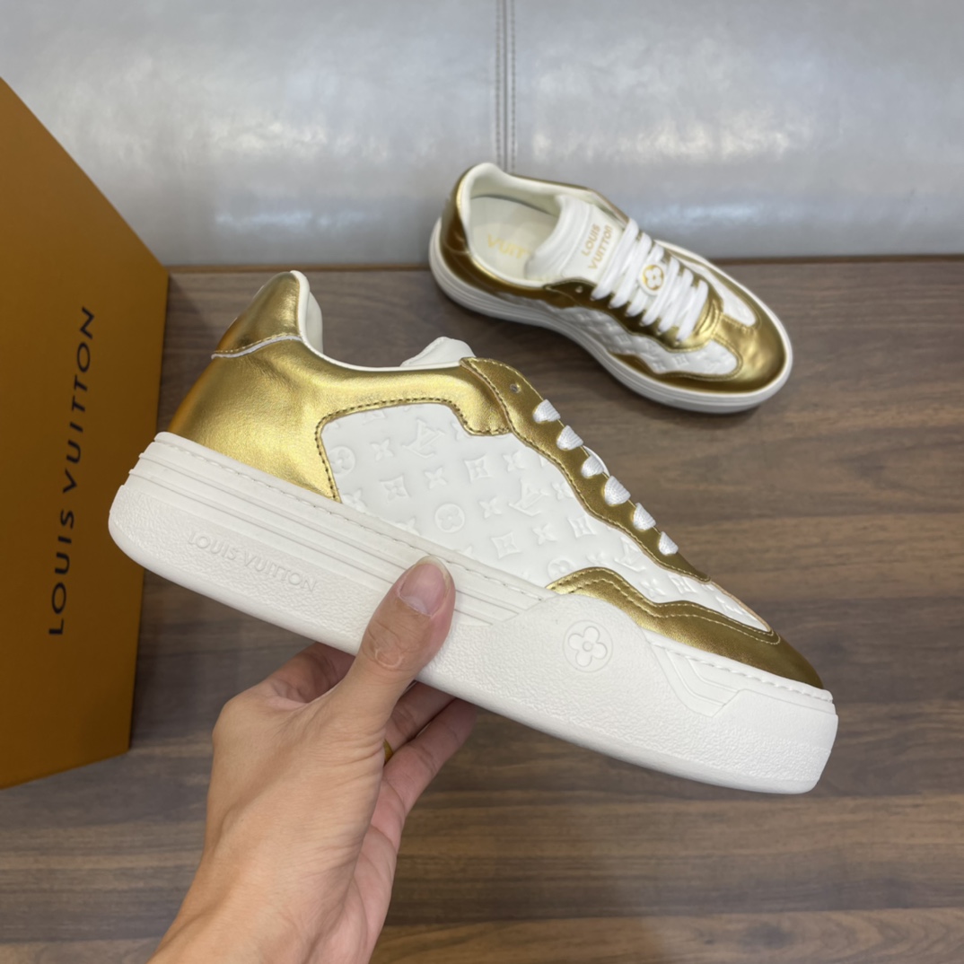 这款鞋子是AAAAA 1:1 质量 (非常棒). 使用了和原版一模一样的材料. 商标部分也保持了和路易威登/Louis Vuitton一样. 图片拍摄是实物鞋子拍摄, 您所收到的实物保证和我们图片一模一样.