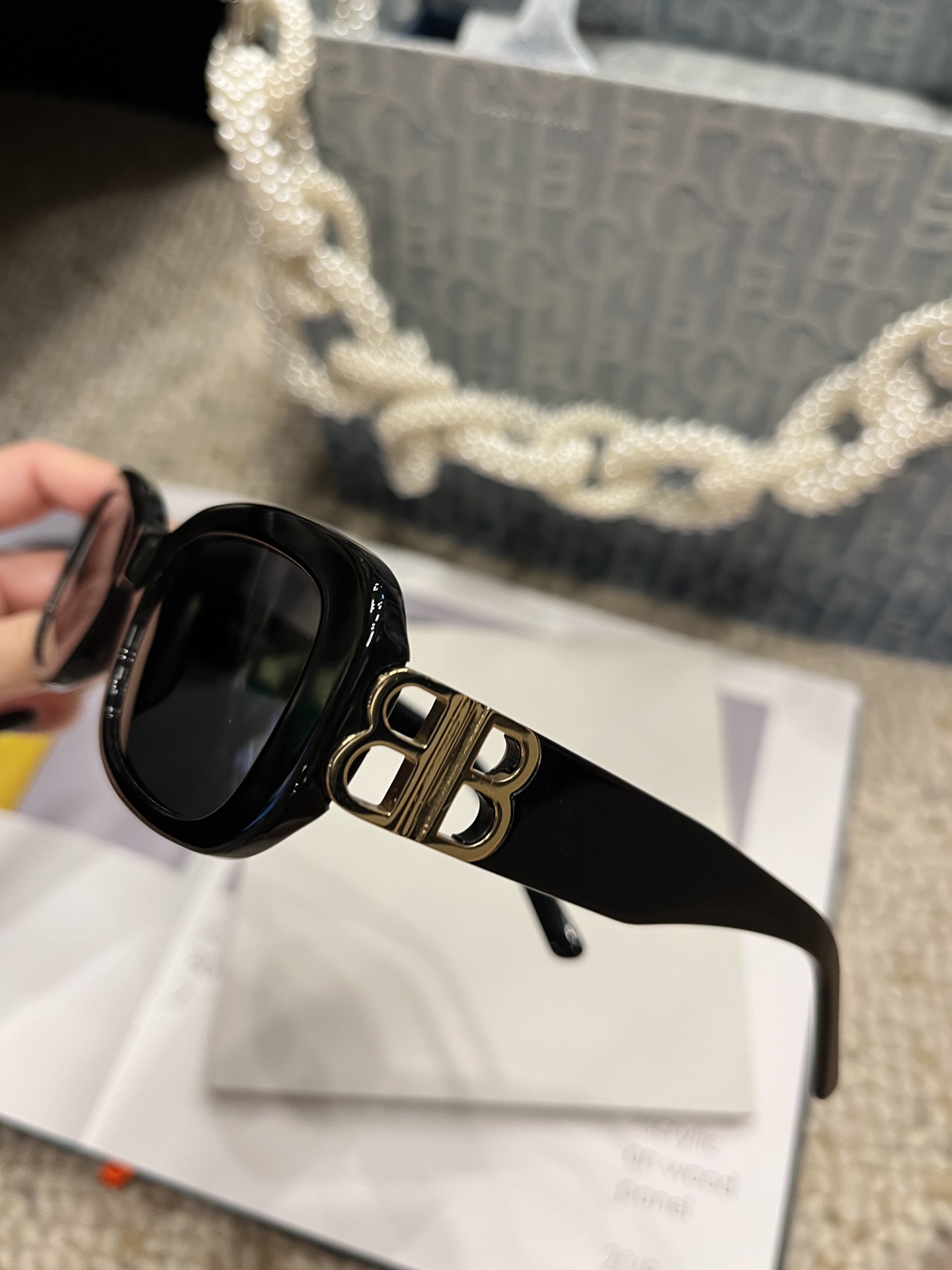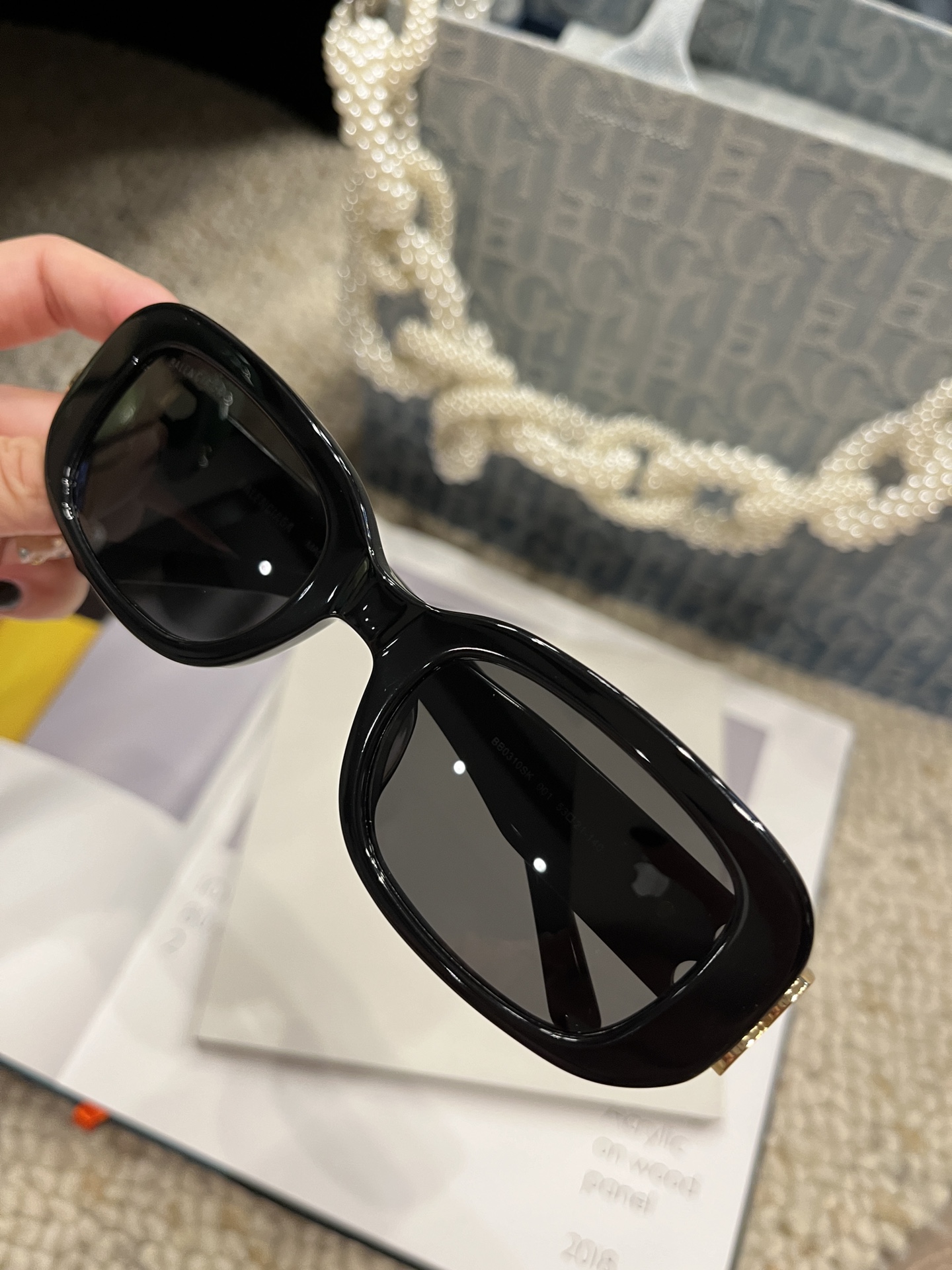 这款太阳眼镜是AAAAA 1:1 质量 (非常棒). 使用了和原版一模一样的材料. 商标部分也保持了和一样. 图片拍摄是实物太阳眼镜拍摄, 您所收到的实物保证和我们图片一模一样.