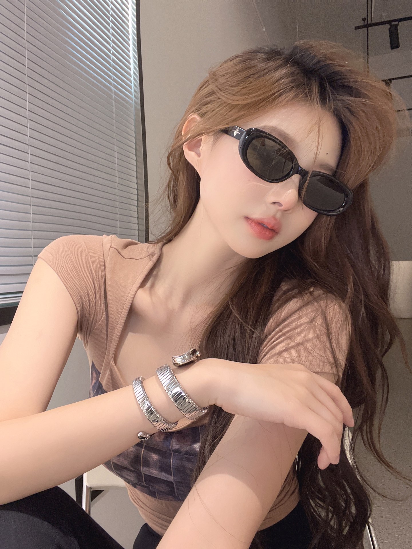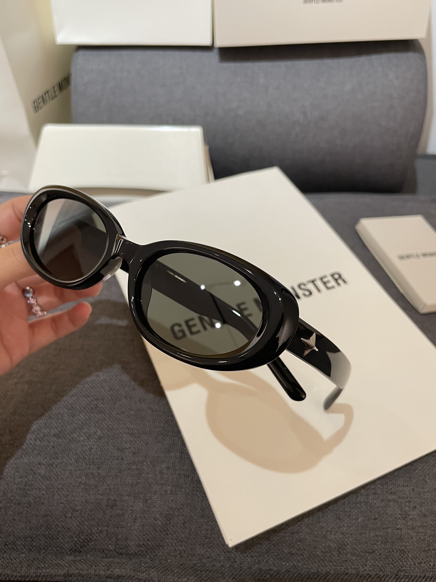这款太阳眼镜是AAAAA 1:1 质量 (非常棒). 使用了和原版一模一样的材料. 商标部分也保持了和JENNIE一样. 图片拍摄是实物太阳眼镜拍摄, 您所收到的实物保证和我们图片一模一样.