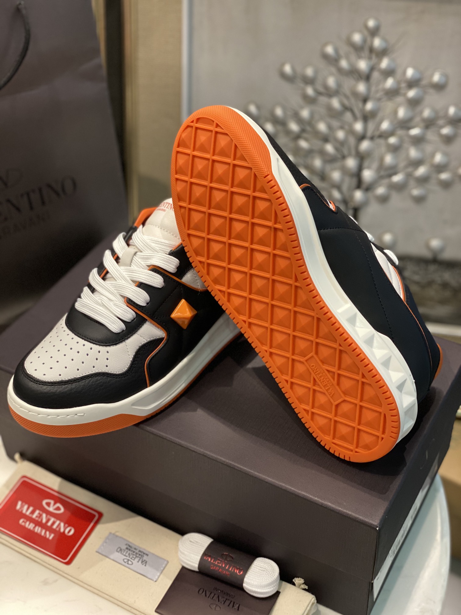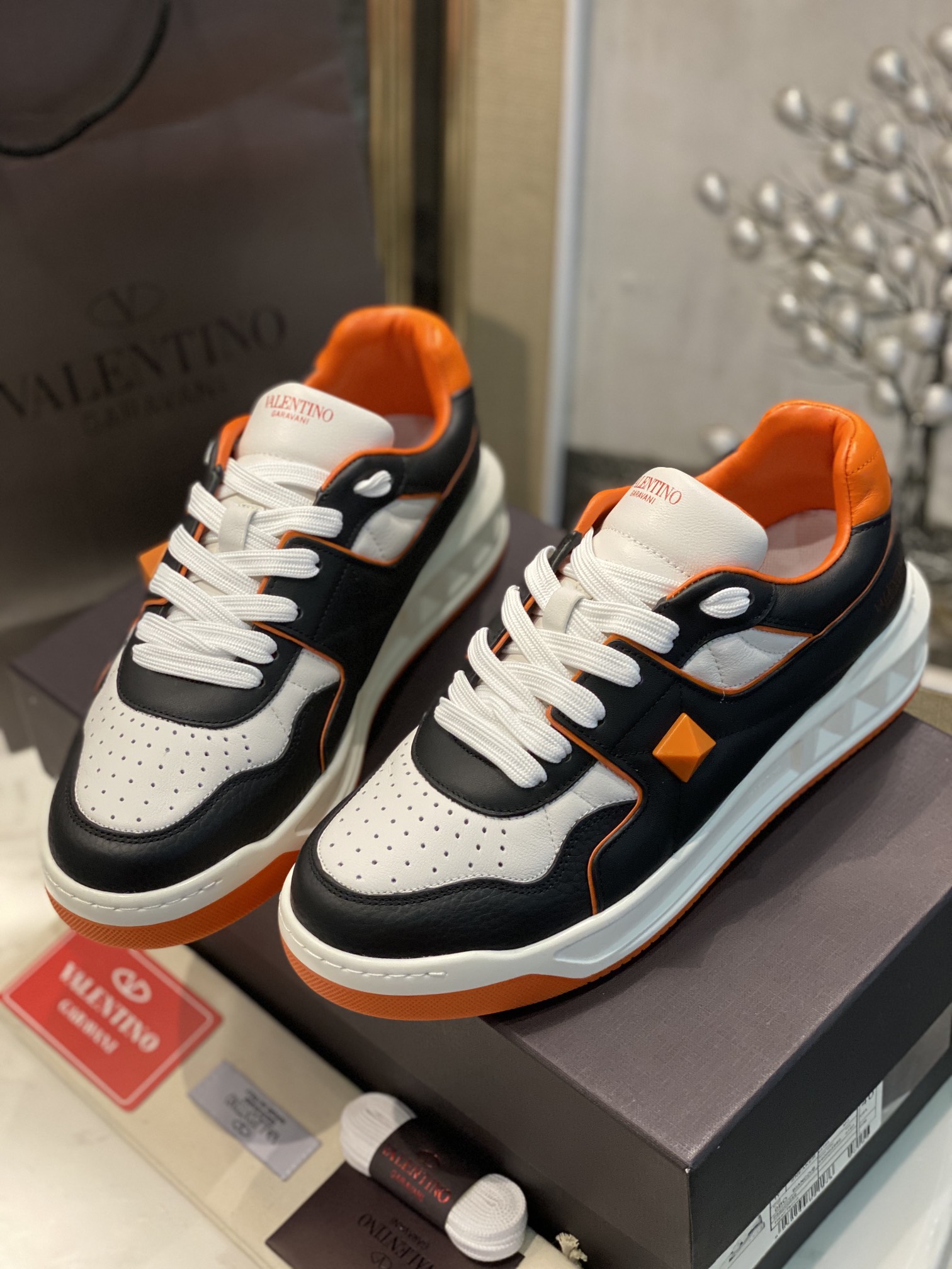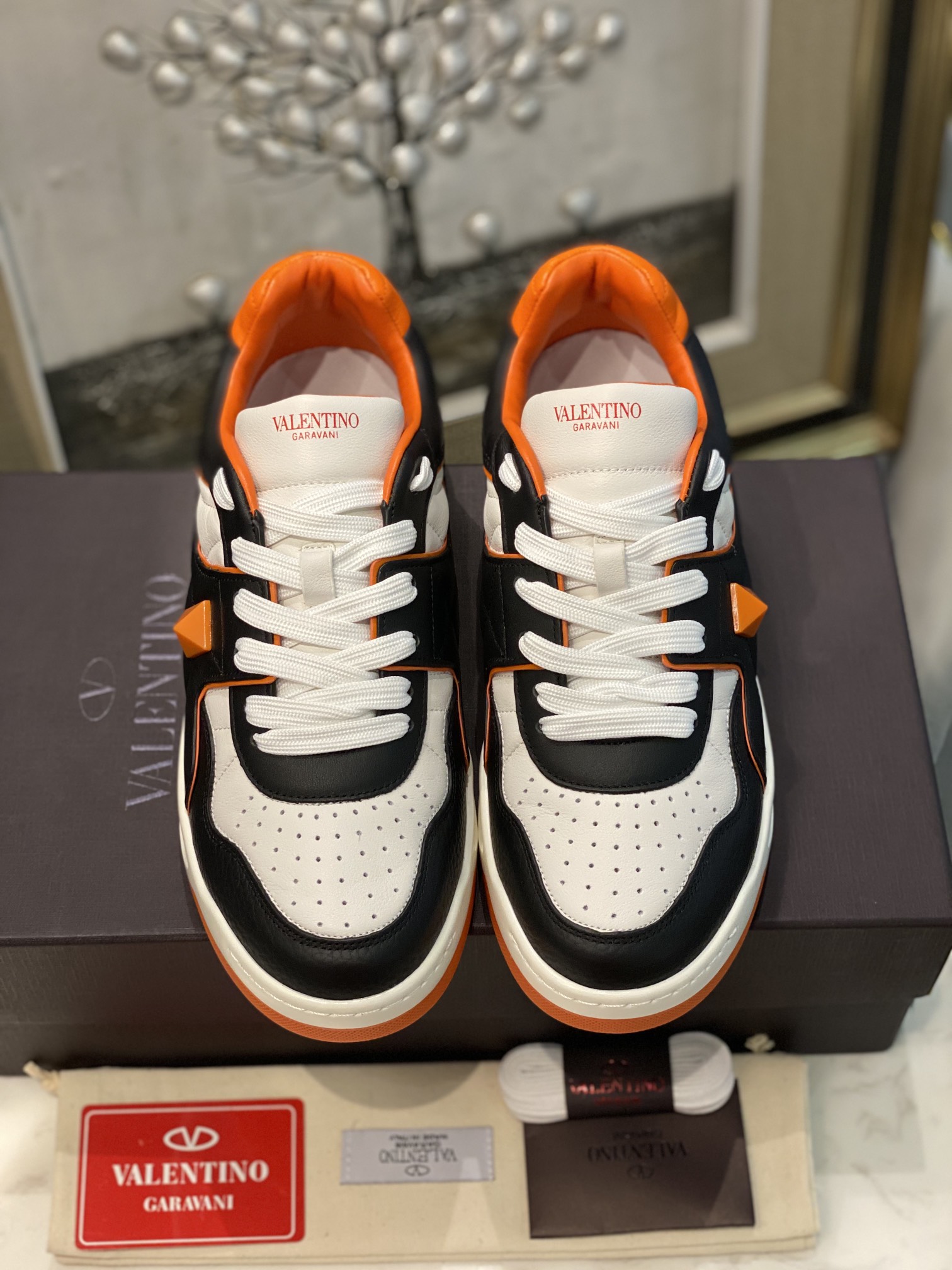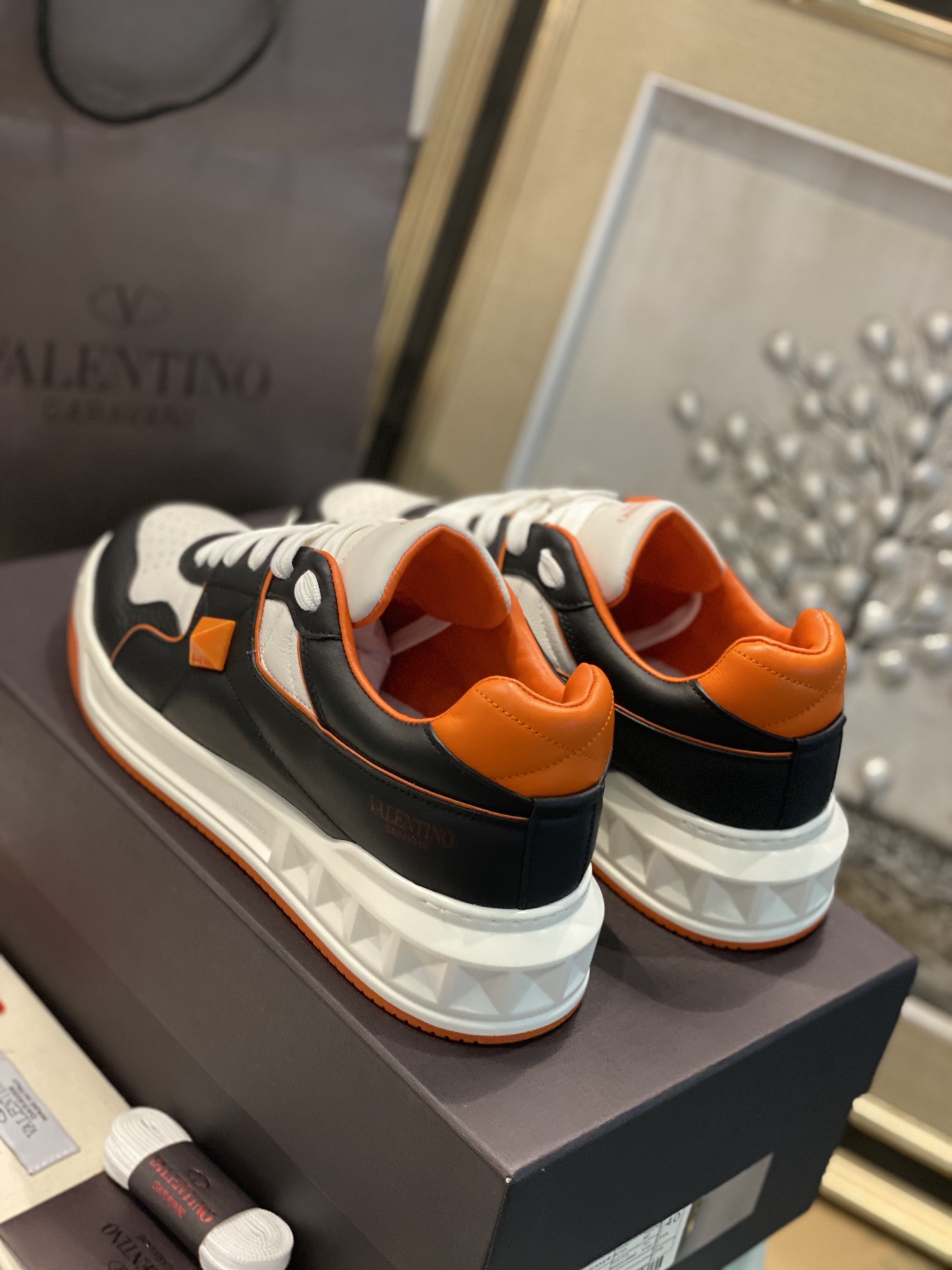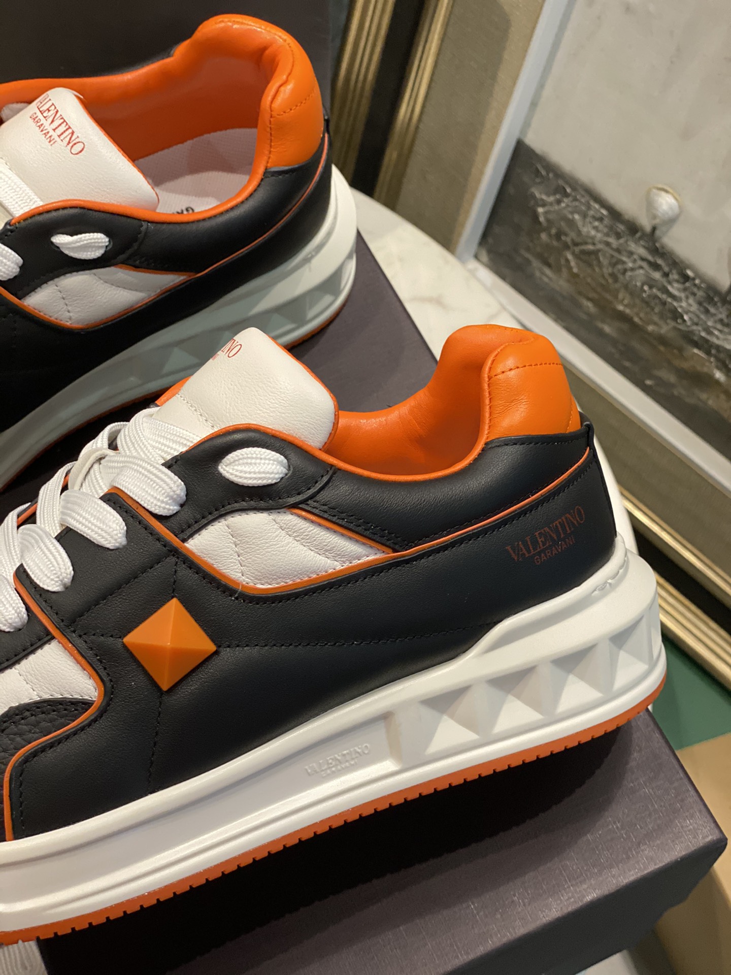 这款鞋子是AAAAA 1:1 质量 (非常棒). 使用了和原版一模一样的材料. 商标部分也保持了和华伦天奴/Valentino一样. 图片拍摄是实物鞋子拍摄, 您所收到的实物保证和我们图片一模一样.