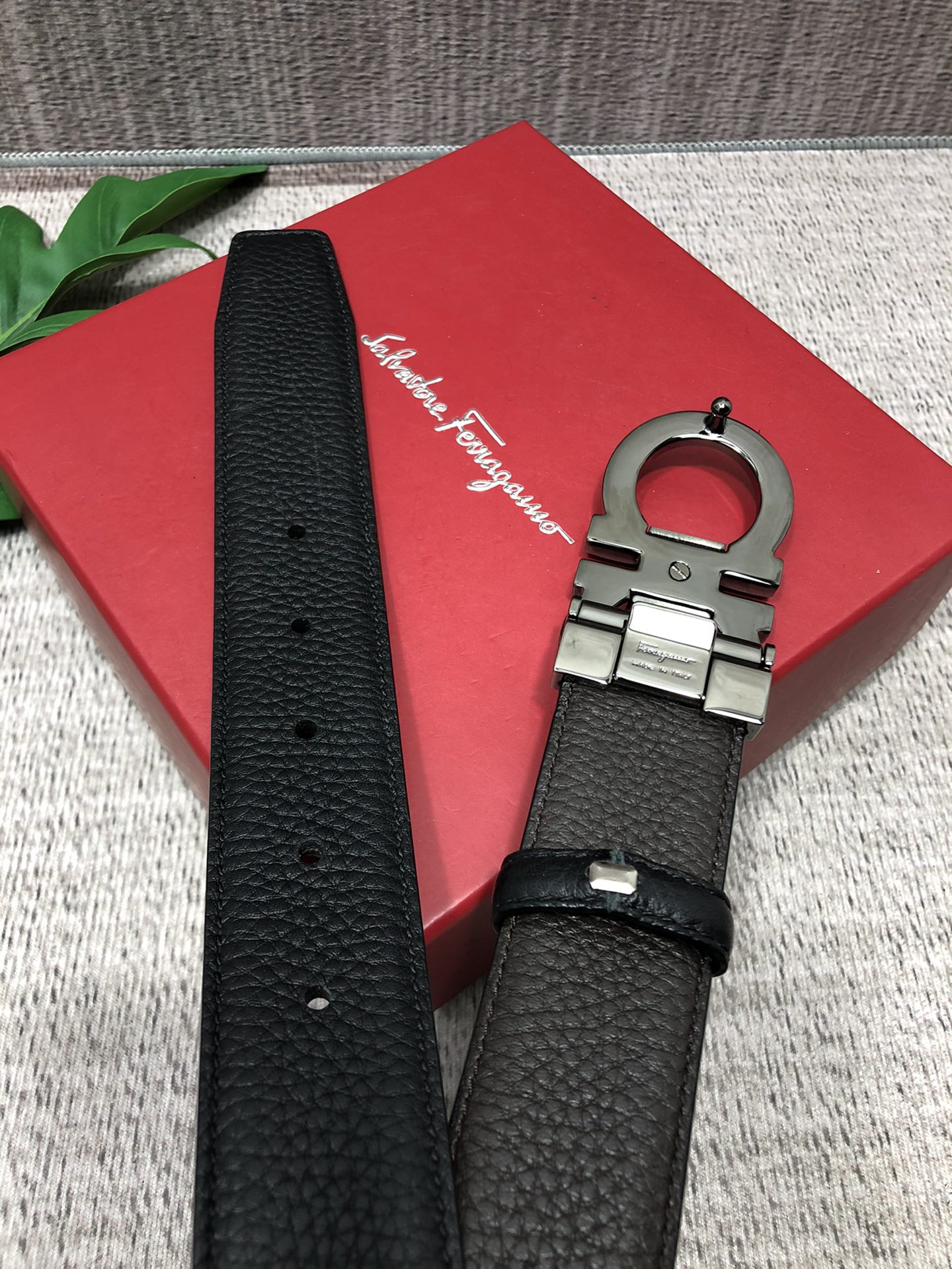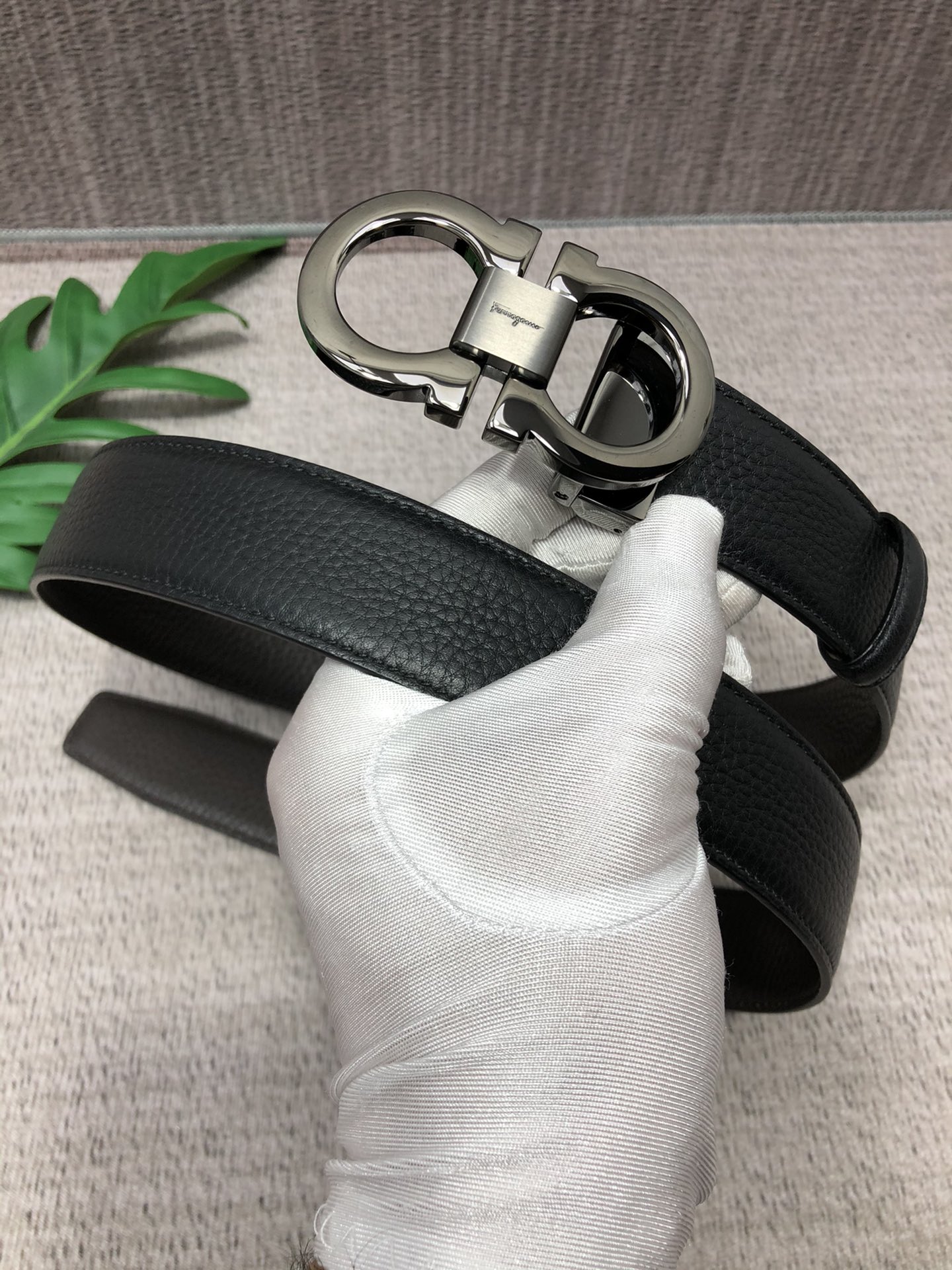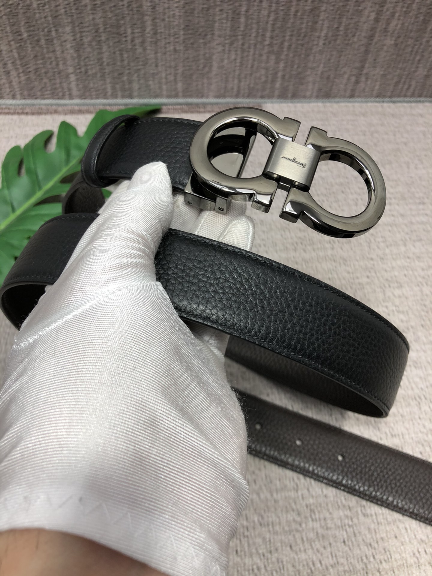 这款皮带是AAAAA 1:1 质量 (非常棒). 使用了和原版一模一样的材料. 商标部分也保持了和菲拉格慕/Salvatore Ferragamo一样. 图片拍摄是实物皮带拍摄, 您所收到的实物保证和我们图片一模一样.