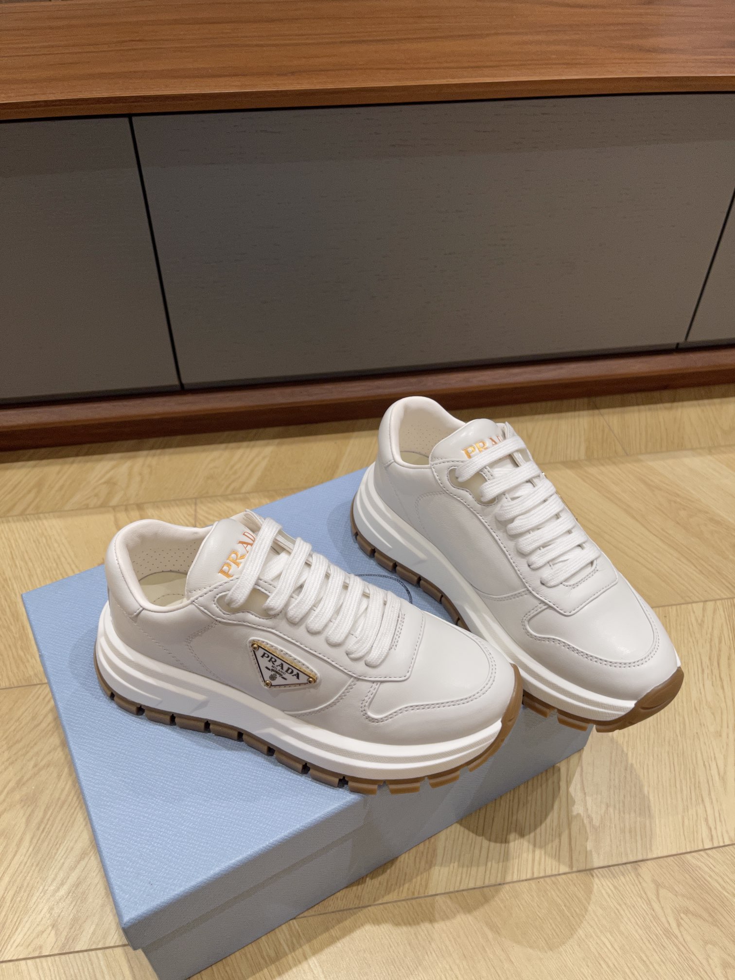 这款鞋子是AAAAA 1:1 质量 (非常棒). 使用了和原版一模一样的材料. 商标部分也保持了和普拉达/Prada一样. 图片拍摄是实物鞋子拍摄, 您所收到的实物保证和我们图片一模一样.