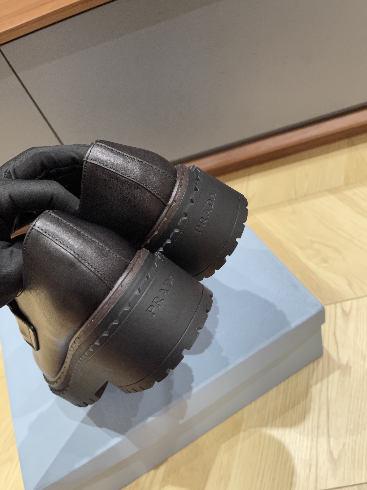 这款鞋子是AAAAA 1:1 质量 (非常棒). 使用了和原版一模一样的材料. 商标部分也保持了和普拉达/Prada一样. 图片拍摄是实物鞋子拍摄, 您所收到的实物保证和我们图片一模一样.