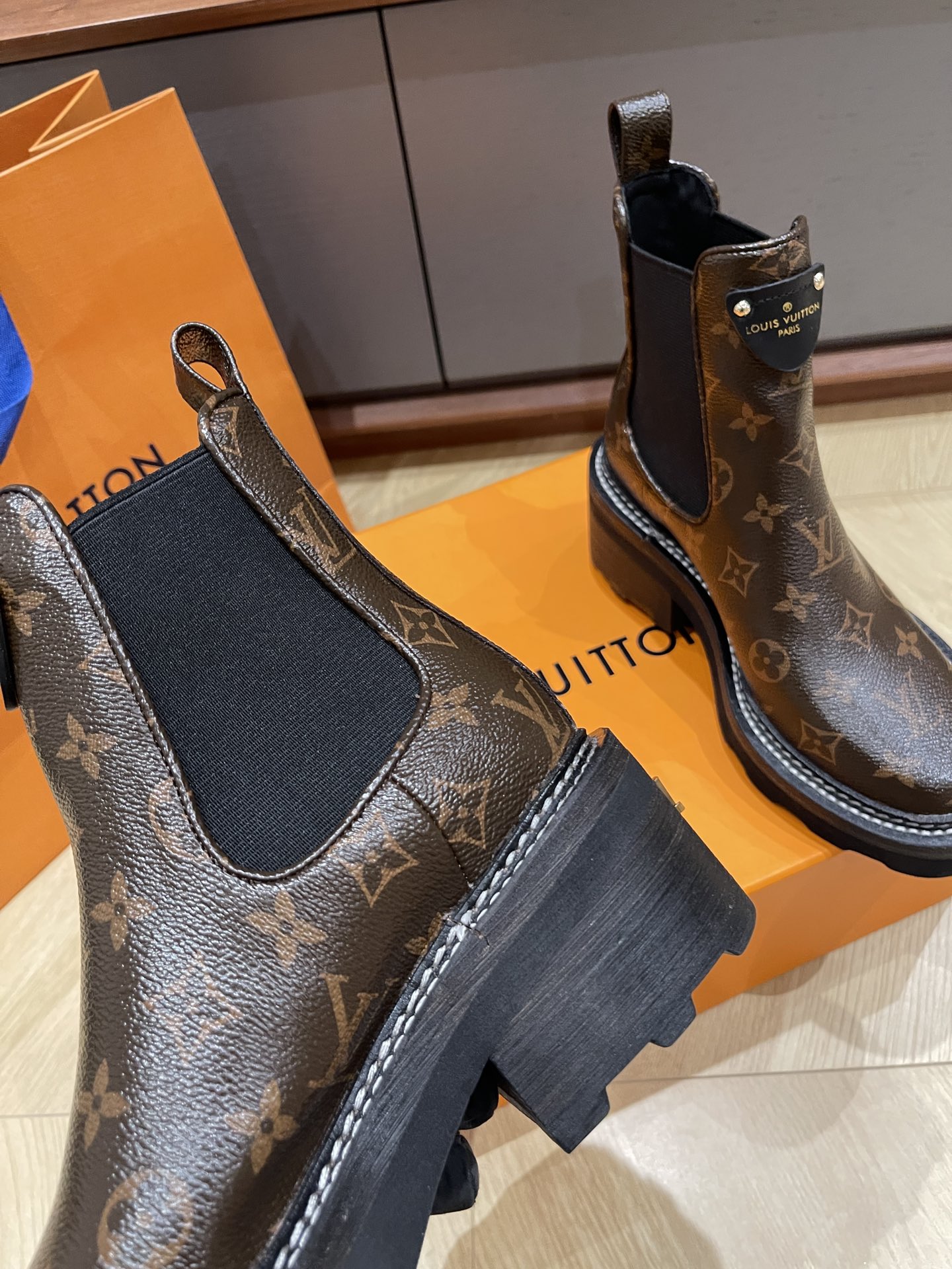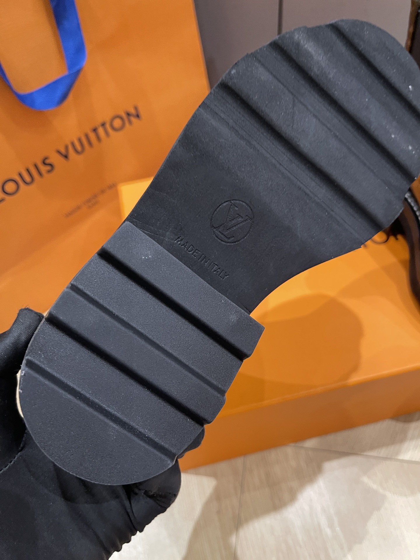 这款鞋子是AAAAA 1:1 质量 (非常棒). 使用了和原版一模一样的材料. 商标部分也保持了和路易威登/Louis Vuitton一样. 图片拍摄是实物鞋子拍摄, 您所收到的实物保证和我们图片一模一样.