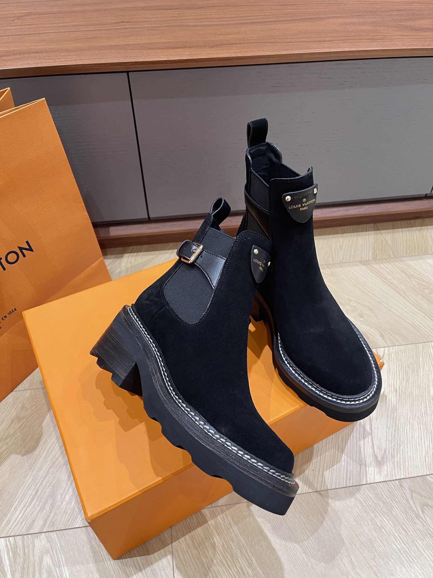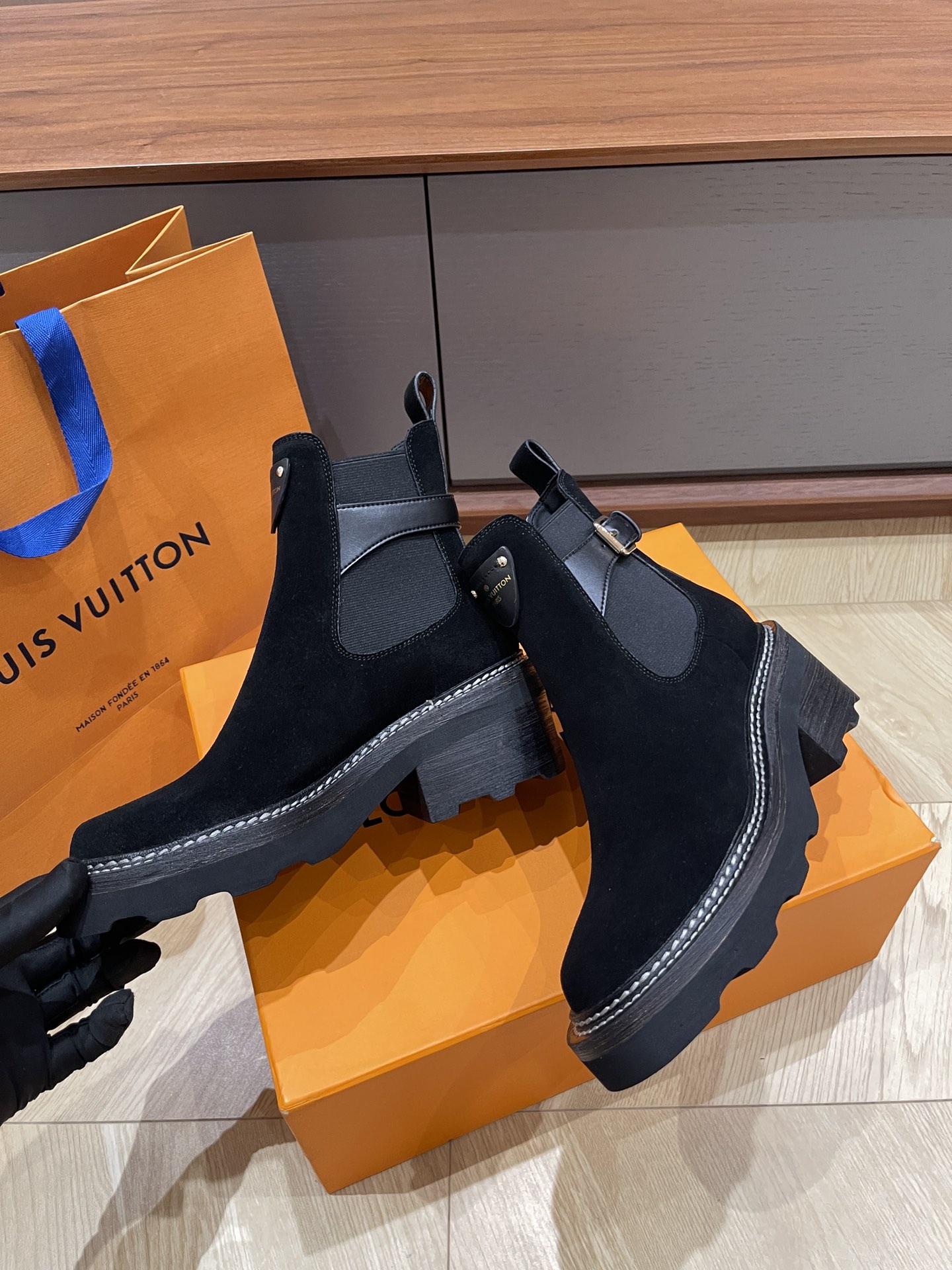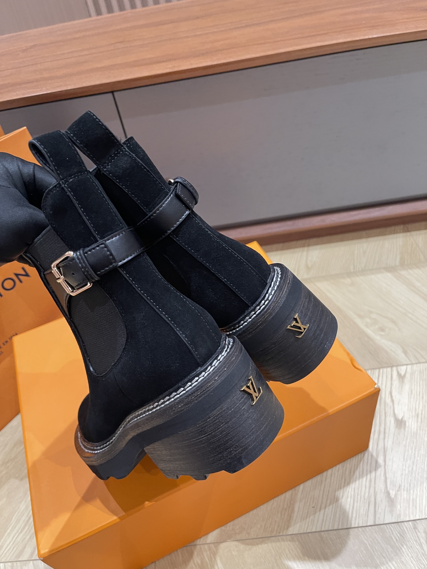 这款鞋子是AAAAA 1:1 质量 (非常棒). 使用了和原版一模一样的材料. 商标部分也保持了和路易威登/Louis Vuitton一样. 图片拍摄是实物鞋子拍摄, 您所收到的实物保证和我们图片一模一样.