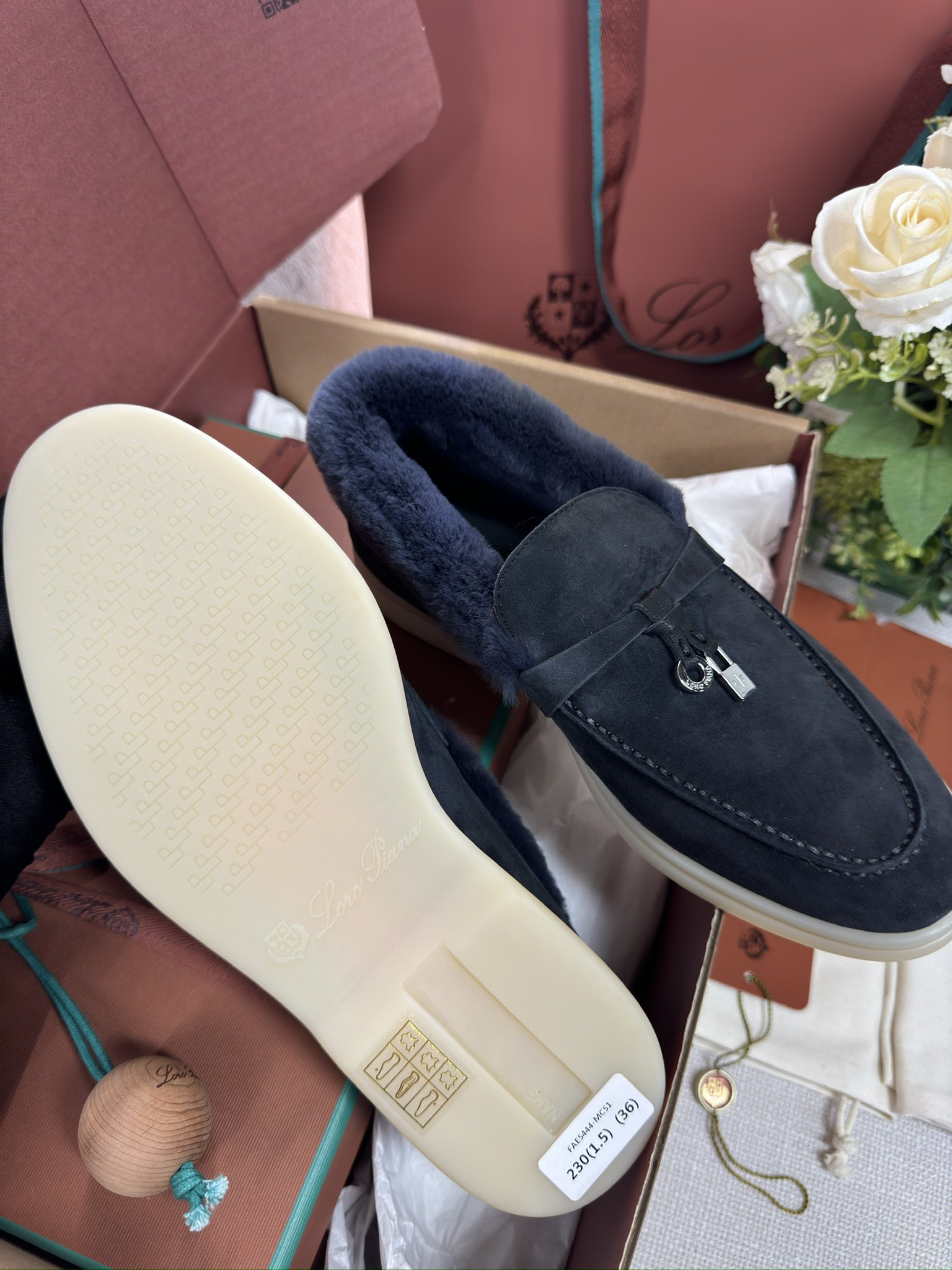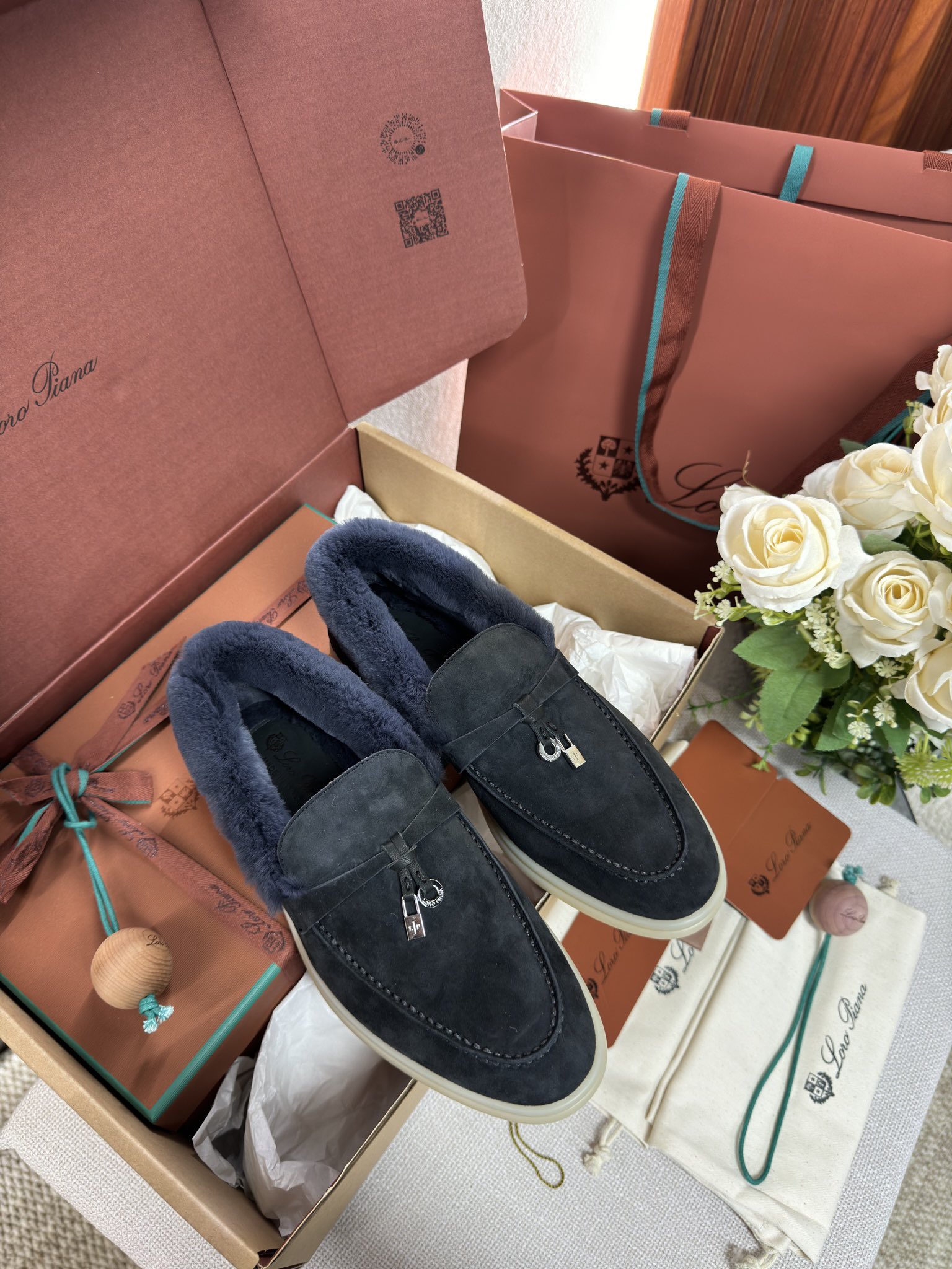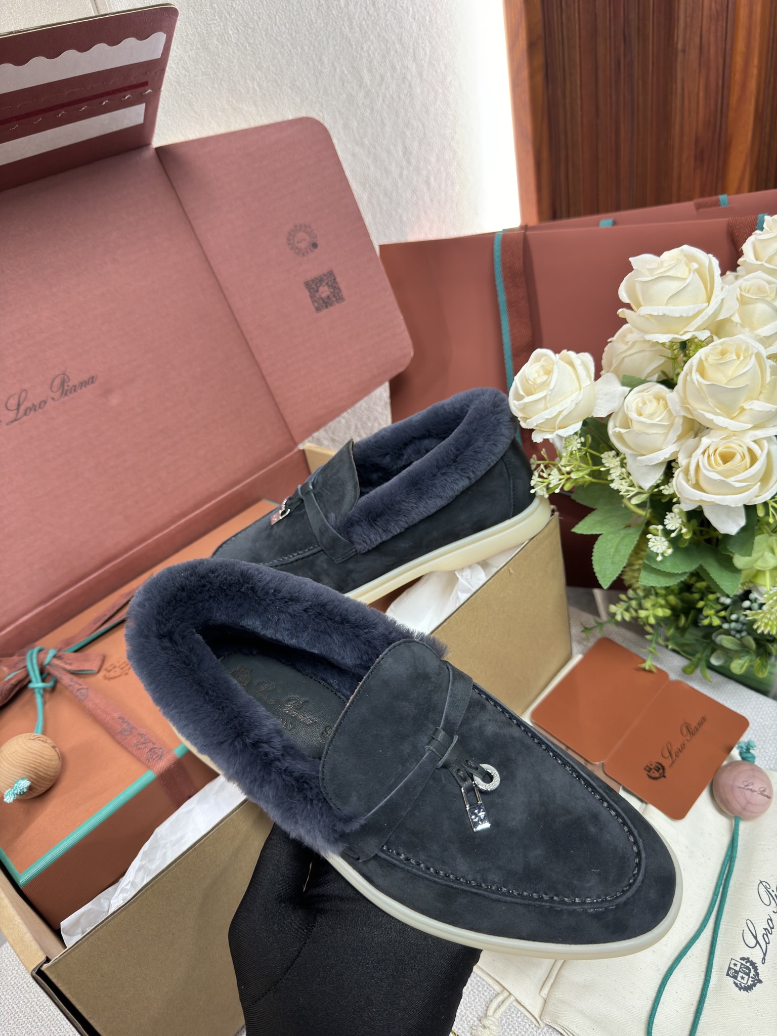 这款鞋子是AAAAA 1:1 质量 (非常棒). 使用了和原版一模一样的材料. 商标部分也保持了和洛罗皮亚纳/Loro Piana一样. 图片拍摄是实物鞋子拍摄, 您所收到的实物保证和我们图片一模一样.