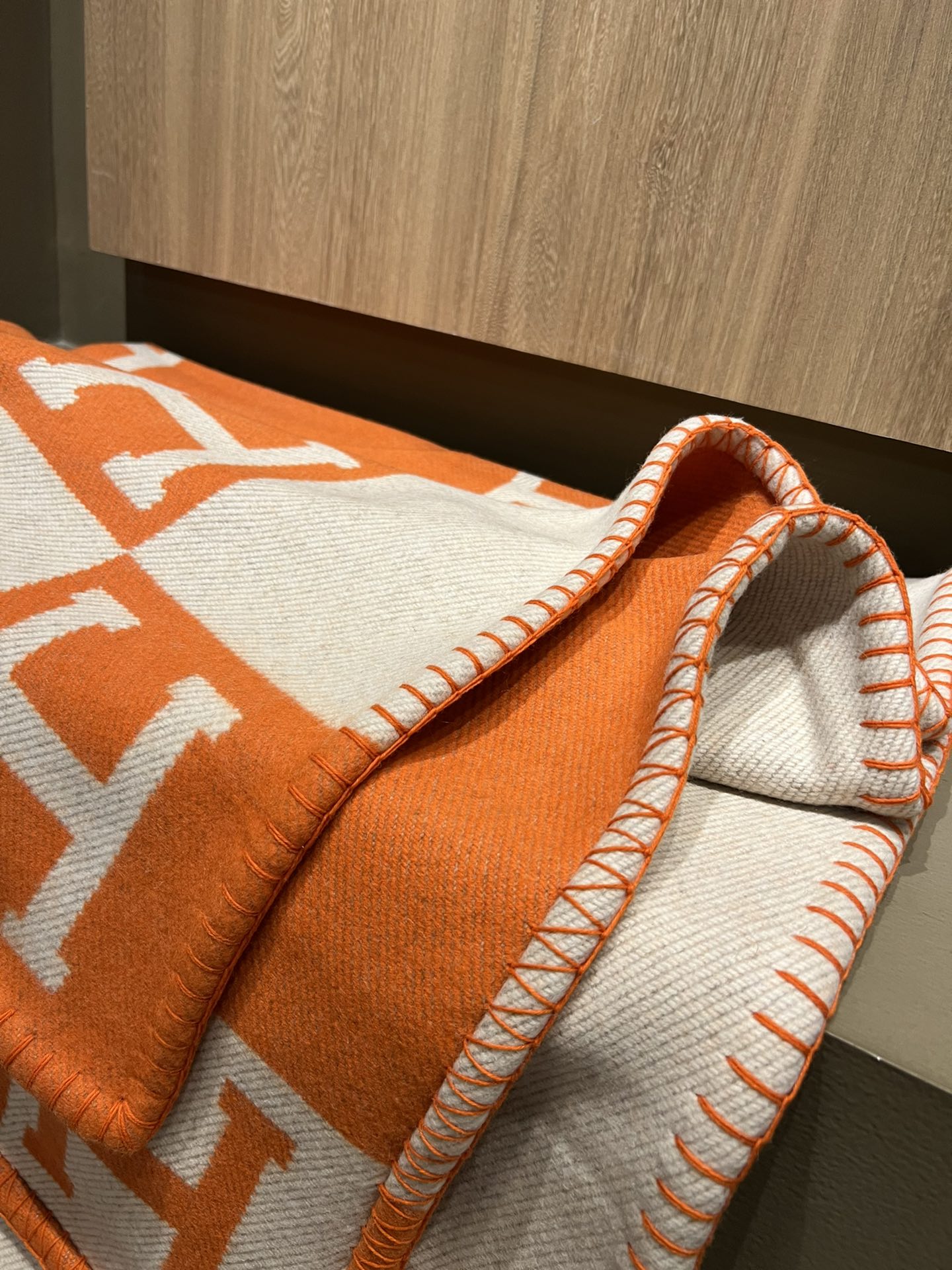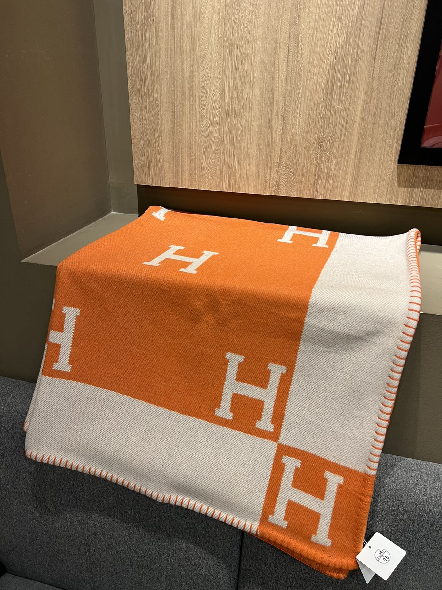 这款毯是AAAAA 1:1 质量 (非常棒). 使用了和原版一模一样的材料. 商标部分也保持了和爱马仕/Hermes一样. 图片拍摄是实物毯拍摄, 您所收到的实物保证和我们图片一模一样.