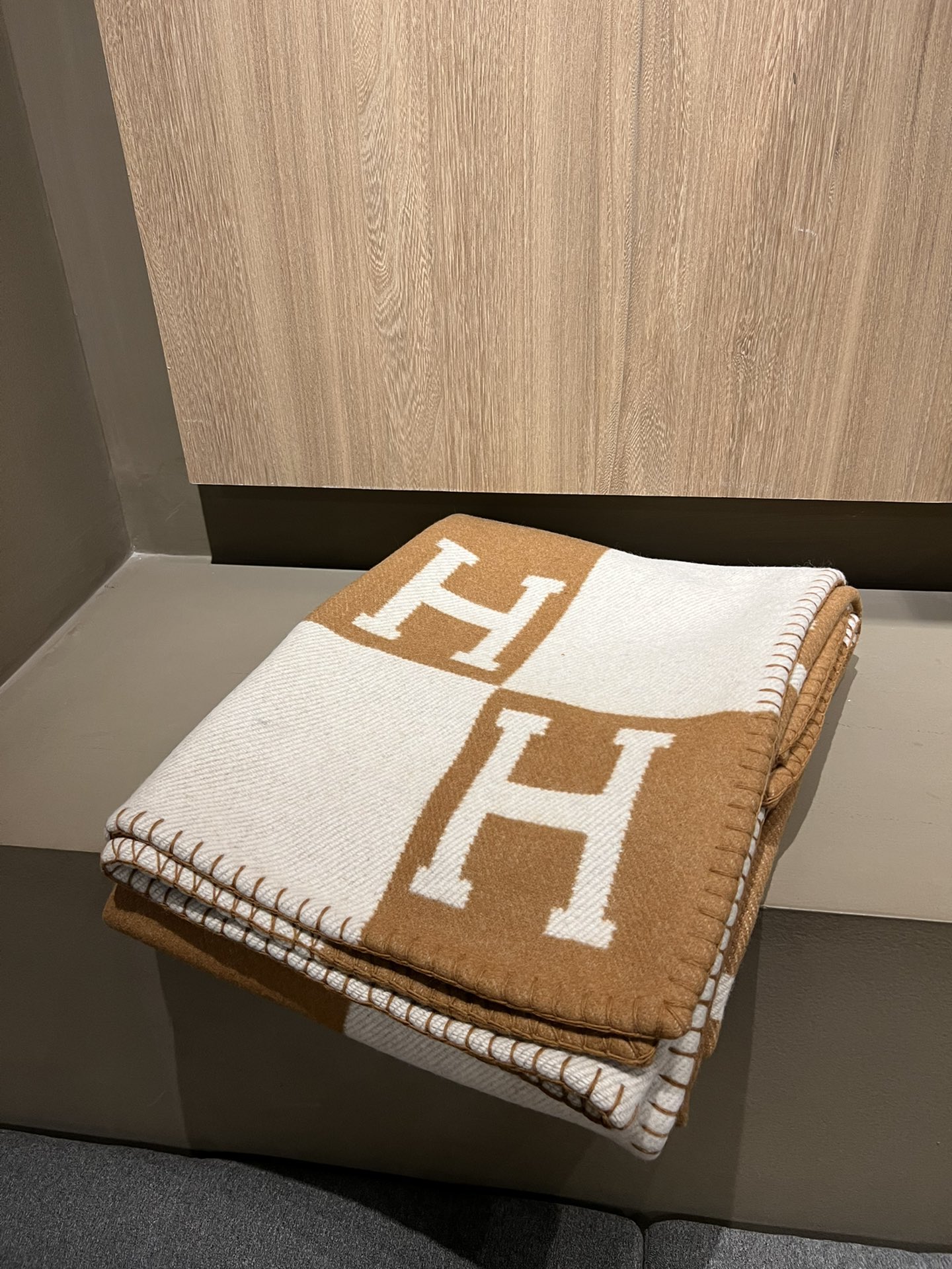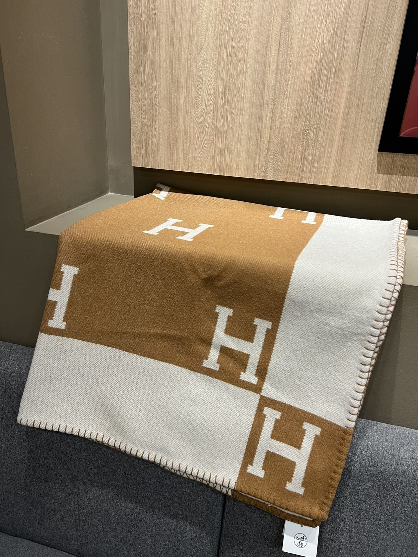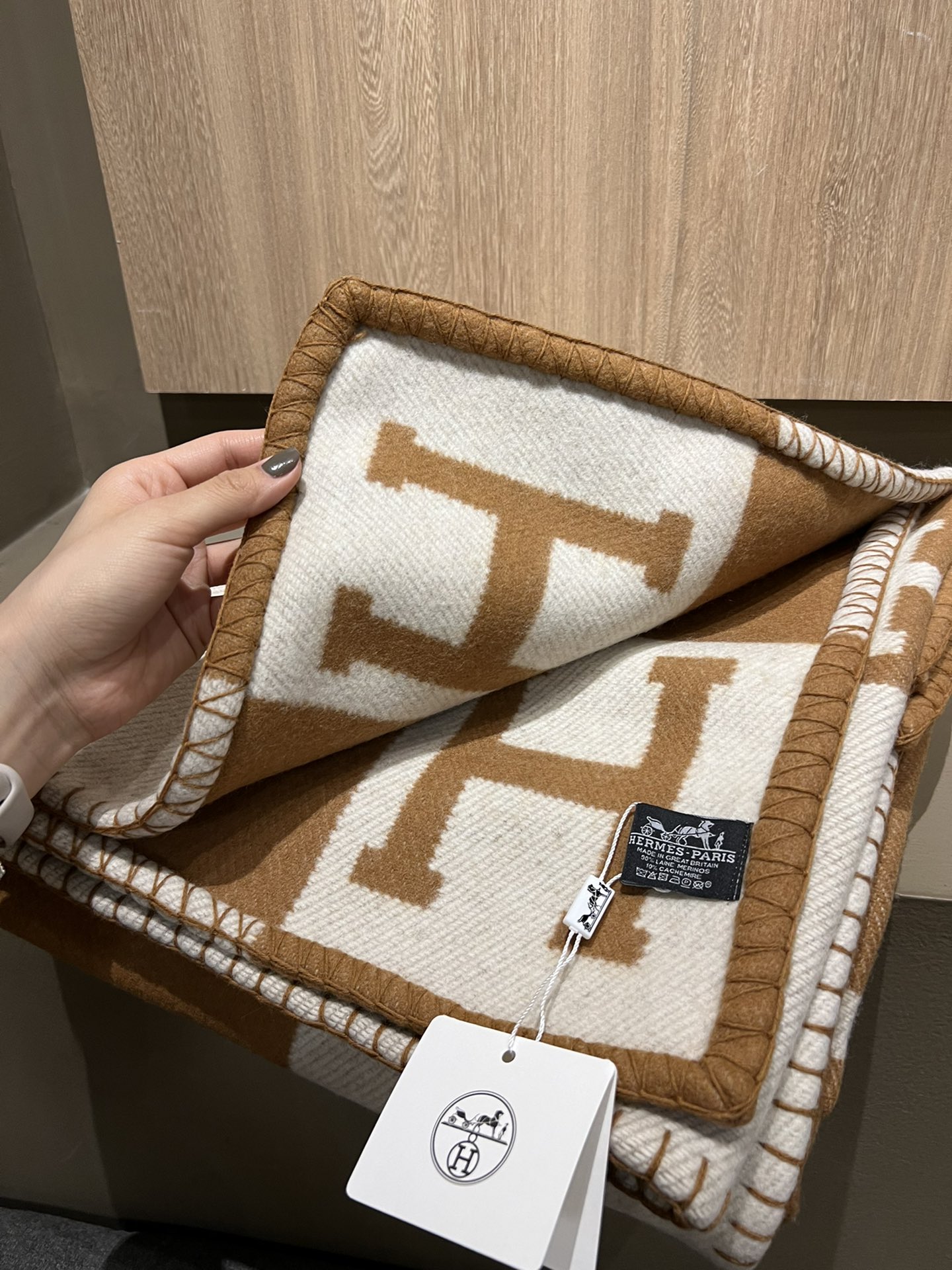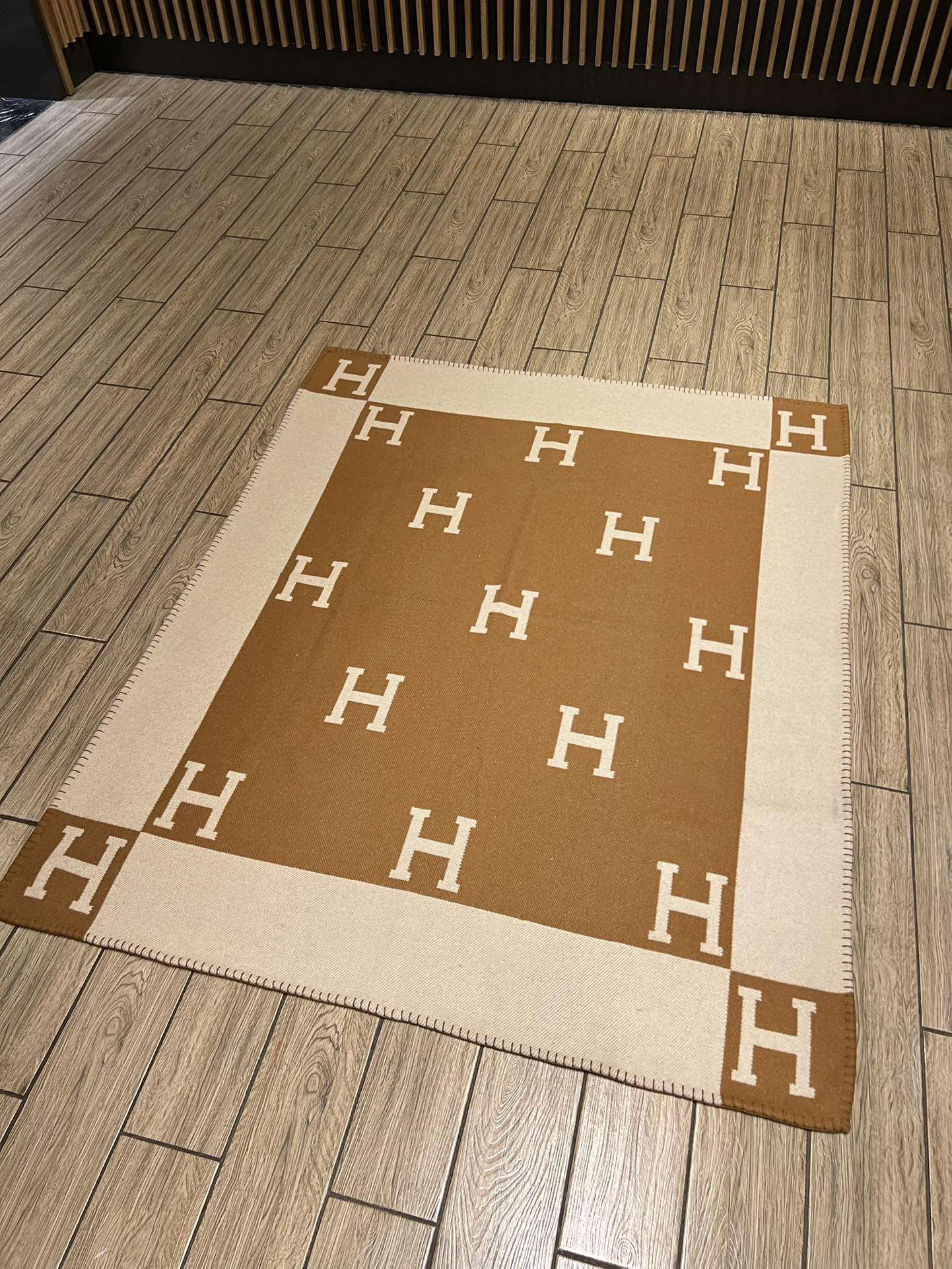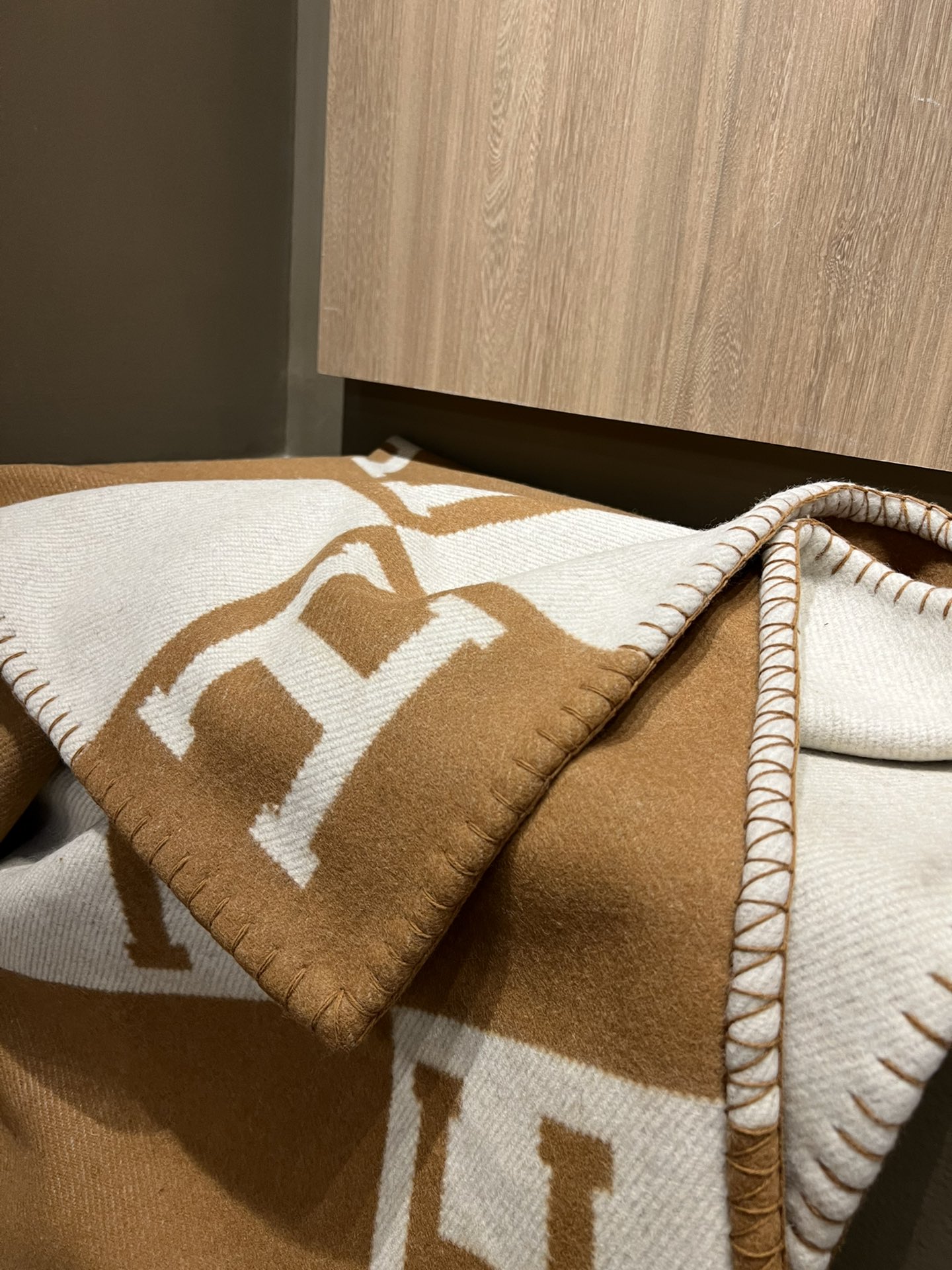 这款毯是AAAAA 1:1 质量 (非常棒). 使用了和原版一模一样的材料. 商标部分也保持了和爱马仕/Hermes一样. 图片拍摄是实物毯拍摄, 您所收到的实物保证和我们图片一模一样.