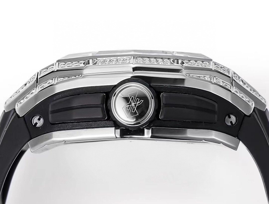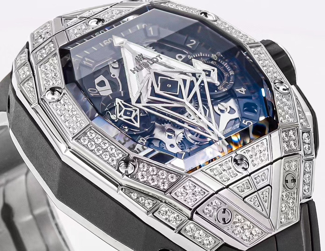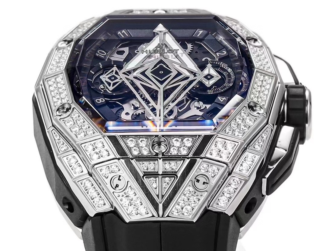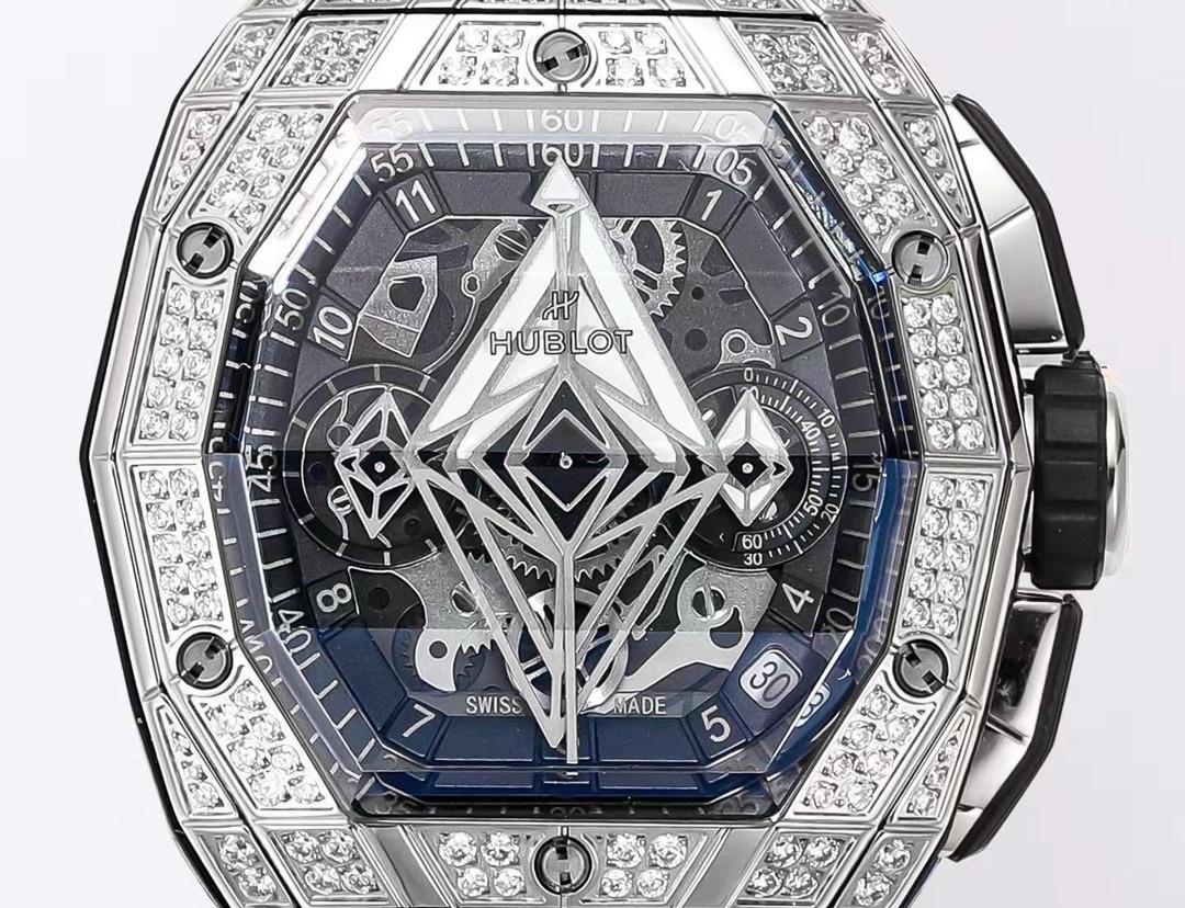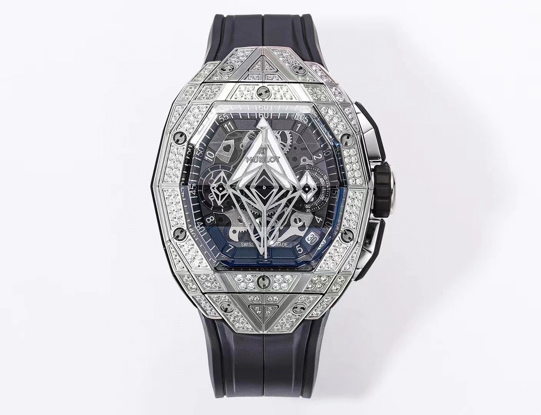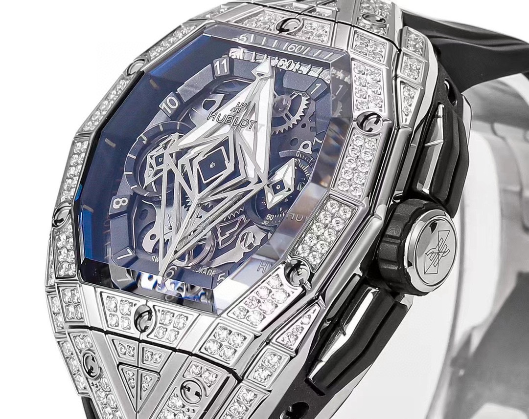 这款手表是AAAAA 1:1 质量 (非常棒). 使用了和原版一模一样的材料. 商标部分也保持了和Hublot一样. 图片拍摄是实物手表拍摄, 您所收到的实物保证和我们图片一模一样.