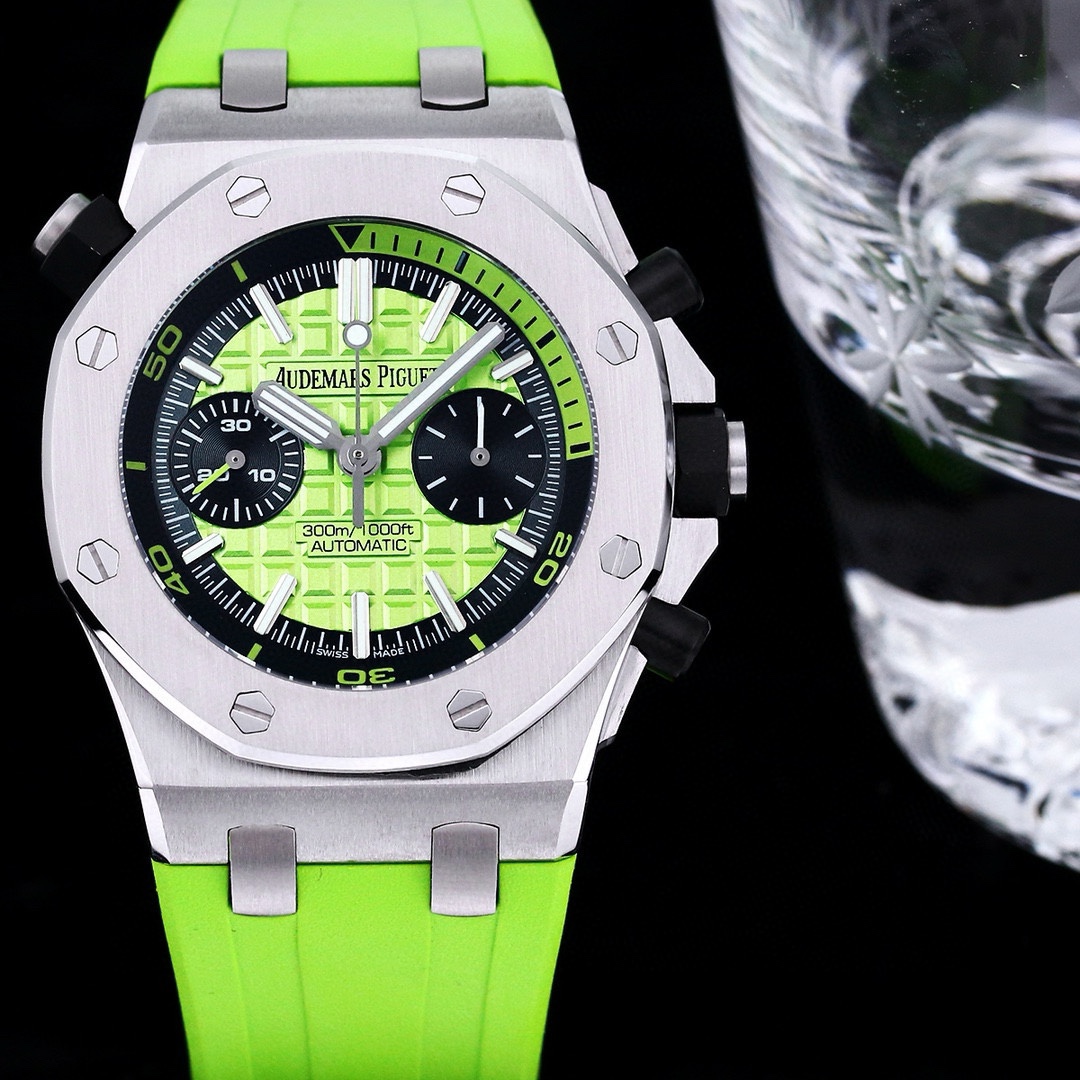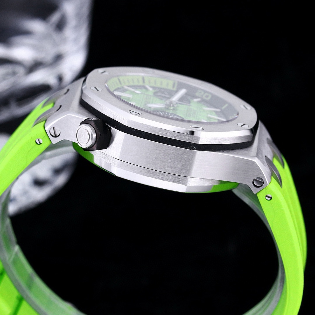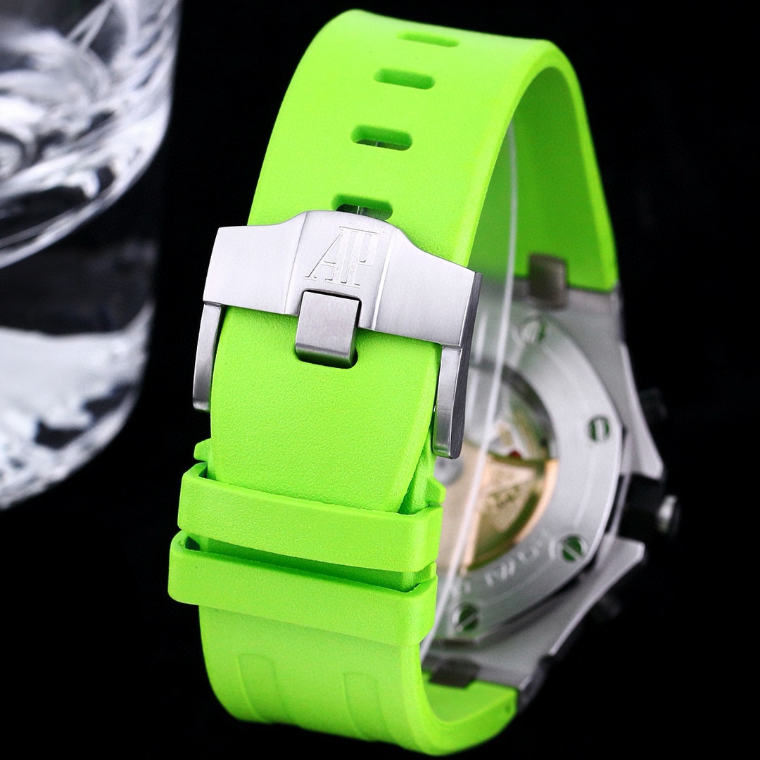 这款手表是AAAAA 1:1 质量 (非常棒). 使用了和原版一模一样的材料. 商标部分也保持了和爱彼/Audemars Piguet一样. 图片拍摄是实物手表拍摄, 您所收到的实物保证和我们图片一模一样.