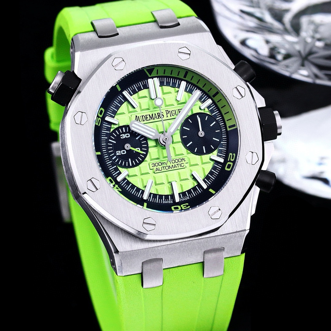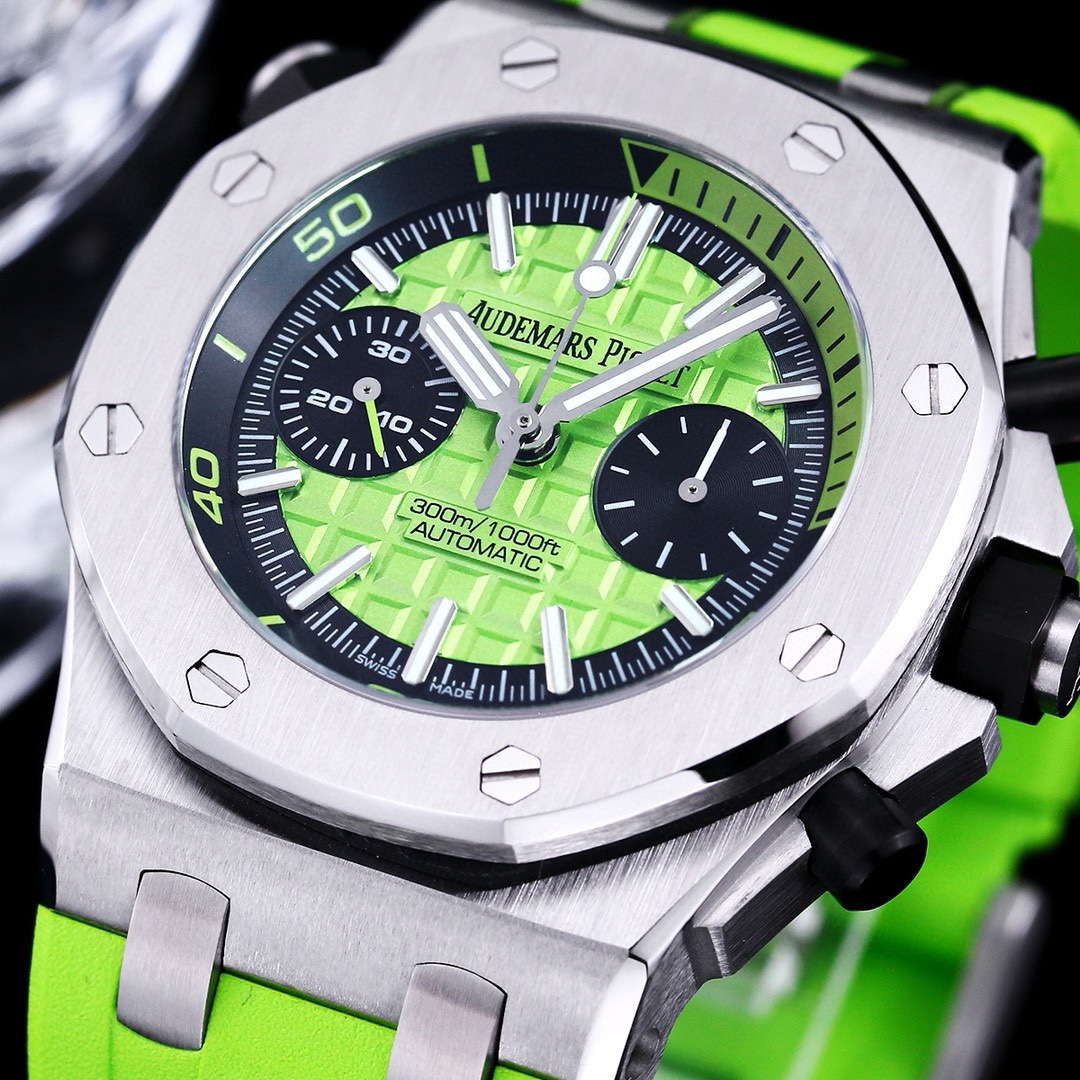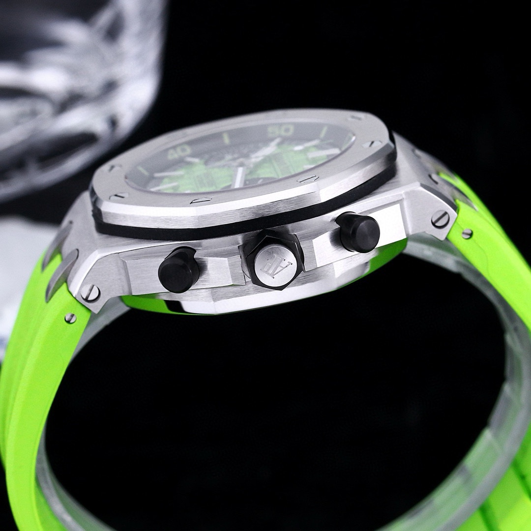这款手表是AAAAA 1:1 质量 (非常棒). 使用了和原版一模一样的材料. 商标部分也保持了和爱彼/Audemars Piguet一样. 图片拍摄是实物手表拍摄, 您所收到的实物保证和我们图片一模一样.