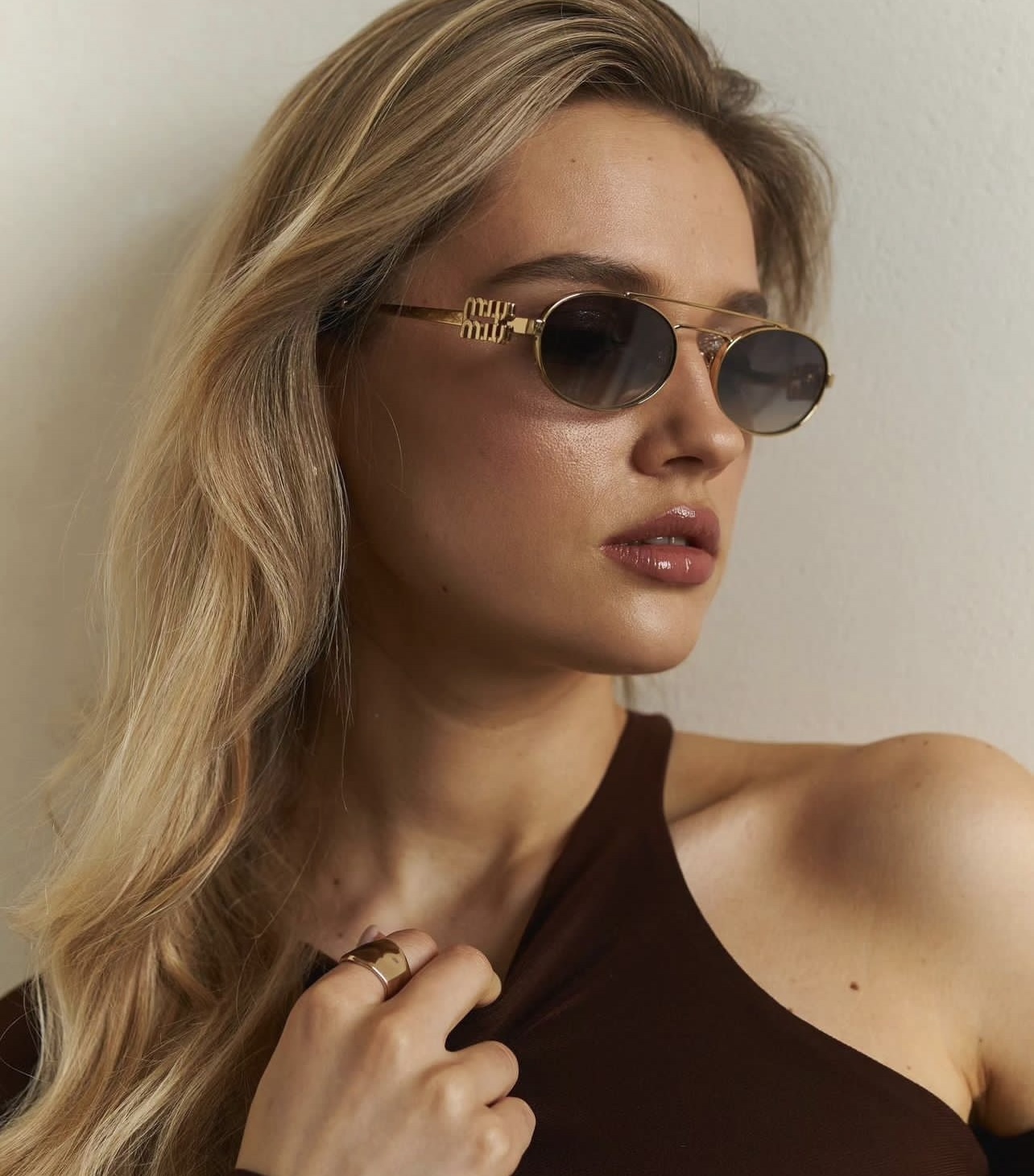 这款太阳眼镜是AAAAA 1:1 质量 (非常棒). 使用了和原版一模一样的材料. 商标部分也保持了和缪缪/Miu Miu一样. 图片拍摄是实物太阳眼镜拍摄, 您所收到的实物保证和我们图片一模一样.