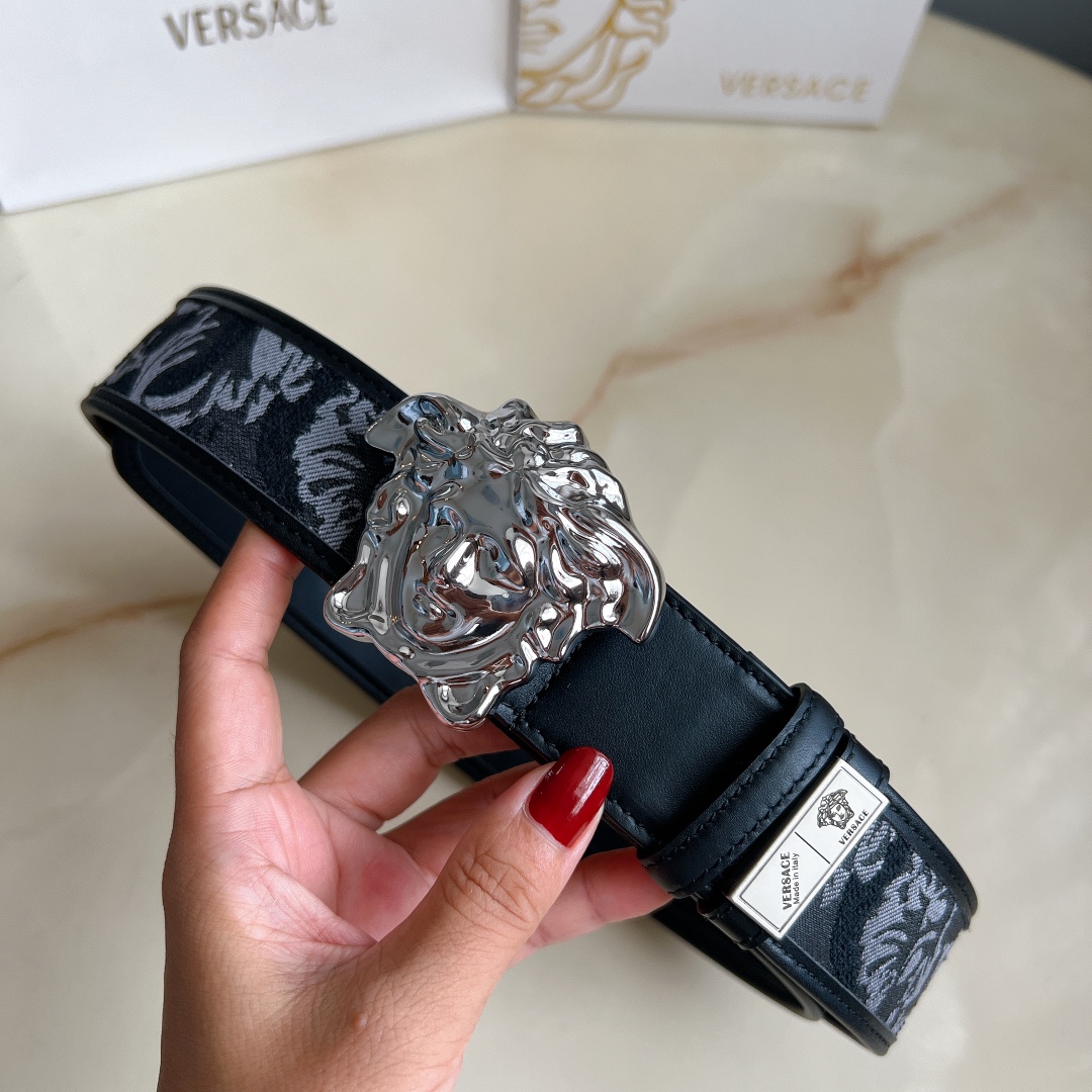这款皮带是AAAAA 1:1 质量 (非常棒). 使用了和原版一模一样的材料. 商标部分也保持了和范思哲/Versace一样. 图片拍摄是实物皮带拍摄, 您所收到的实物保证和我们图片一模一样.