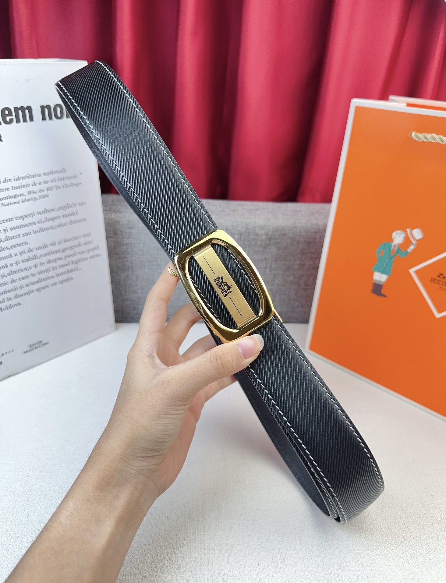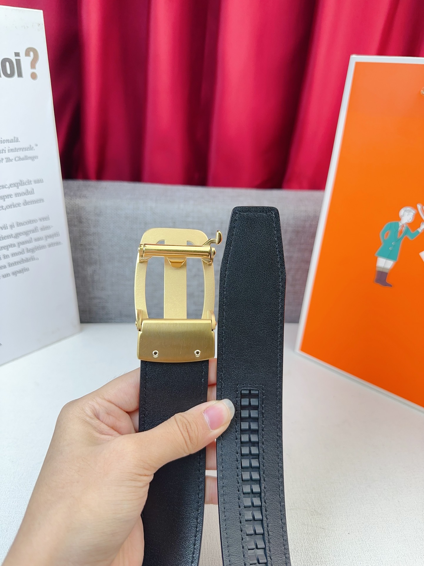 这款皮带是AAAAA 1:1 质量 (非常棒). 使用了和原版一模一样的材料. 商标部分也保持了和爱马仕/Hermes一样. 图片拍摄是实物皮带拍摄, 您所收到的实物保证和我们图片一模一样.