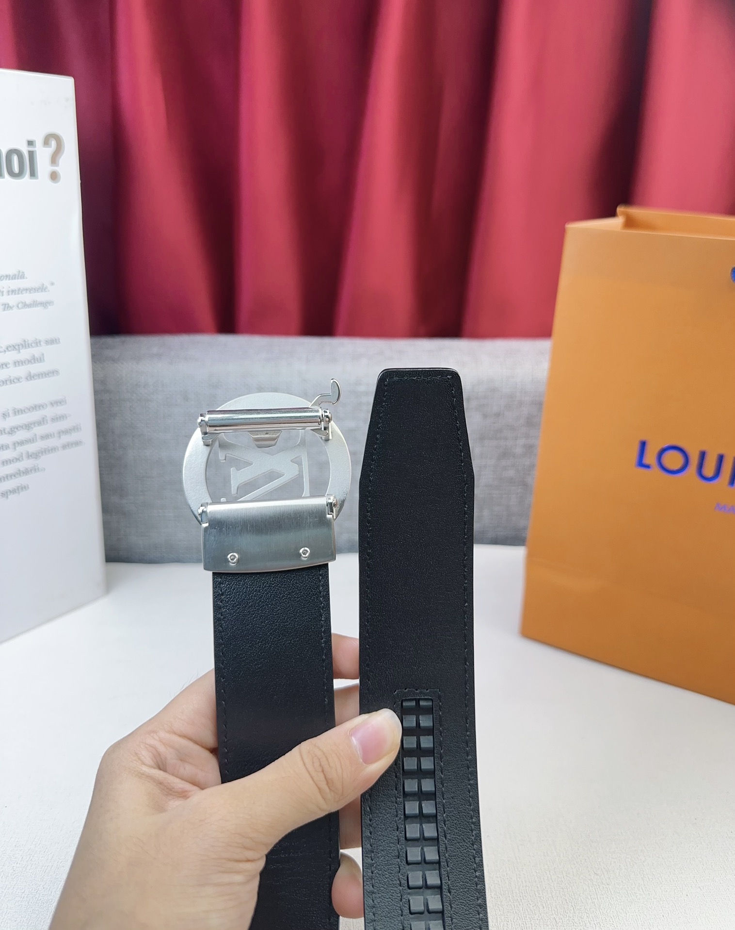 这款皮带是AAAAA 1:1 质量 (非常棒). 使用了和原版一模一样的材料. 商标部分也保持了和路易威登/Louis Vuitton一样. 图片拍摄是实物皮带拍摄, 您所收到的实物保证和我们图片一模一样.