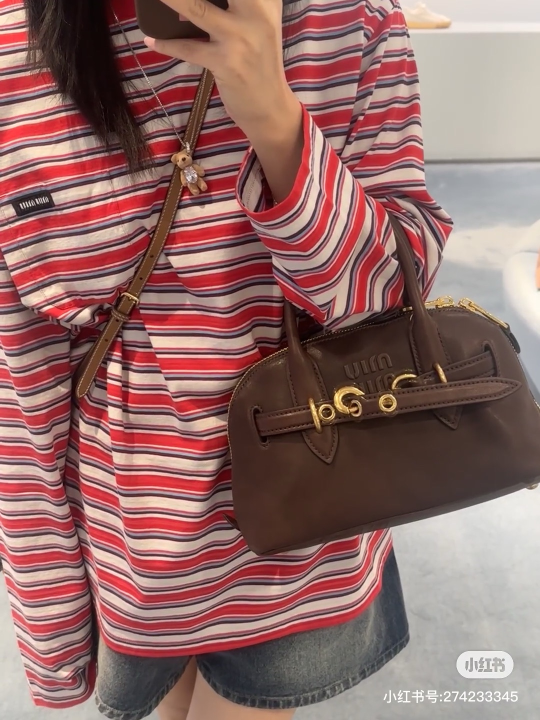 这款包包是AAAAA 1:1 质量 (非常棒). 使用了和原版一模一样的材料. 商标部分也保持了和缪缪/Miu Miu一样. 图片拍摄是实物包包拍摄, 您所收到的实物保证和我们图片一模一样.