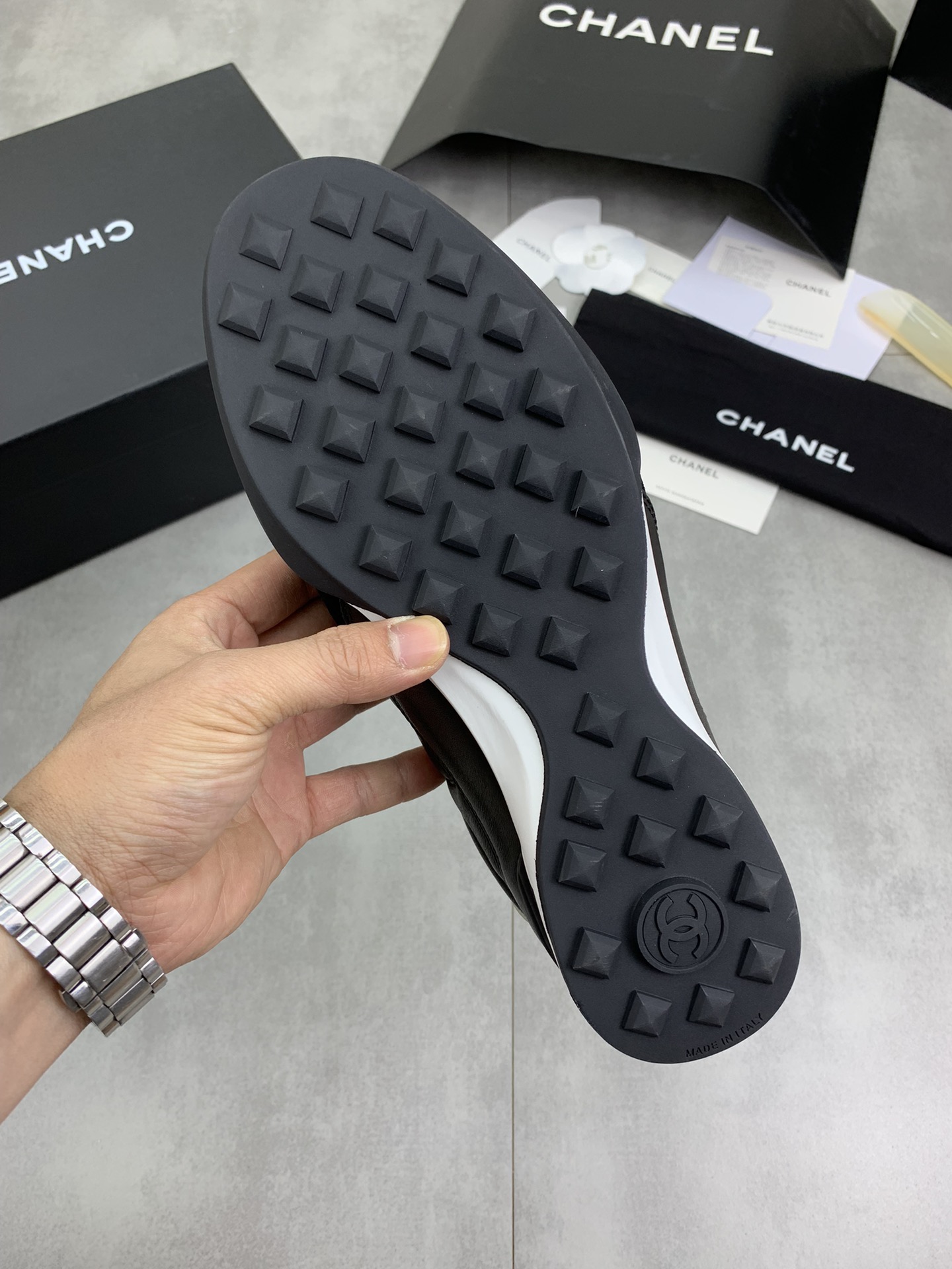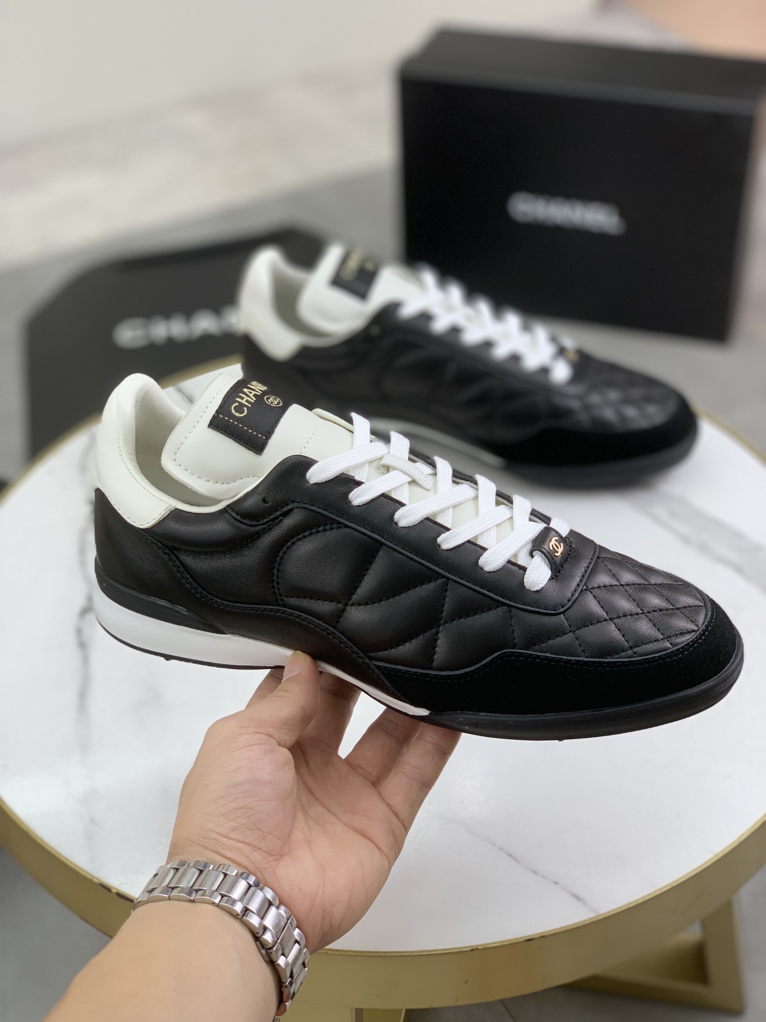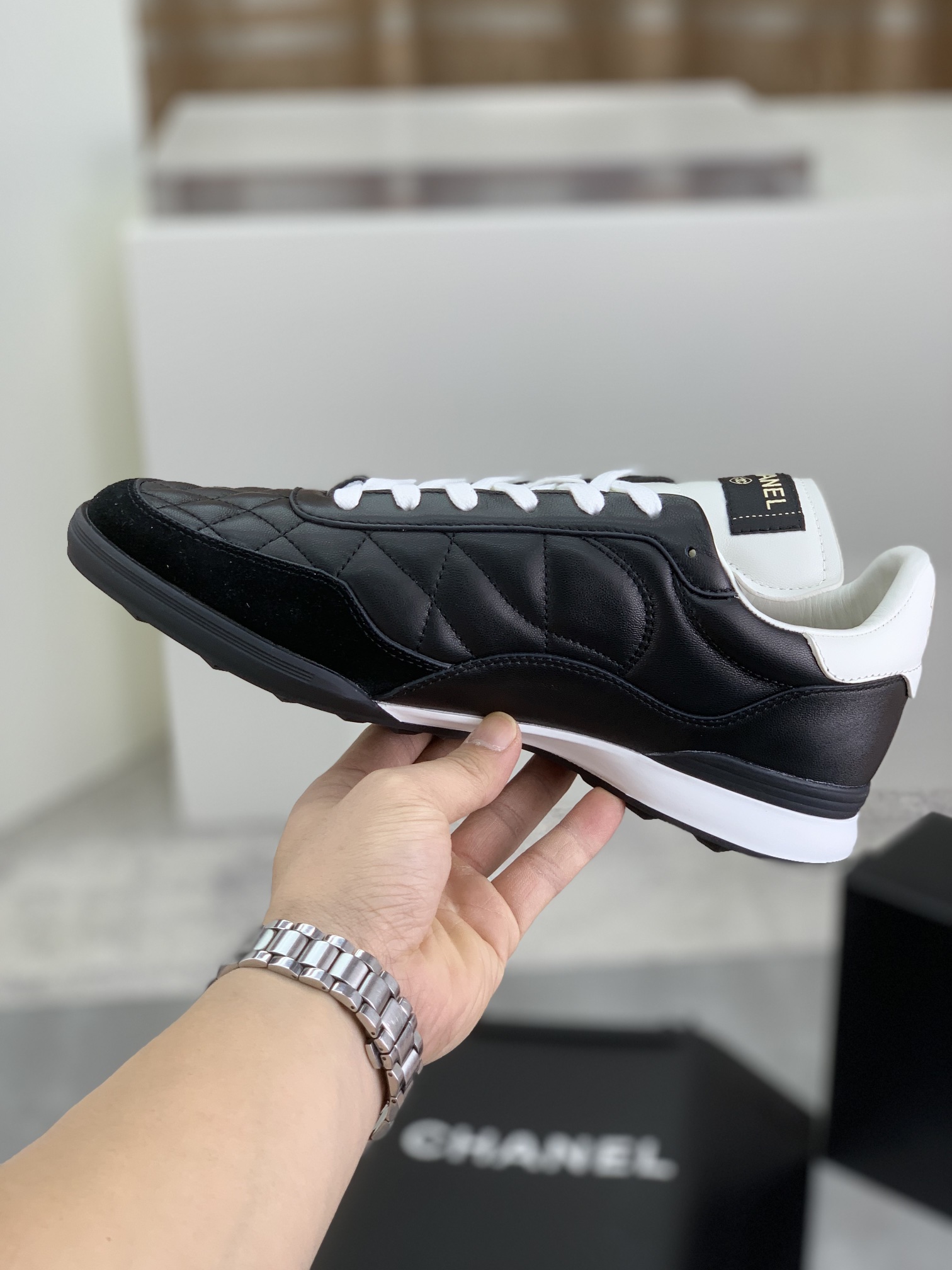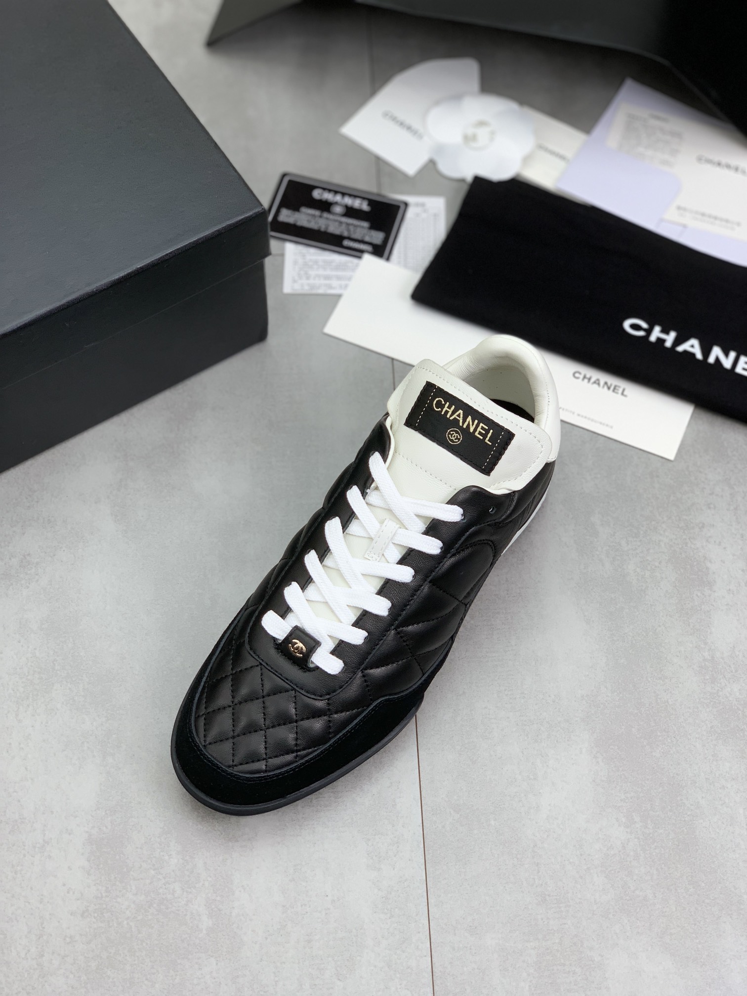 这款鞋子是AAAAA 1:1 质量 (非常棒). 使用了和原版一模一样的材料. 商标部分也保持了和香奈儿/Chanel一样. 图片拍摄是实物鞋子拍摄, 您所收到的实物保证和我们图片一模一样.